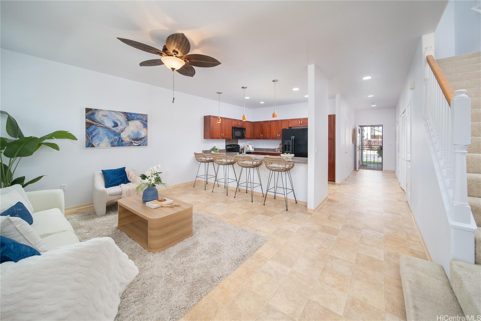 Welcome to this spacious 3-bedroom, 2.5-bathroom townhome offering 1,393 square feet of comfortable island living at 478 Kunehi St APT 107 in Kapolei’s exclusive Pulewa at Mehana community. This home features an open-concept layout with contemporary finishes and abundant natural light throughout. The spacious kitchen flows seamlessly into the living area—perfect for entertaining or family gatherings—while upstairs, three generous bedrooms provide comfort and privacy, including a primary suite designed for relaxation. Positioned directly across from Kapolei High School, you’re minutes from shopping, dining, parks, and major highways, with everything Kapolei has to offer right at your doorstep. Pulewa at Mehana is a peaceful planned development featuring 120 units across 16 buildings, offering a desirable neighborhood atmosphere in one of Kapolei’s best communities. Don’t miss this opportunity to call Pulewa home!