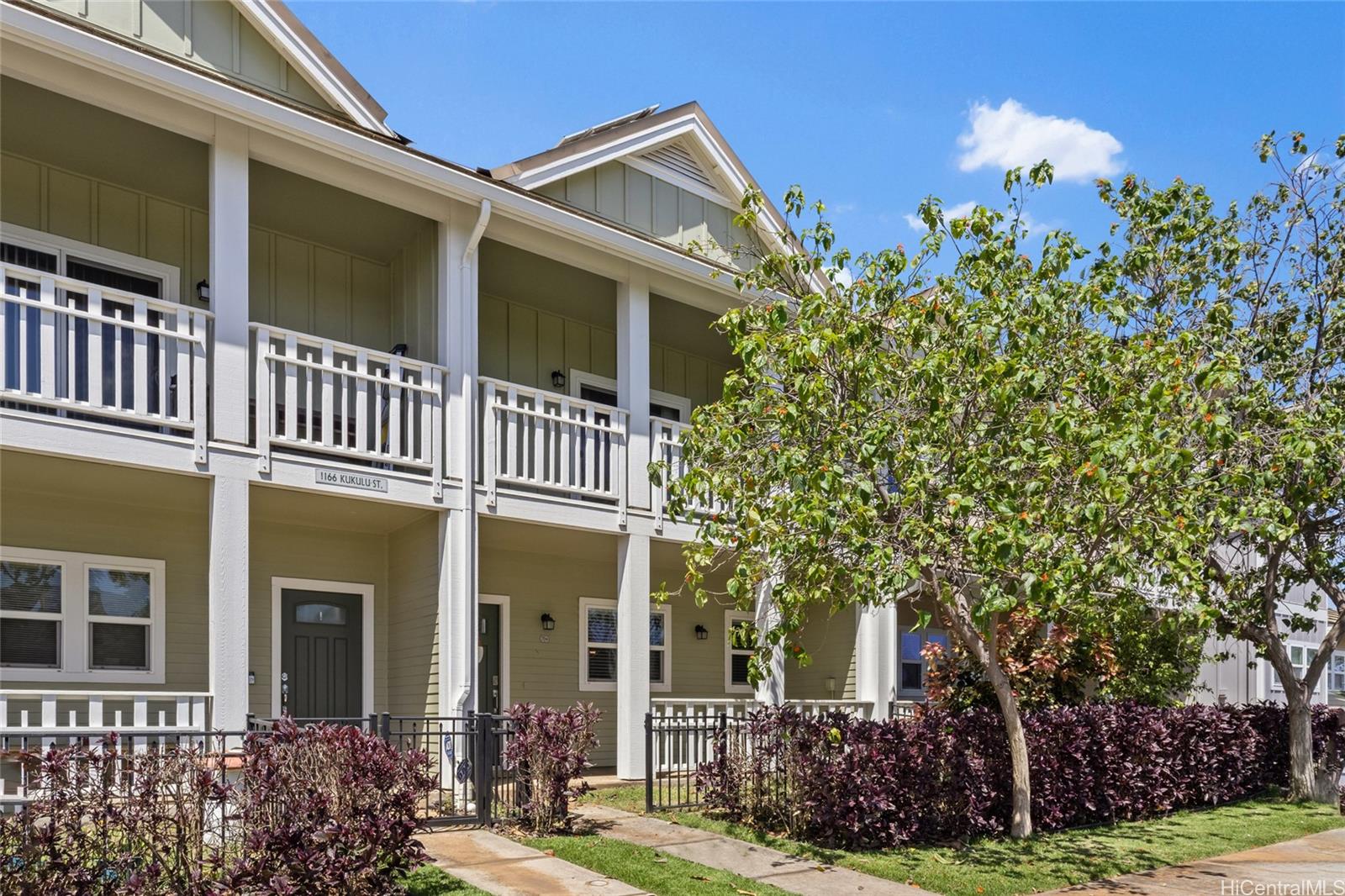 Welcome to this beautifully upgraded 3 bedroom 2.5 bathroom home in the heart of Kapolei, Pulewa at Mehana! This spacious, open-concept home features brand-new flooring and carpet creating a fresh, modern feel throughout. The oversized kitchen is a standout, offering stainless steel appliances and plenty of room to host, cook, and gather. Upstairs, enjoy a large primary suite with a private balcony, perfect for relaxing mornings or evening wind-downs. Plus, a brand new split AC unit to keep you cool year-round. The OWNED solar helps to keep your energy costs low. This home also features a charming from entry with a private yard, as well as a beautiful back entry with a one car garage and additional driveway parking. Enjoy access to incredible community amenities including a pool, recreation area, walking paths, and BBQ spaces. You are also conveniently located with elementary, middle, and high schools, all within walking distance. You’re also just minutes from all of your shopping needs including Walmart, Costco, and Target. Don’t miss this amazing opportunity!