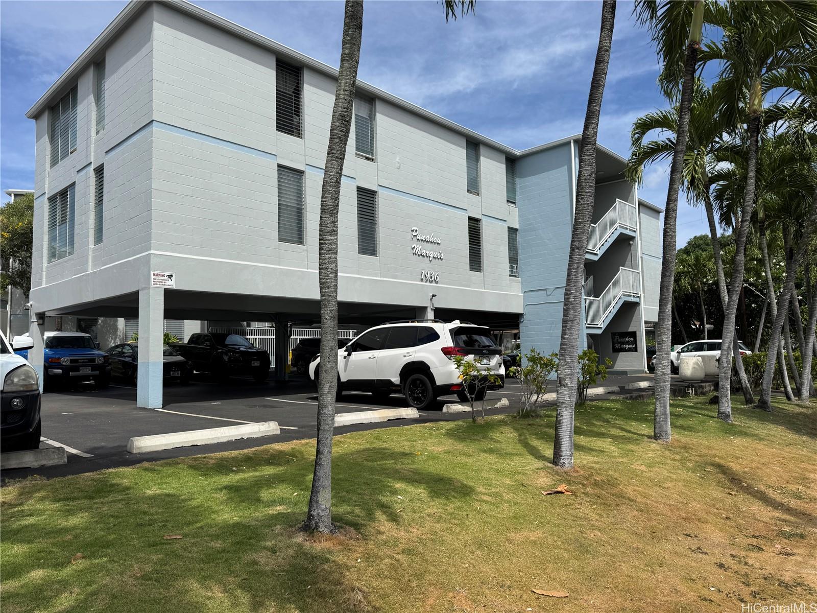 Rarely Available Punahou Marquis! 2nd Floor, secured entry into building, 2 bedrooms, 1 bath, 1 parking space (assigned). Apartment has been professionally painted, new drapes, flooring in great condition. Maintained secure building with clean community laundry room. Great location near to University of Hawaii, Punahou School (private), shopping, restaurants, entertainment and parks. Ideal purchase for student or teacher housing and investment. Furthermore, easy access to HI Freeway going East or West and near public transportation. Disclosures:Property has a monthly assessment due to building maintenance of $152 until March 1, 2030. Building Insurance coverage is 100%. Tenant Occupied.