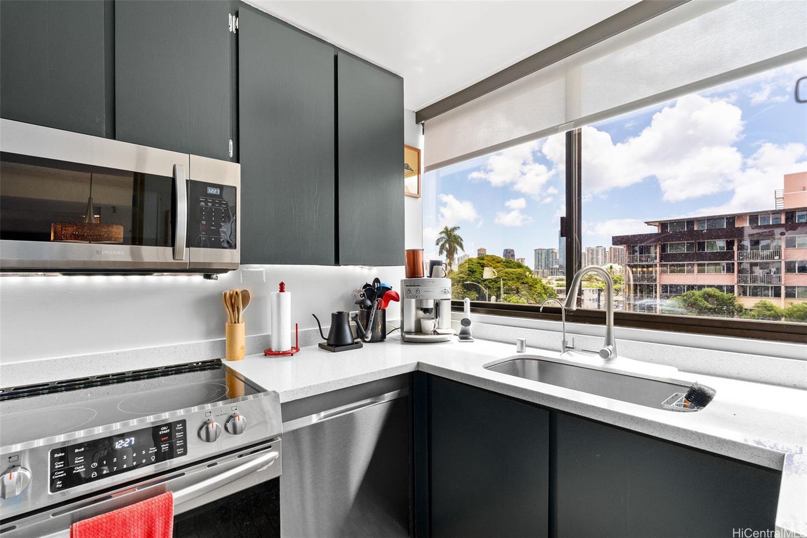 VA譲渡可能 @2. 75%!ブティックビル「プナホウ・リージェンシー」で洗練された暮らしの頂点を体験してください。 このスタイリッシュな キッチンはモダンで、新しいステンレス製の家電が備わっています。 床から天井までの窓からは、他に類を見ないガジュマルの木の素晴らしい景色が広がり、たっぷりの自然光を室内に招き入れます。 主寝室には電動遮光ブラインドが備わり、安眠をサポートします。 各階にわずか2戸のみのため、プライバシーが確保されるだけでなく、街のパノラマビューも楽しめます。 1980年築の建物で、スプリンクラー設備とセントラル空調を備え快適な環境を提供。鍵式エントランスを採用。 住民は、爽やかなプール、スパ、活力を与えるテニスコートなどの設備を楽しむことができます。 このペット同伴可能な建物は、ホノルルの中心部という素晴らしい立地と比類のないライフスタイルを提供します。 公立・私立学校、ショッピングモール、医療機関に近く、高速道路へのアクセスも便利なこの住宅は、卓越した都市生活を実現する機会を提供します。 .
