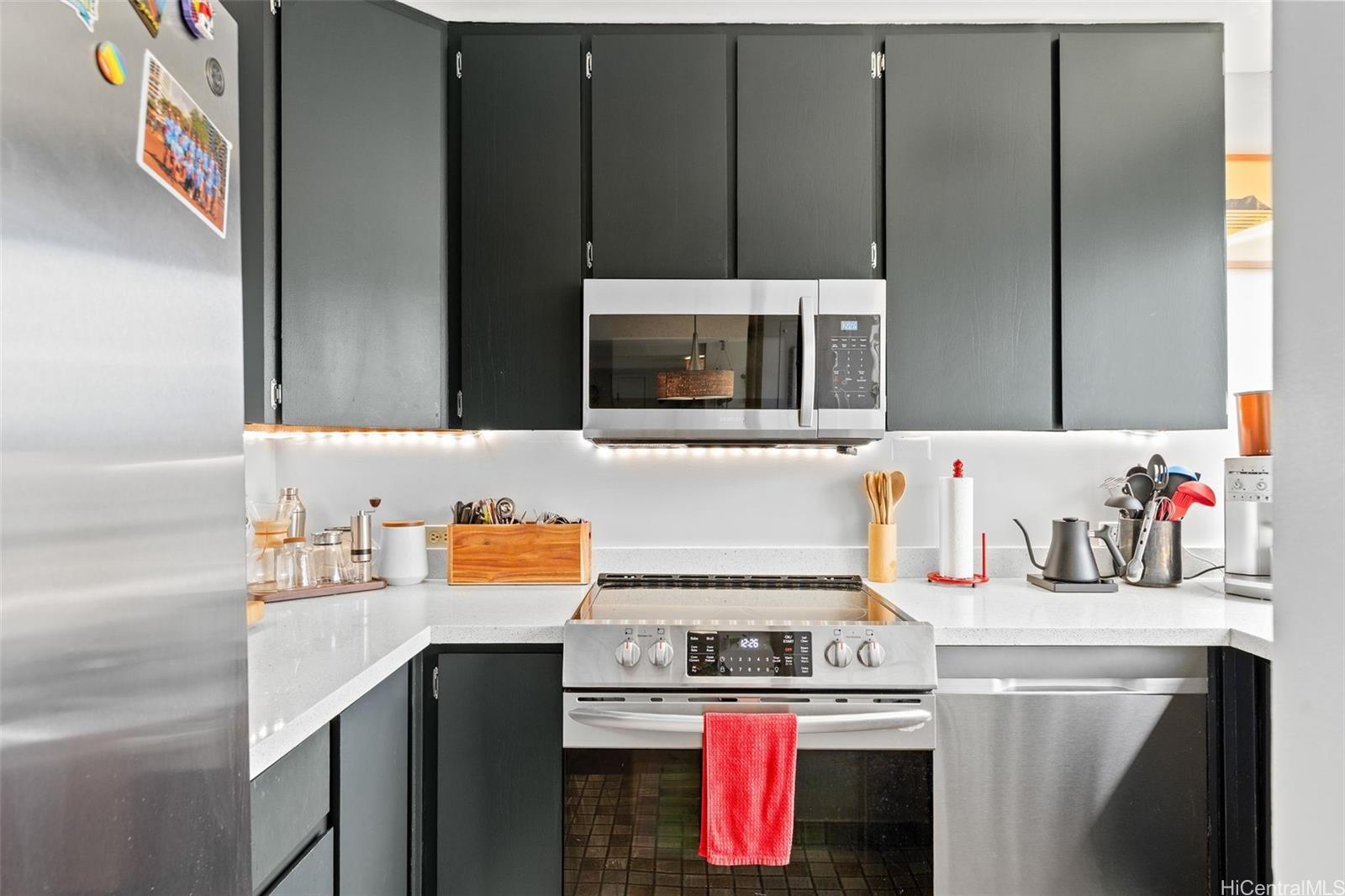 マカキロ・ハイツのウエストビューにある、最上階の角部屋エンドユニット。 このモダンな角部屋は、796平方フィート(約74平方メートル)の考え抜かれた居住空間内に、広々とした2つのベッドルームと2つのバスルームを備えています。 ...