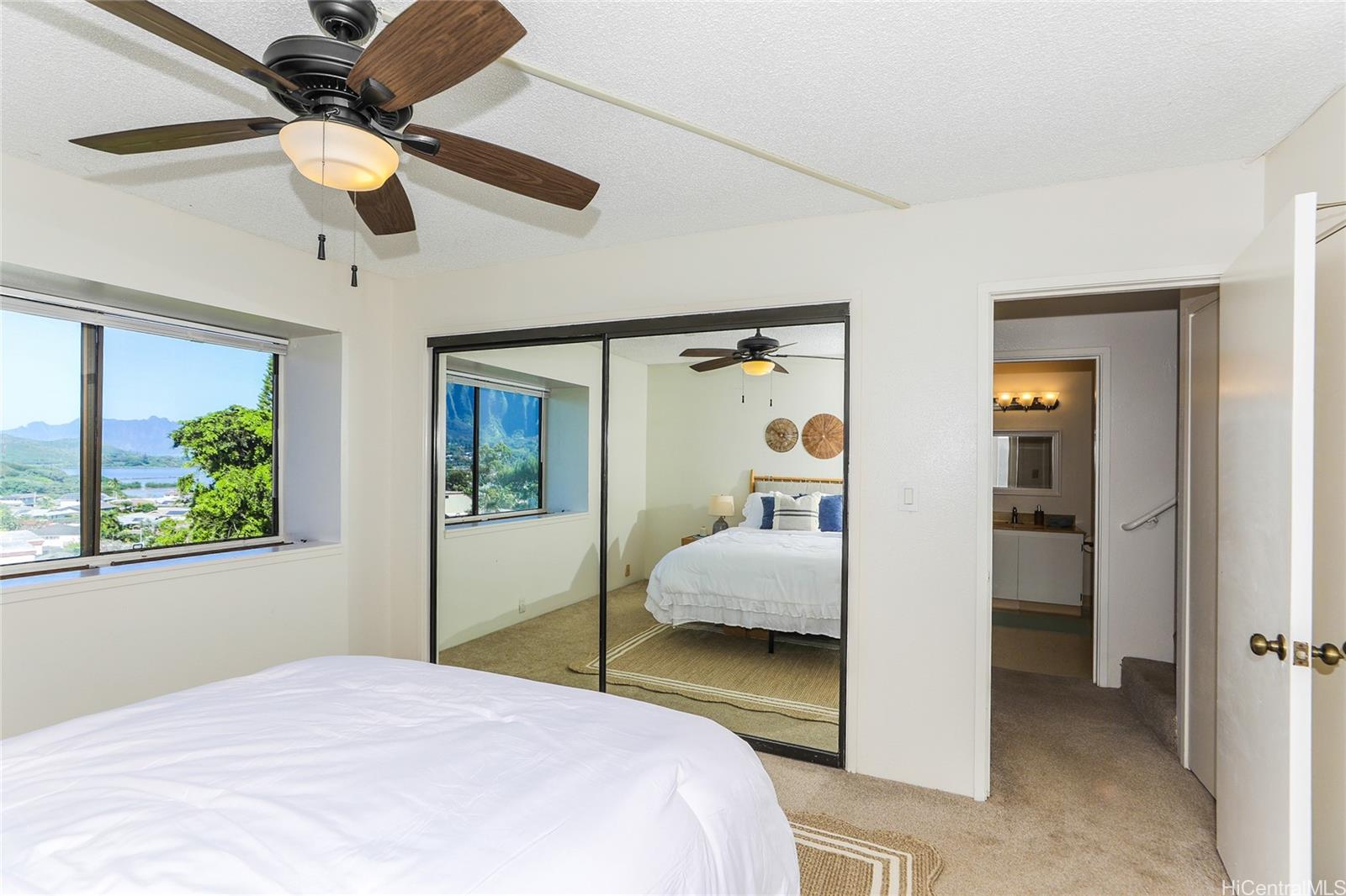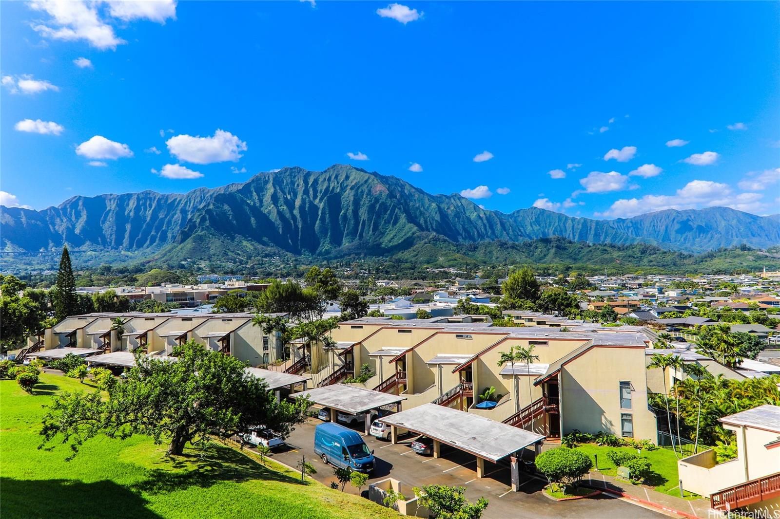 Resort style living in the heart of Kaneohe. Enjoy breathtaking ocean views of Kaneohe Bay and the Ko’olau mountains from this airy 2BR/2BA townhome located in the sought-after Puu Alii 1 community. Featuring a covered lanai, large windows that bring in excellent light and airflow, and an attached garage with direct kitchen access. With recently painted vanities, upgraded lighting and fully reglazed tub and shower, this home combines convenience with tropical elegance. Just minutes from Windward Mall, the kaneohe Bay Shopping Center, Kaneohe Marine Base and easy access to H-3, LikeLike, and Pali Highway. The community features three pools, a sauna, whirlpool, tennis courts and more! Your private island escape awaits!