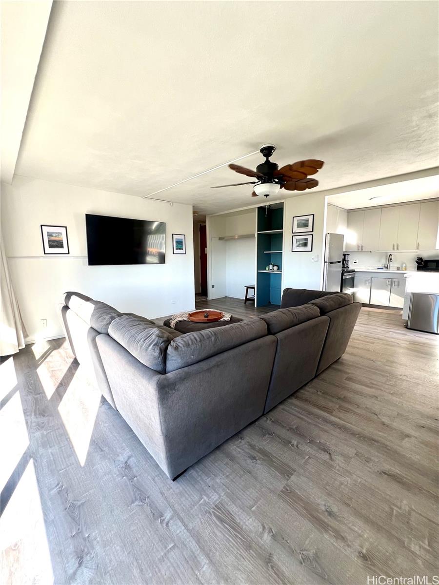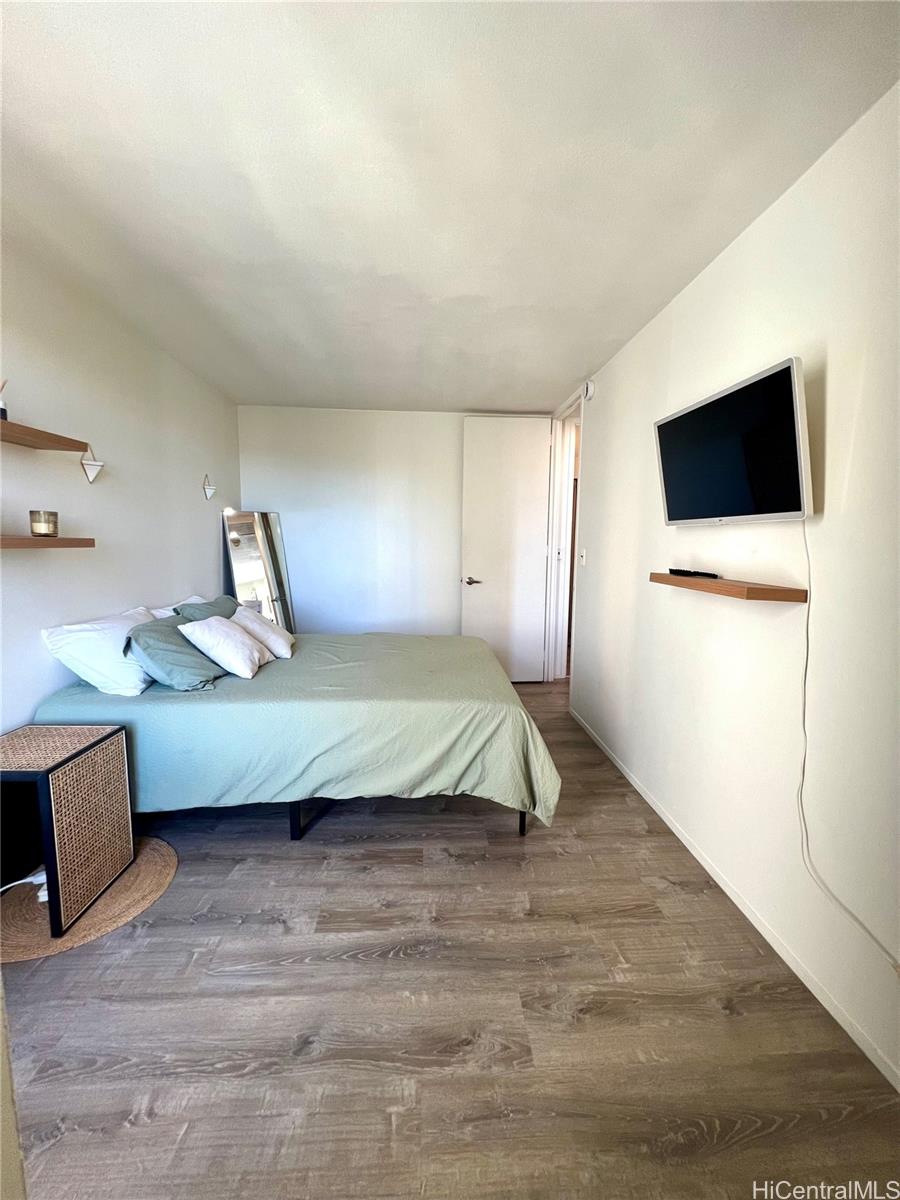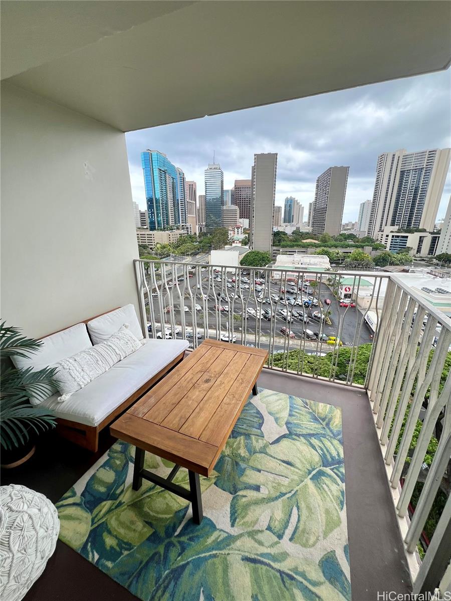 Enjoy breathtaking panoramic views of the mountains, ocean, sunset, and Aloha Tower from this spacious 674 sq. ft. corner unit on the 10th floor. Updated in 2021, the home features two bedrooms with window A/C units, a bright, breezy layout, and plenty of natural light. Experience refreshing trade winds and a comfortable, open living space perfect for relaxing or entertaining. This unit also includes 1 covered parking spot conveniently located right across the elevator, adding ease and security to your daily routine. Plenty of guest parking for your family and friends. Pet friendly for dogs under 45lbs and up to two cats. Located a short walk to Queen’s Medical Center, grocery stores and a variety of shops and restaurants, this unit combines city convenience with stunning scenery. Also located directly next to all major highway access. Residents enjoy community amenities including a pool, laundry room, and secured entry, making it a perfect choice for a first home, city retreat, or investment property. Don’t miss this rare opportunity to own a corner unit at Queen Emma Gardens! Seller is in no rush to sell, currently has tenants on month to month lease.