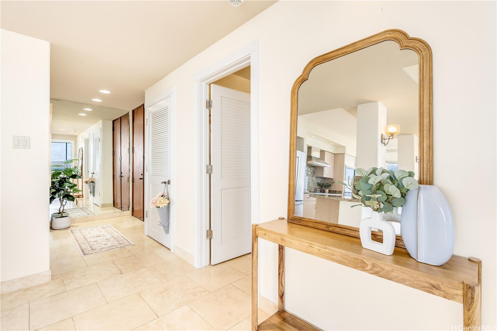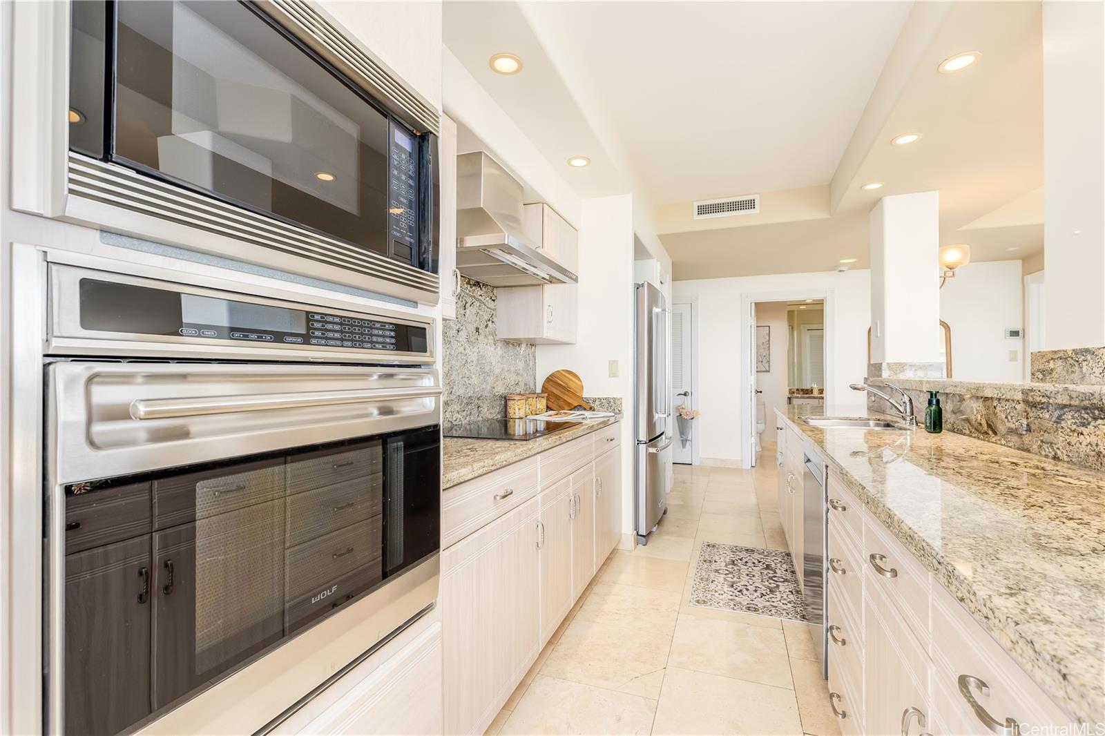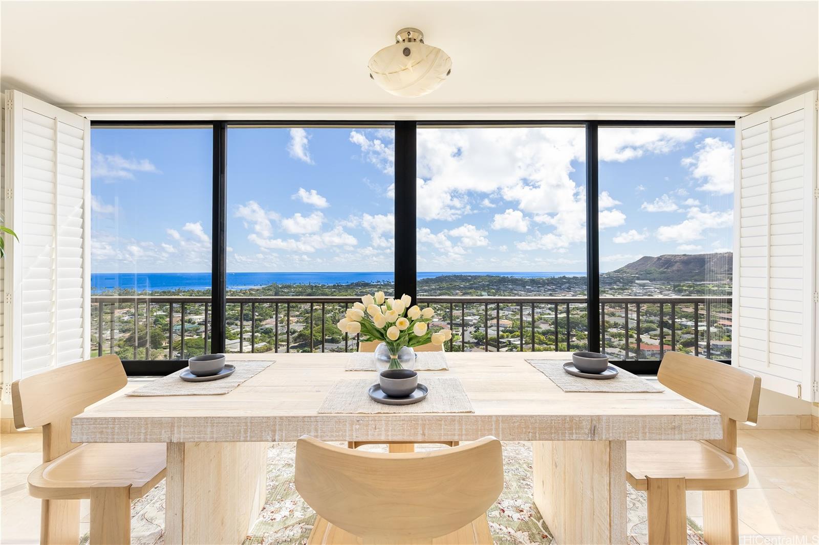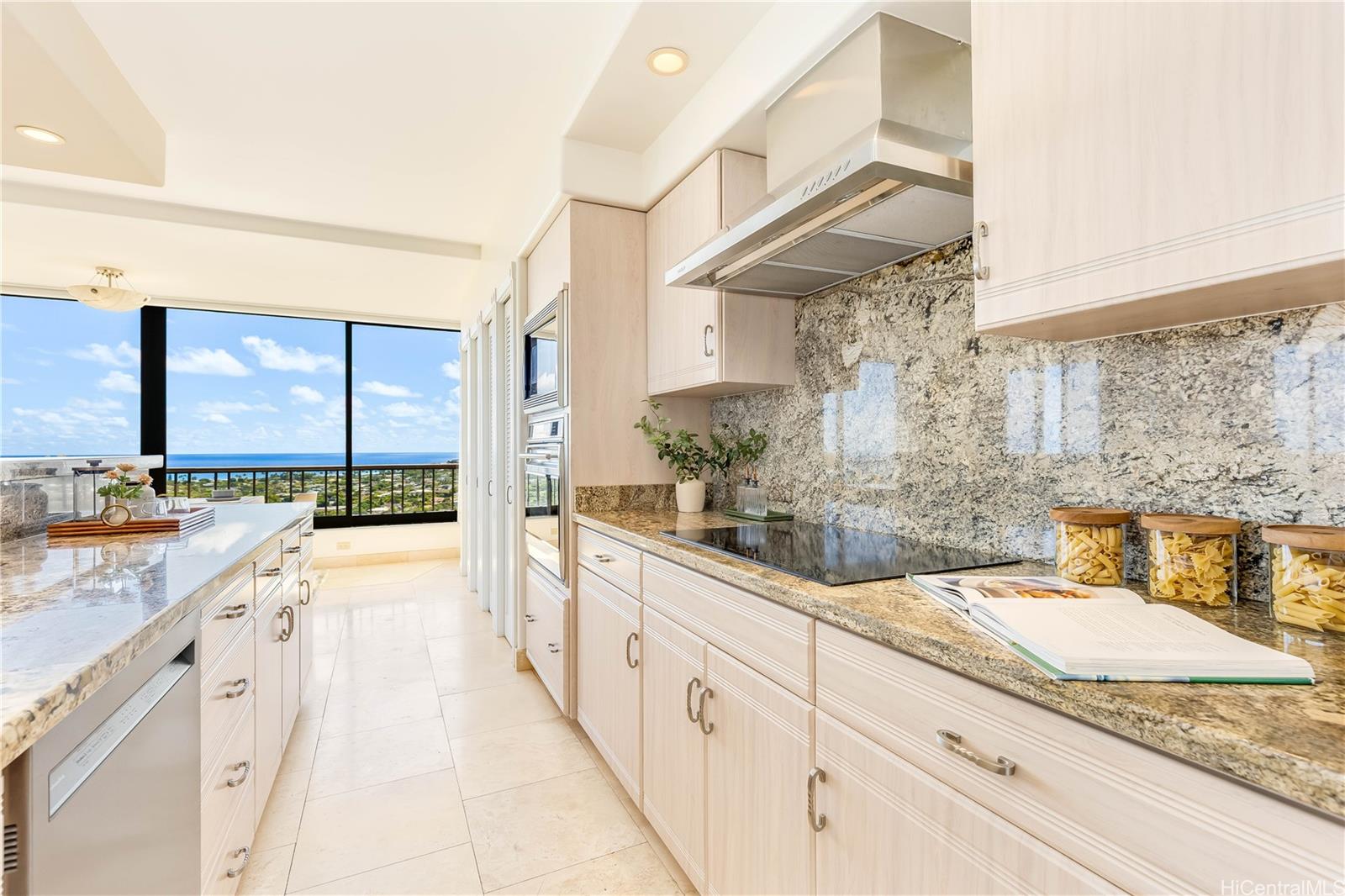 Enjoy sweeping, unobstructed views of the Pacific Ocean, Diamond Head, and the Kahala coastline to Koko Head from this high-floor preferred B-unit at the Regency at Kahala! Featuring 1,305 sf of interior space plus a 51 sf lanai, this beautiful residence offers limestone floors, granite counters, and stainless steel appliances. With only four units per floor, this secure building offers resort-style living with a pool, fitness room, BBQ area, and storage locker. Located directly behind Kahala Mall, you’ll enjoy quick access to shopping, dining, and entertainment, and close proximity to Kahala Beach, Waialae Country Club, and Kaimuki town.