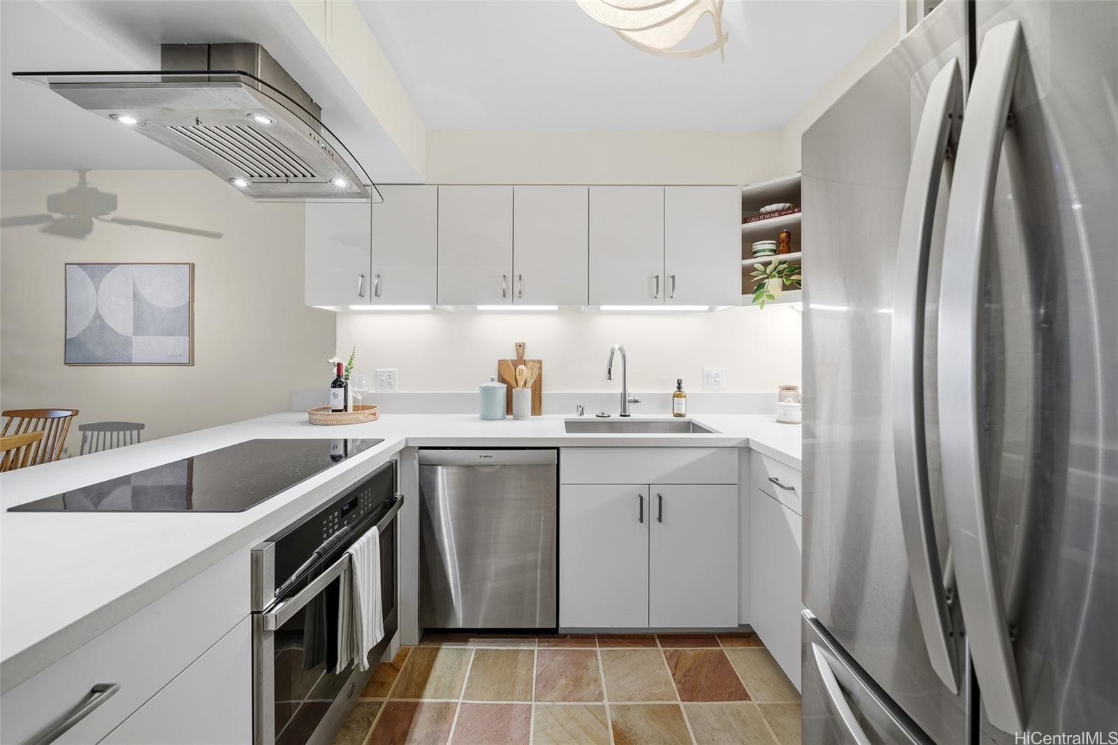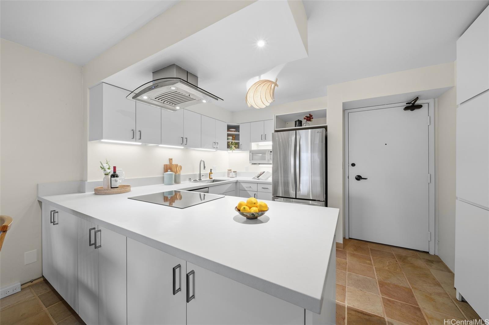 Located in Regency Park along Waialae Avenue, this updated 2-bedroom, 2-bath residence is move-in-ready and offers great value and a comfortable and practical layout. The unit features durable tile flooring throughout most areas, a split AC system to keep things cool year-round and storm shutters to weatherproof the sizable private outdoor patio. The kitchen has been recently updated featuring “Cement” white Caesarstone counter tops and custom cabinetry adding valuable storage space. Both bathrooms remodeled in 2022 and 2023. The home provides a well-maintained, functional living space as the floor plan separates the bedrooms nicely and large windows bring in warm natural light. Enjoy two assigned parking stalls, an added bonus in town. Regency Park is a secured community known for its amenities, including a pool, BBQ areas, tennis courts, and walking paths. Centrally positioned with easy access to town, boutique shopping, neighborhood dining, and freeway routes, this is a solid opportunity to own in a well-established building in a highly convenient location.