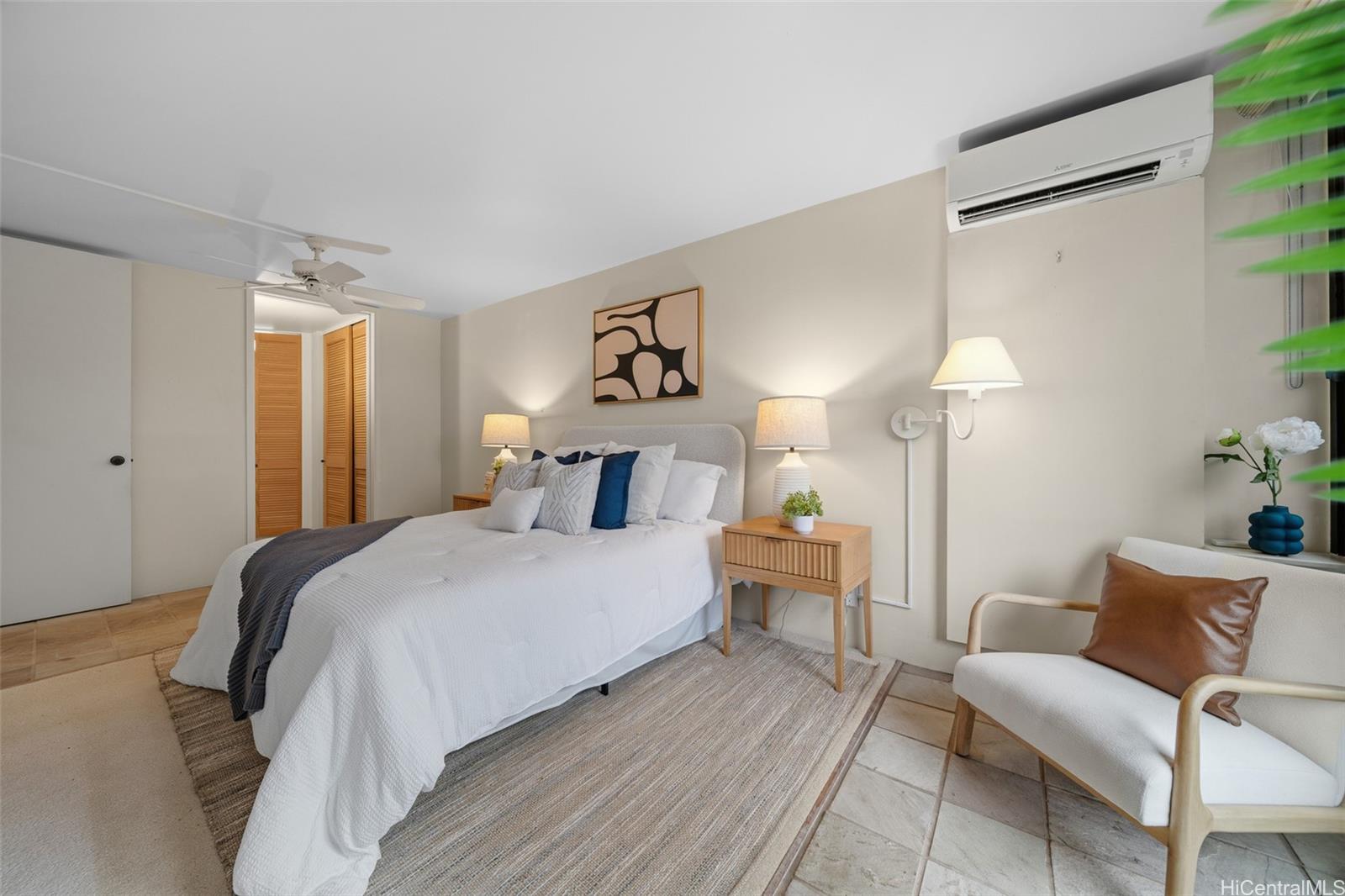 ワイアラエ・アベニュー沿いのリージェンシー・パークに位置する、改装済みの2ベッドルーム・2バスルームのこの住居は、すぐにでも入居可能で、コストパフォーマンスに優れ、快適かつ実用的な間取りとなっています。 この物件は、ほとんどのエリアに耐久性に優れたタイル張りの床が敷かれており、一年中快適に過ごせるスプリット型エアコンシステムを完備。さらに、広々とした専用屋外パティオを天候から守るための防風シャッターも備わっています。 キッチンは最近改装され、「セメント」ホワイトのシーザーストーン製カウンタートップと、収納スペースを充実させた特注のキャビネットが採用されています。 両方のバスルームは、2022年と2023年に改装されました。 この住宅は、間取りが寝室を適切に区切っており、大きな窓から温かな自然光が差し込むため、手入れが行き届いた機能的な居住空間となっています。 市街地では貴重な、専用駐車スペースが2台分ご利用いただけます。 リージェンシー・パークは、プール、バーベキューエリア、テニスコート、散策路などの充実した設備で知られる、セキュリティの整った住宅地です。 中心部に位置し、街の中心部やブティック、近隣の飲食店、高速道路へのアクセスも良好です。利便性の高い立地にある老舗の建物で、所有する絶好の機会です。 .