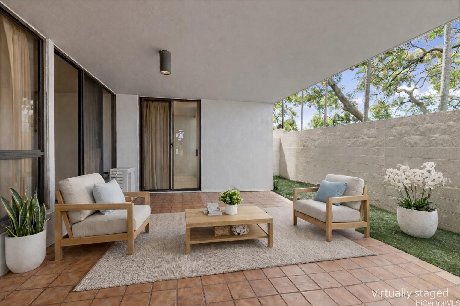 リージェンシー・パークへようこそ!めったに出回らない1階の角部屋です。3ベッドルーム、2バスルーム、屋根付きラナイ、駐車場2台分を備え、すぐにでもお住まいいただけます。レストランやシャミナード大学、ハワイ大学マノア校にも近く、便利な立地です。 施設には、プール、レクリエーションエリア、テニスコート、敷地内の管理・警備が含まれます。 .