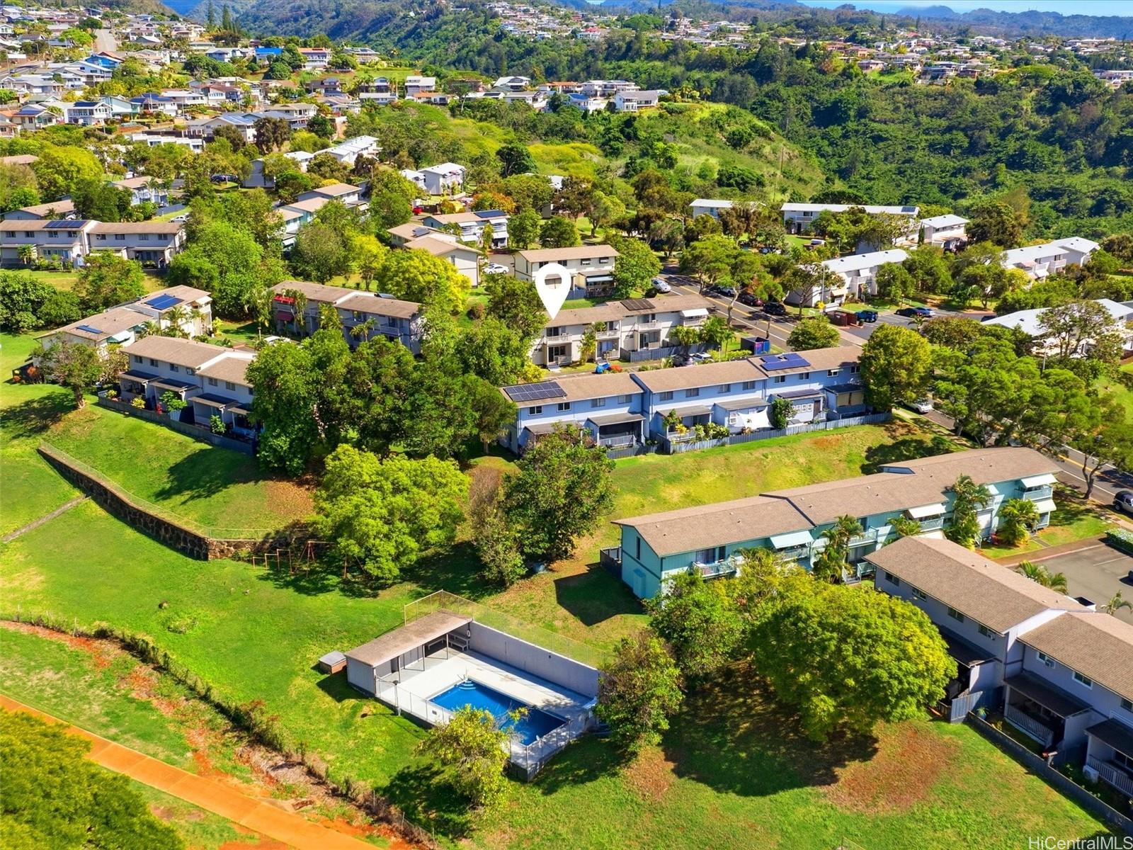 Welcome to Ridgeway B2! Discover this refreshed 3-bedroom, 1.5-bath corner townhome — the perfect opportunity for homeownership in a desirable Aiea community. This private end-unit offers a breezy back lanai that brings in plenty of natural light and cool trade winds. Recent updates include fresh interior paint, newly painted lanais, and the removal of all popcorn ceilings for a clean, modern look. Enjoy the convenience of two parking stalls located right in front of your unit. Centrally located near Pearlridge Center, Pali Momi Medical, and a variety of shopping, dining, and freeway access points — you’ll love how easy island living can be. Come experience the charm of Ridgeway living today!