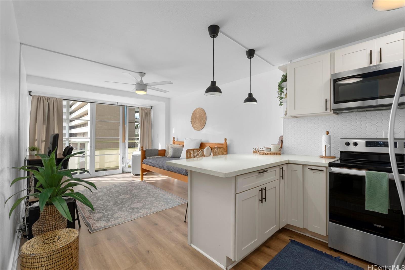 NEW LISTING!! Welcome to Rosalei in the heart of Waikiki! Don’t miss this tastefully renovated 1 bdrm/1 bath condo offering modern comfort in an unbeatable location. The updated kitchen showcases quartz countertops, stainless steel appliances, and contemporary cabinetry, while the remodeled bathroom reflects a clean, refreshed design. Vinyl plank flooring throughout enhances the home’s cohesive style and provides durability and easy maintenance. Just moments from world-famous Waikiki Beach and surrounded by an abundance of restaurants, shopping, and entertainment. Enjoy the convenience and vibrant energy of island living in one of Honolulu’s most sought-after neighborhoods.