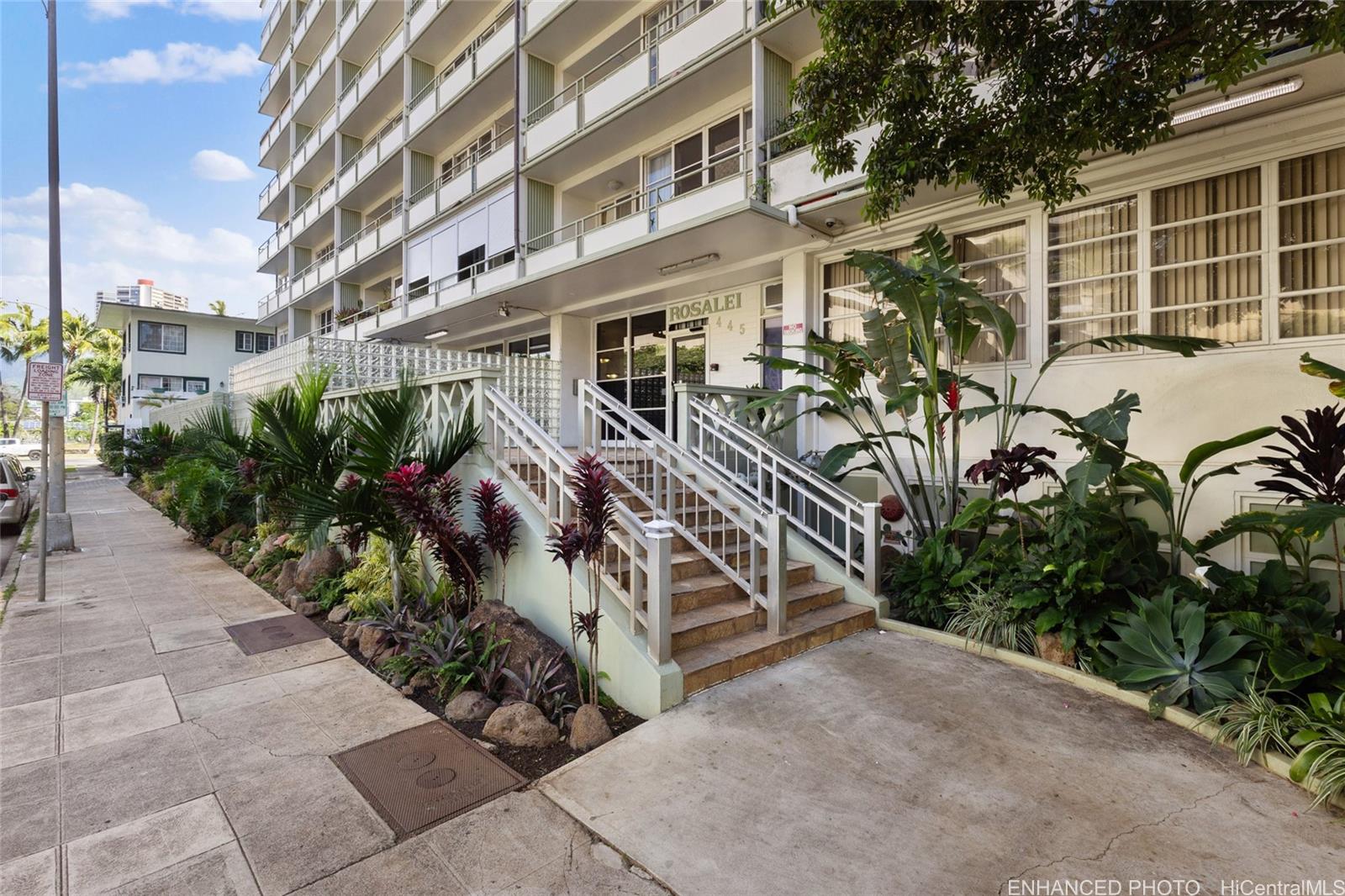 Best-priced fee simple studio in Waikiki ,fully hurricane insured! This spacious studio features a full kitchen, private lanai with great cross-breezes. Located in The Rosalei, a secure and well-maintained building with a pool, community laundry, and on-site management. Major building upgrades include completed full plumbing and re-pipe, exterior painting and spalling repairs, upgraded water heating systems, and modernized elevators. Maintenance fees include electricity, cable, internet, water, sewer, and hot water. Close to beaches, parks, dining, shopping, and the Honolulu Zoo. Parking available nearby.
