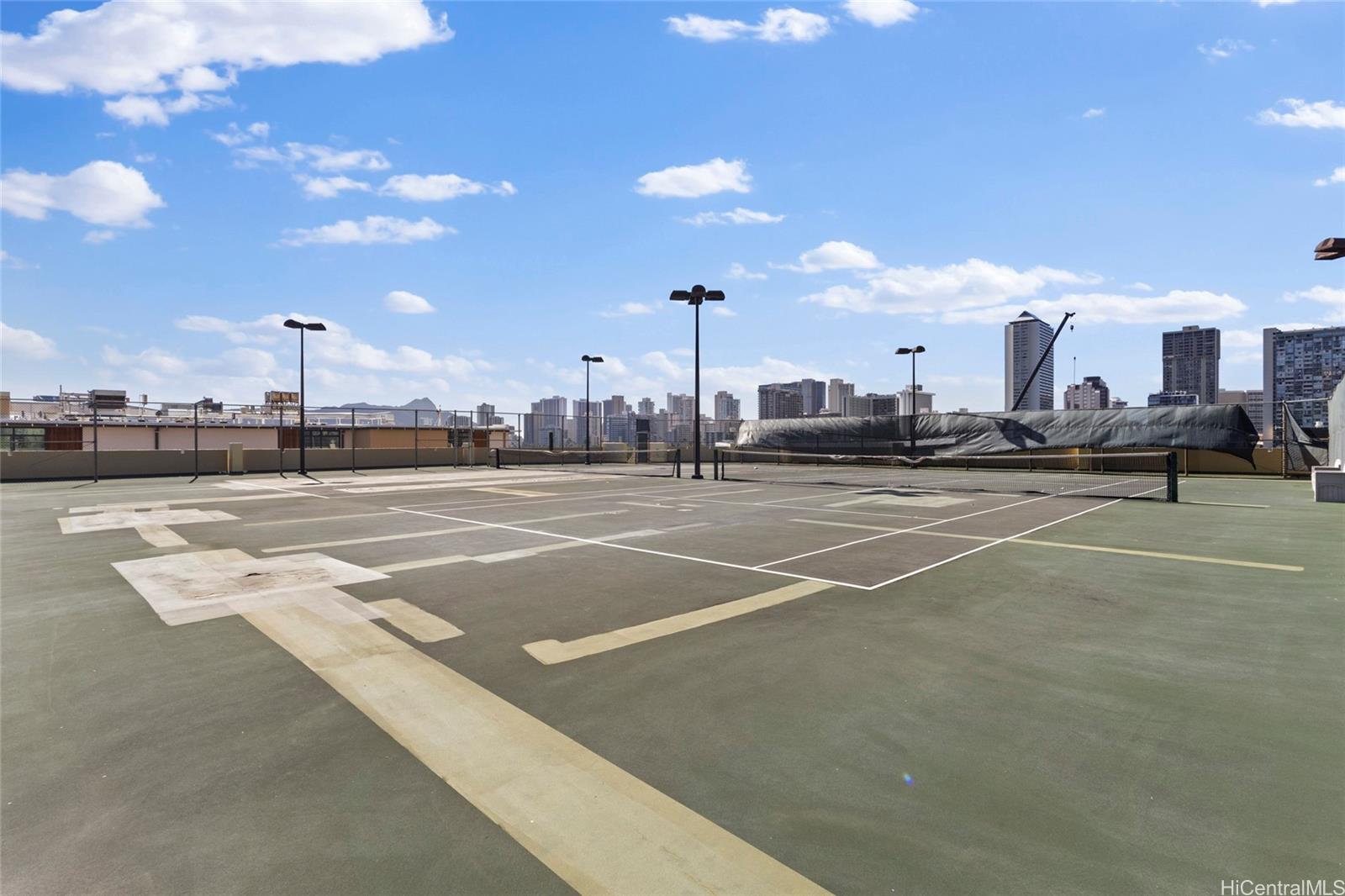 High-floor 38th-level 2BD/2BA residence in the Ewa Tower at Royal Iolani, offering approx. 1,147 sq. ft. of interior livingspace plus a 318 sq. ft. lanai with panoramic views of Diamond Head, the ocean, Waikiki, and Ala Wai Golf Course fromevery room. With only four units per floor, this is the only unit with true cross-ventilation, creating a bright and airy openlayout with a recently updated interior. The spacious lanai is ideal for enjoying sunsets and Friday night fireworks. IolaniSchool is located directly next door with no major streets to cross, a rare convenience in Honolulu, and the property isalso minutes from UH Manoa and Punahou School. Resort-style amenities include a heated pool, jacuzzi, fitness center,sauna, tennis courts, EV charging stations, and ample guest parking. Maintenance fee covers all utilities, including centralA/C, electricity, water, sewer, cable, and internet. Recent building improvements include new elevators and completedwastewater pipe replacement. Pet-friendly (buyer to verify). Prime location near Waikiki beaches, dining, shopping, anddaily conveniences.