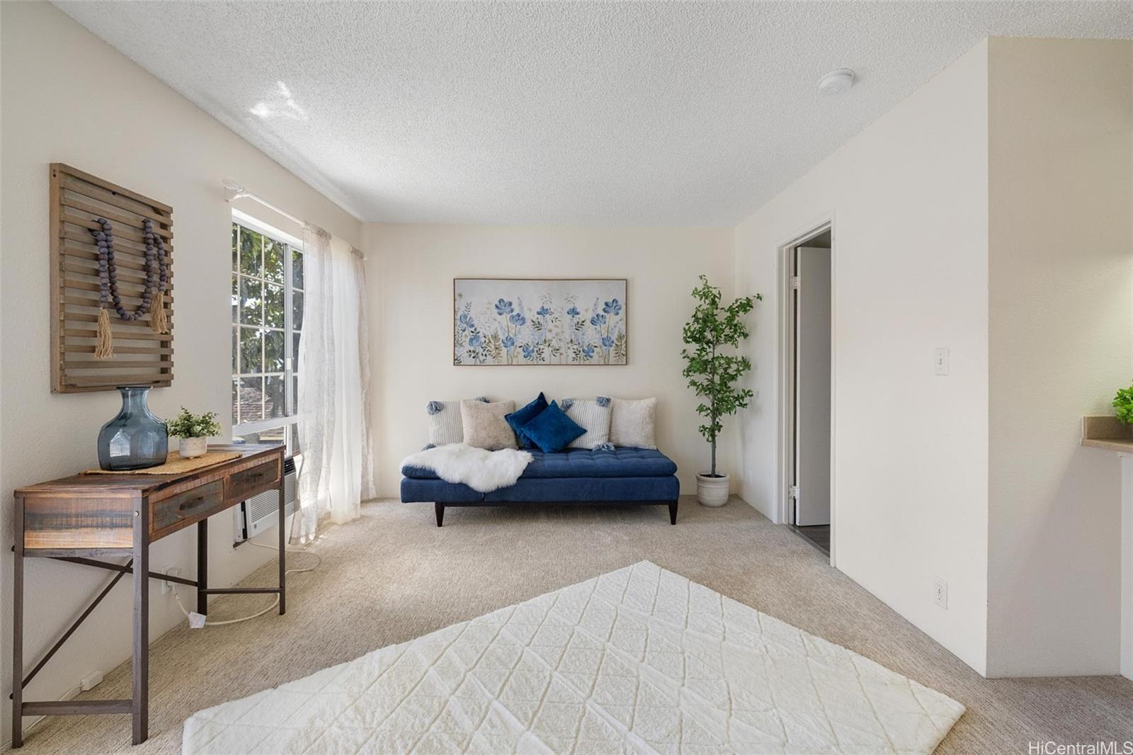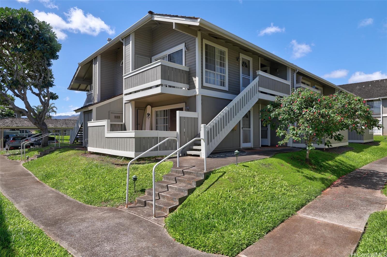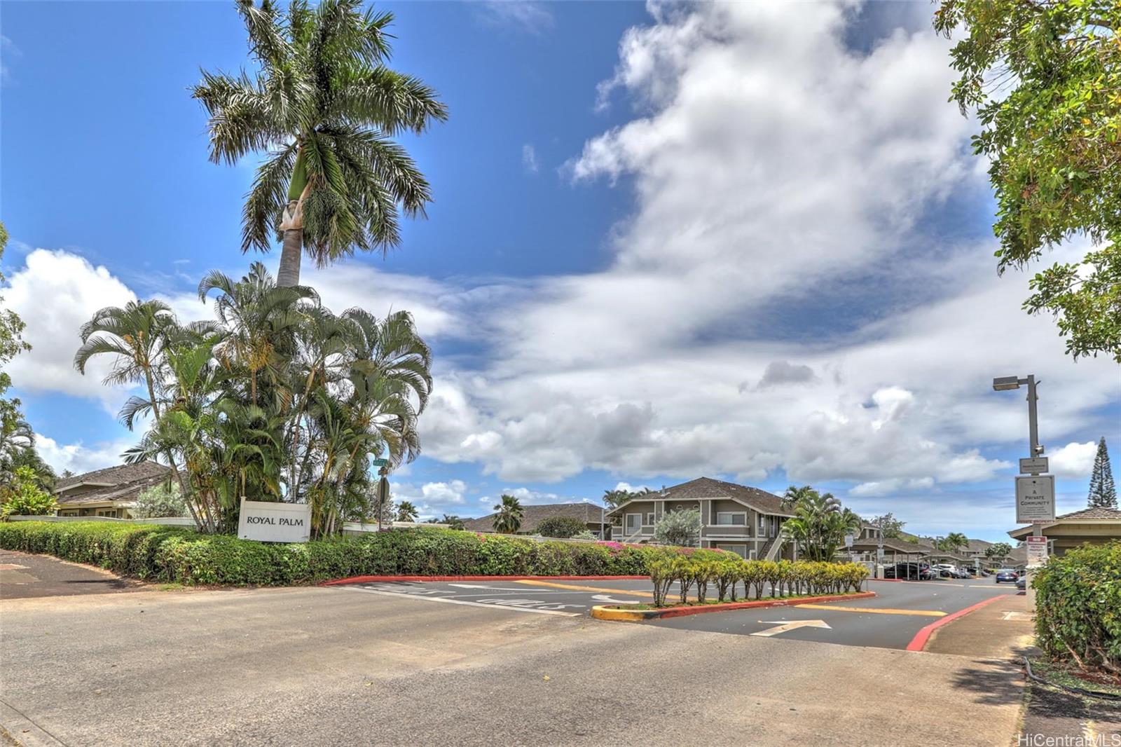 Take advantage of this opportunity to own this studio unit in the desirable Royal Palm at Waipio! This unique townhouse studio unit has been well maintained and includes a lanai with storage closet, stacked washer/dryer and 1 covered parking! This complex is centrally located near shops, park and restaurants!