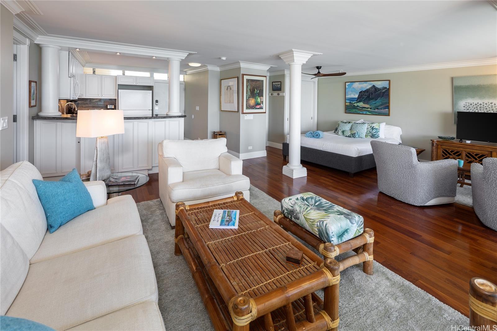 2月28日(土)に閲覧可能 この見事に手入れされた高層階の住居からは、カイマナ・ビーチ・ホテルを越えた眺望が広がり、海とヤシの木々、そして涼しい貿易風が感じられます。 柔軟な間取りは広々とした1ベッドルームのように機能し、ゲスト用スペース、オフィス、または寝室スペースとして最適な追加エリアを備えています。 価値を重視する方にとって賢明な選択肢——リースホールド方式により、より多くの資本を他の投資に回しつつ、月々の維持費を相殺する収入を得る可能性を秘め、比類なきライフスタイルの立地を享受できます。 現在賃貸中で、最低30日間の滞在が条件となります。 隣接する#1106(スタジオ、MLS# 202600209)と併せて購入できる稀な機会。家族のリトリートやバケーション用別荘として、隣り合わせの空間を創出できます。 愛されるオーシャンフロントの建物。カイマナビーチ、アウトリガー、カピオラニ公園、ワイキキの飲食店まで徒歩圏内。 立地条件の柔軟性とオーシャンフロントの暮らしを融合した特別な物件。 .