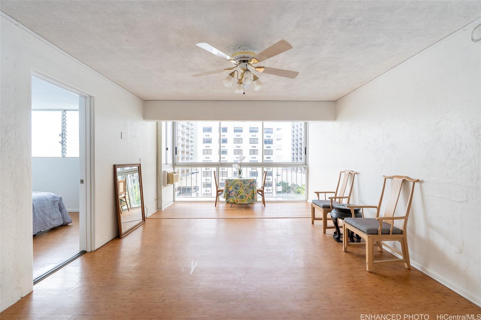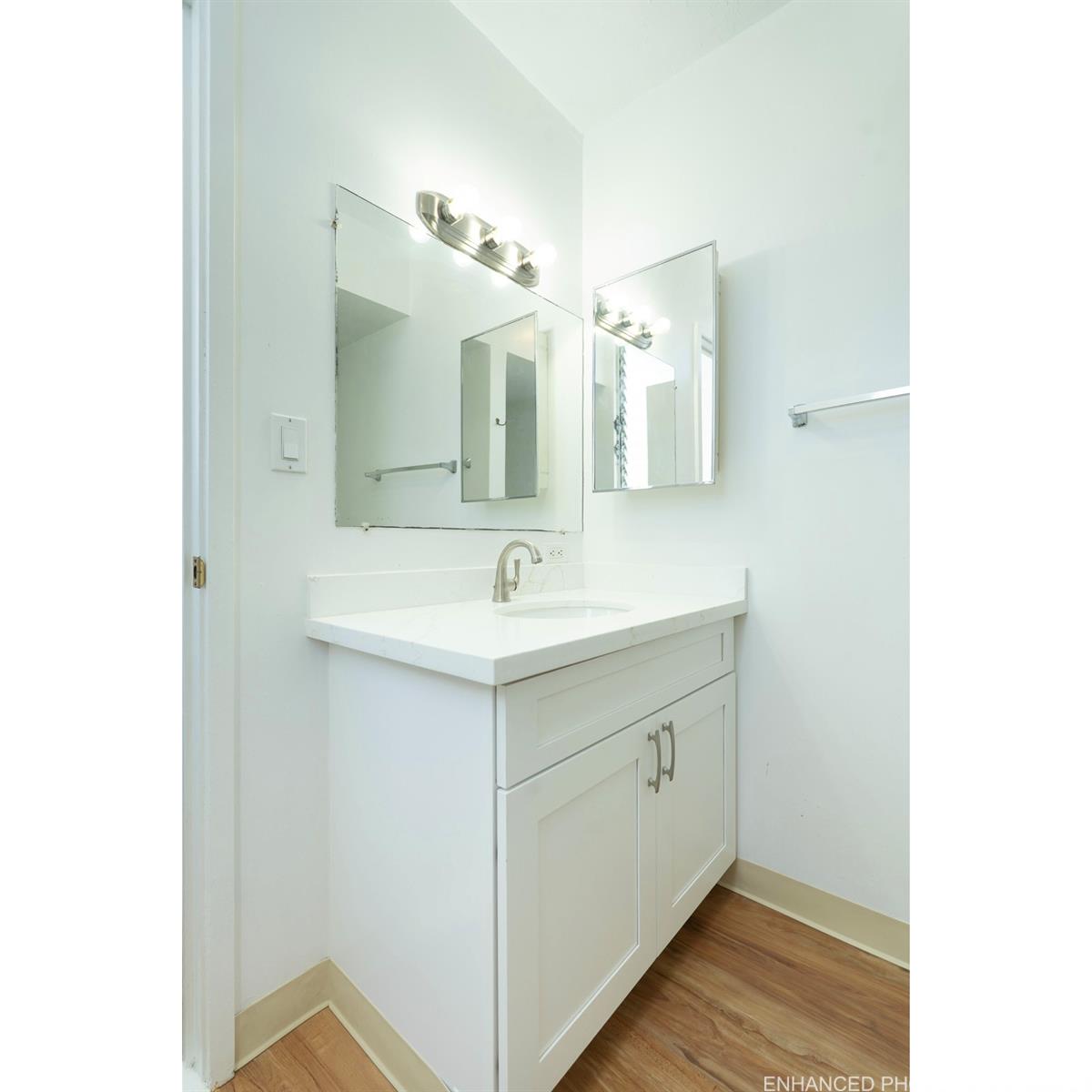 Scandia Towers is located minutes away from Waikiki Beach and is zoned for a legal short term rental! Scandia Towers is rarely available and this unit features two bedrooms each with their own ensuite bathroom layout, and an lanai enclosed lanai providing additional living space. This unit has been upgraded with brand new kitchen cabinets and countertops, new showers stalls, vanities and toilets in both bathrooms. Plumbing and lighting fixtures also upgraded throughout the unit including several areas throughout the unit with new LVT flooring as well. This unit is ready to begin short term rentals or for a new buyer to move in.