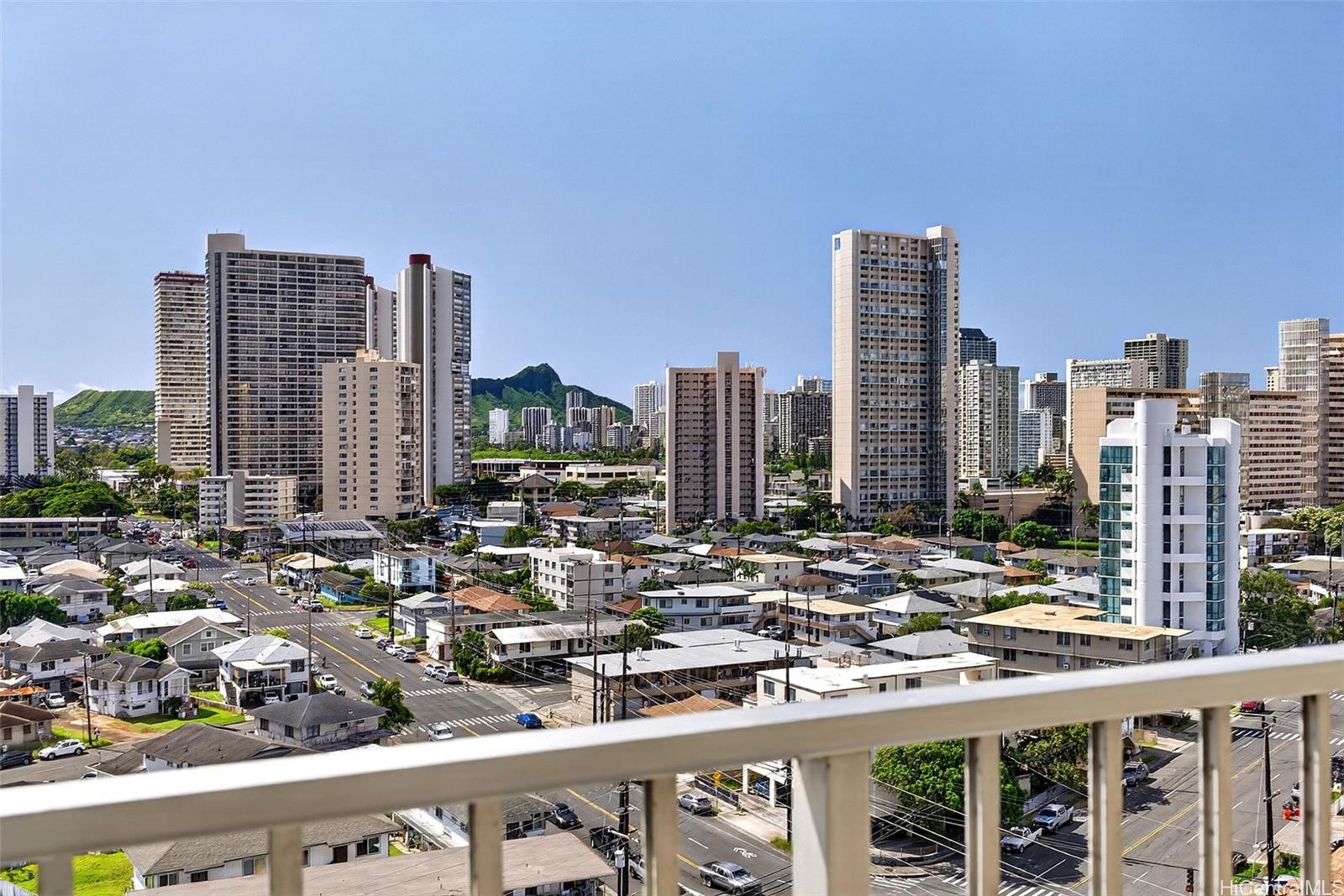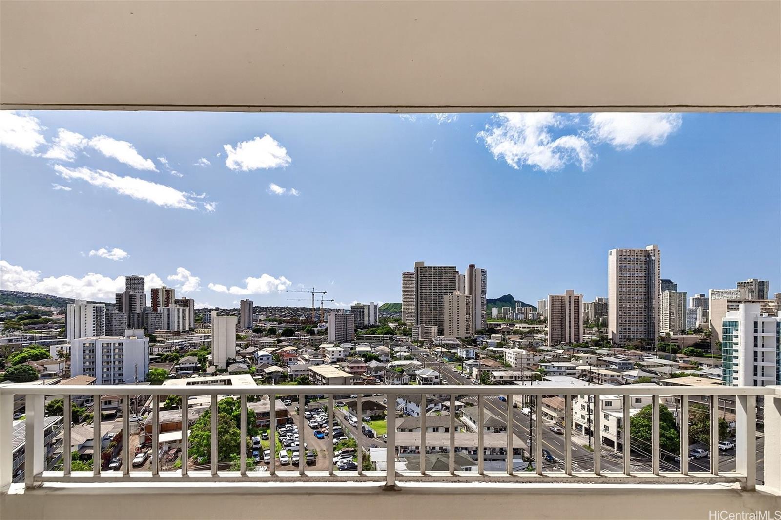 This home can command a Higher Value than others in Scenic Towers, due to its Panoramic Views of Diamond Head & Manoa Valley. Location is Everything. Only Five minutes to the University of Hawaii, Six to Ala Moana & Seven to World Famous Waikiki Beach. Enjoy Life & Relax More as you watch the Moon Rise from your patio lanai. Recent upgrades include New Kitchen Cabinets, Quartz Counters, Water Resistant Flooring, Freshly Painted Walls & a Re-glazed Bath Tub area. Maintenance fees include electricity, internet, cable & water, so you can rest at ease with an AC running all day. Scenic Towers is 100% hurricane insured & pet friendly (please verify). One covered parking space included and washer/dryer in unit. Sparkling clean pool, BBQ grills, & currently employing excellent on-site property management. This is the one you want. This is home. This is 808Living. Some photos enhanced with digital staging.