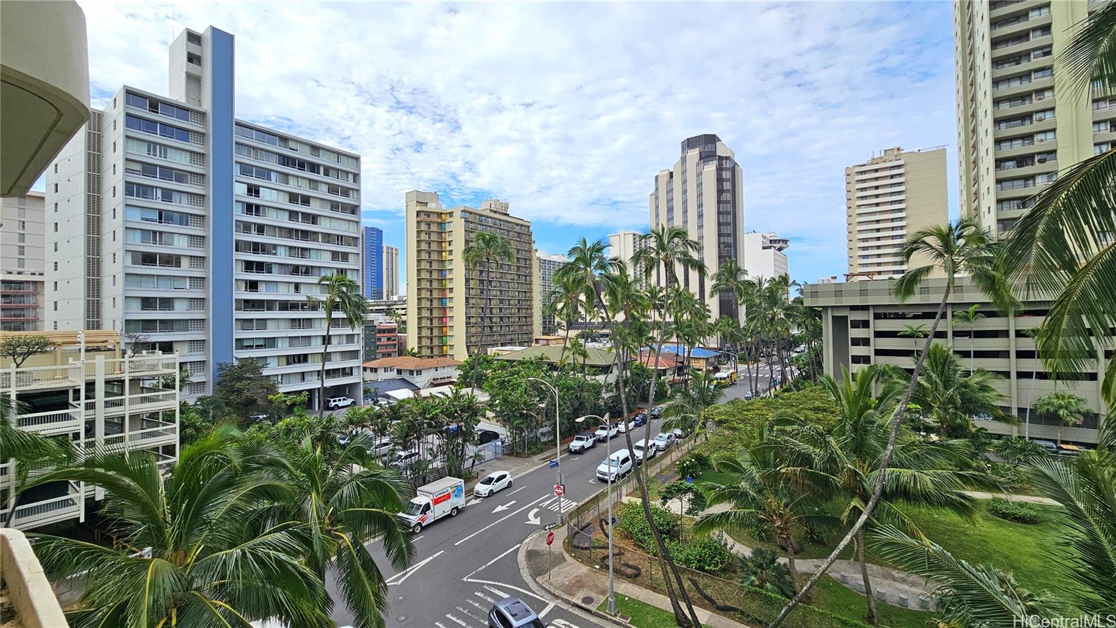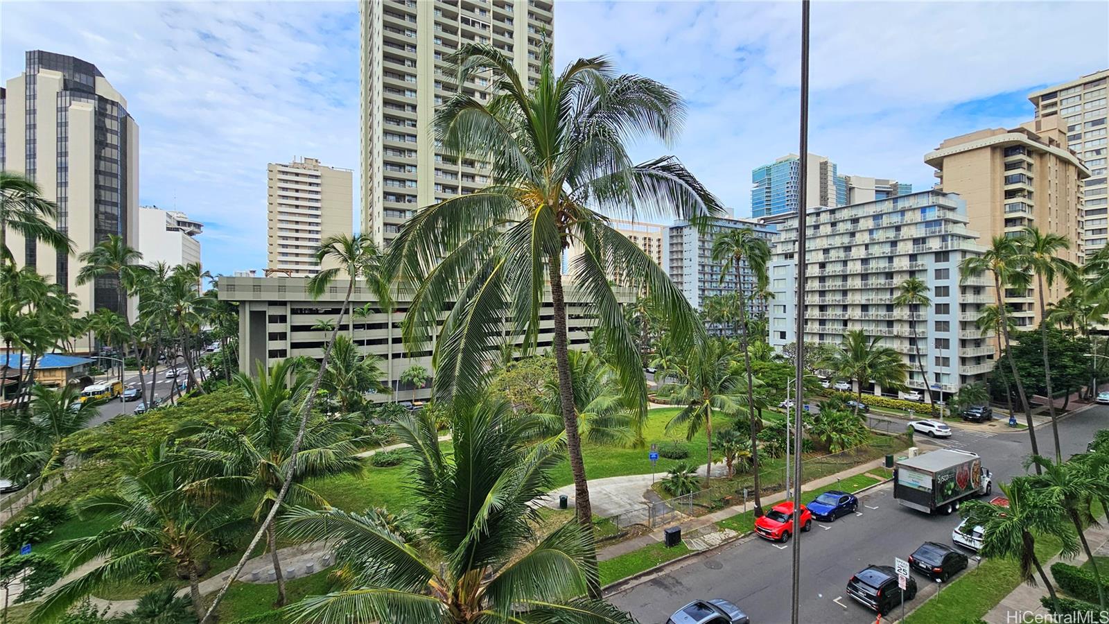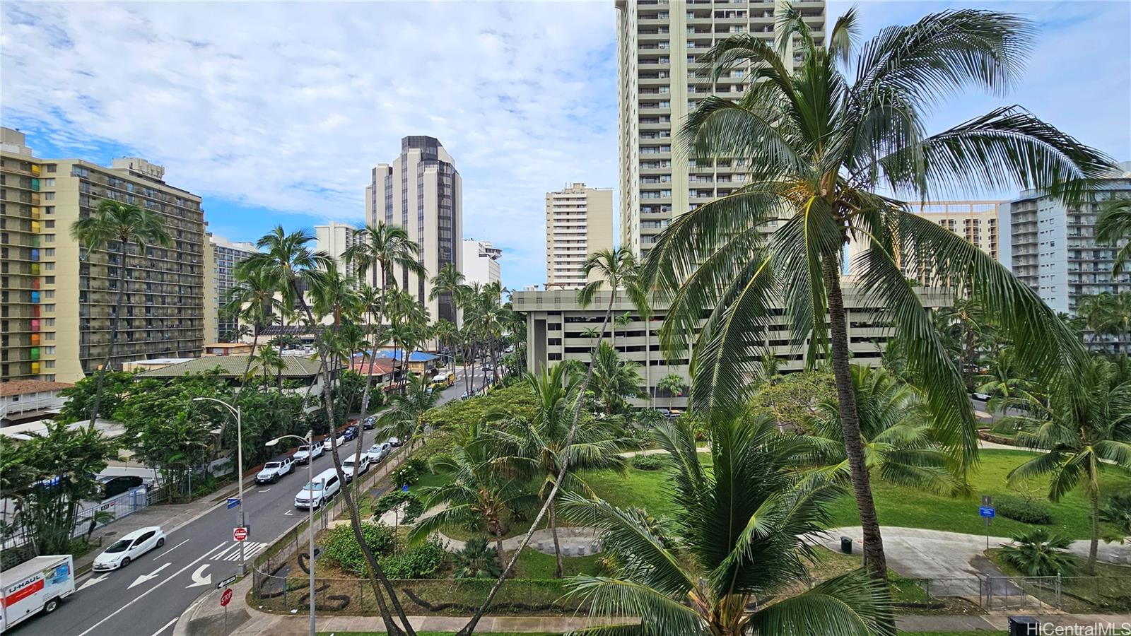 Experience the perfect blend of island tranquility and urban convenience in this beautifully maintained, fee-simple studio. Overlooking a lush green park and just two blocks from world-famous Waikiki Beach, this home features a freshly painted interior, and a functional kitchen with a breakfast bar. Enjoy effortless living in a secure, well-managed building where the HOA fee conveniently covers electricity, central AC, water & sewer, TV-cable and trash removal. This unit also includes a rare, assigned covered parking stall – a premium for the area. Ideally located minutes from Ala Moana, Kapiolani Park, and Downtown Honolulu, this property is a standout choice for a primary residence, vacation getaway, or investment. Own your piece of paradise in Honolulu’s most sought-after location. Schedule your showing today!