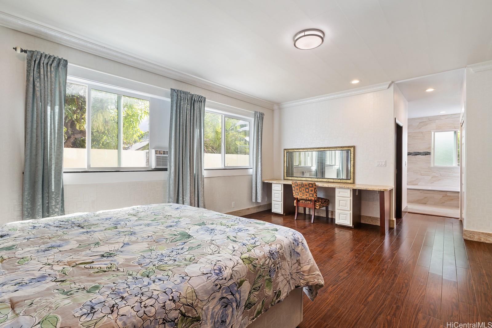 Rare opportunity with great potentials, for either own family living or rental investment, easy to afford mortgage! Located only a few houses away from world-famous Waimanalo white sand beach! Ideal for own living to enjoy lots of space in highly desirable beach neighborhood. 5704sf living space, 6 private entrances on 11,250sf lot. This 2-story house, 3811sf was newly built in 2015. Plus 1-story Ohana unit, 1893sf. This gated & spacious property offers 11 bedrooms, 8 full bathrooms, idyllic office space. Stunning, unobstructed Ko’olaumountain views. Total of 2 kitchens, 2 wet bars and plus. Huge sizes for all living rooms, kitchens, bedrooms, etc. 11ft tall ceiling for main living room; 9ft tall for other areas. Tons of upgrades: lanai, auto metal gate, natural stones, metal roof, solid wood cabinets & double-door entries, hardwood floor, granite & quartz countertops, Quartz staircase, etc. If for rental, since so close to beach, high rental demands paying good price to generate good incomes.