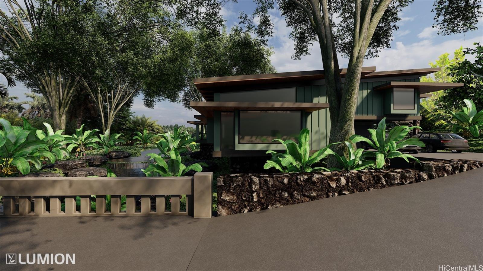 Nestled among the lush canopies of Dowsett, next to the tumbling Nu’uanu Stream, this serene parcel has APPROVED architectural plans, PERMITTED TO BUILD — No DPP wait. Designed by award-winning local architect Jim Schmit, known for tropical modernism and island sensibility, this contemporary residence is designed to live among the trees and belong to this coveted Hawaii neighborhood. Enter from a level approach off Pelekane Drive, expansive floor-to-ceiling windows frame the living greenery like art, while below, the stream tumbles across terraced tiers into soothing gentle waterfalls. A covered lanai extends living outward, and an approved ADU above the four-car carport offers endless possibility — home office, studio, guest quarters. This is Dowsett: steeped in history, embraced by tropical vegetation, and the quiet magic of one of O’ahu’s most cherished valleys. The lot is graced with monstera, Java plum, mango, Hawaiian ginger, ‘ulu, ti leaf, heliconia, and more. Plans fully approved — talk with your builder today.