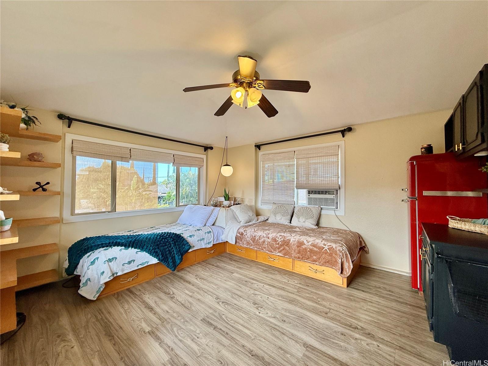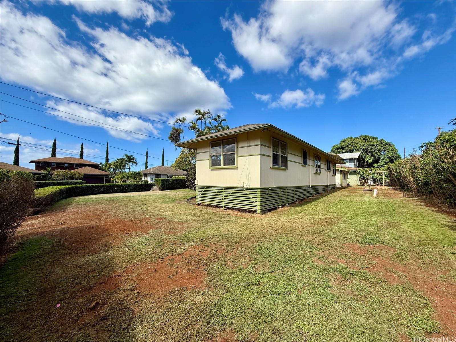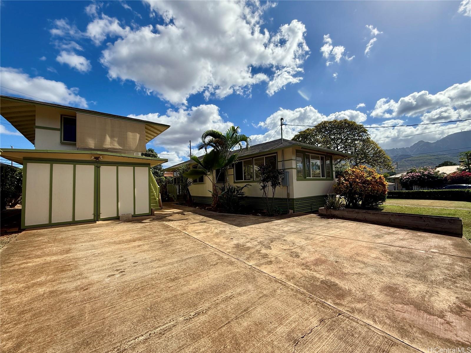 You seriously don’t want to miss seeing the charm and character of this roomy (1,222 SqFt) two bedroom, one bath home! From the curvature of the concrete steps leading to the front door, to the entry with its angled walls and built-ins, this home gives off a very warm welcome to Hawai’i living! There is a large living room, separate dining room (or use as a home office), and a spacious kitchen with eat-in nook. We also have a detached studio with its own full bath (240 sqft) perched above the 1-car garage, AND a separate laundry room downstairs, with an attached half bath. Additionally, there is a custom-built storage shed, as well as lots of room to park on this huge 9,984 square foot lot that feels like it’s on a corner, but it’s on the bend in the road so there’s no constant stopping and accelerating at a stop sign. The septic system was installed around 2011 and recently pumped. The home was tented/fumigated in April 2025 and comes with a 5-year warranty (to be provided for review). We’re located in the neighborhood behind Paalaakai Bakery and Paalaakai Market for your convenience. Schedule your showing today!