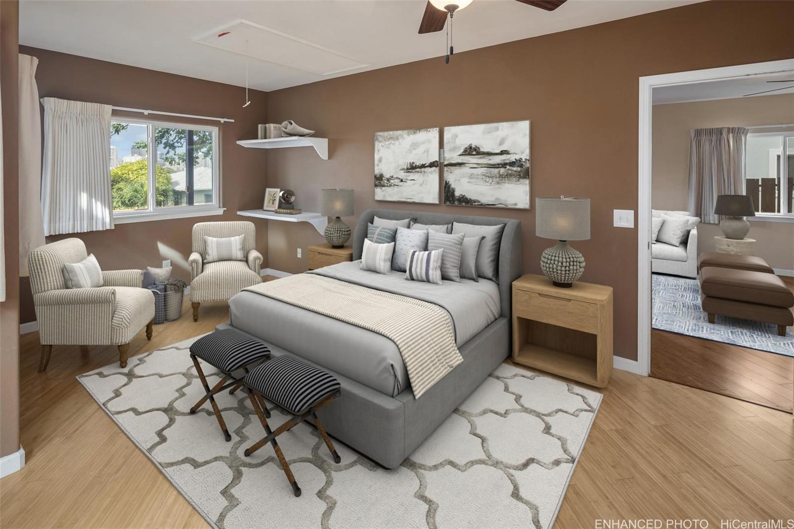 Excellent opportunity to own in one of Honolulu’s most sought-after neighborhoods at a great price. Completely updated 2-bedroom, 2-bath home offers a functional and flexible layout, with the primary suite on the main level featuring a whirlpool tub and low-curb shower. The upper level includes a generously sized second bedroom with a walk-in closet and full bath. A spacious kitchen is highlighted by a beautiful island and quality KraftMaid cabinetry. A comprehensive 2012 remodel included updated plumbing, electrical, and dual-pane vinyl windows. Ideally located just minutes from beaches, shopping, dining, KCC, Kapi’olani Park, and more!