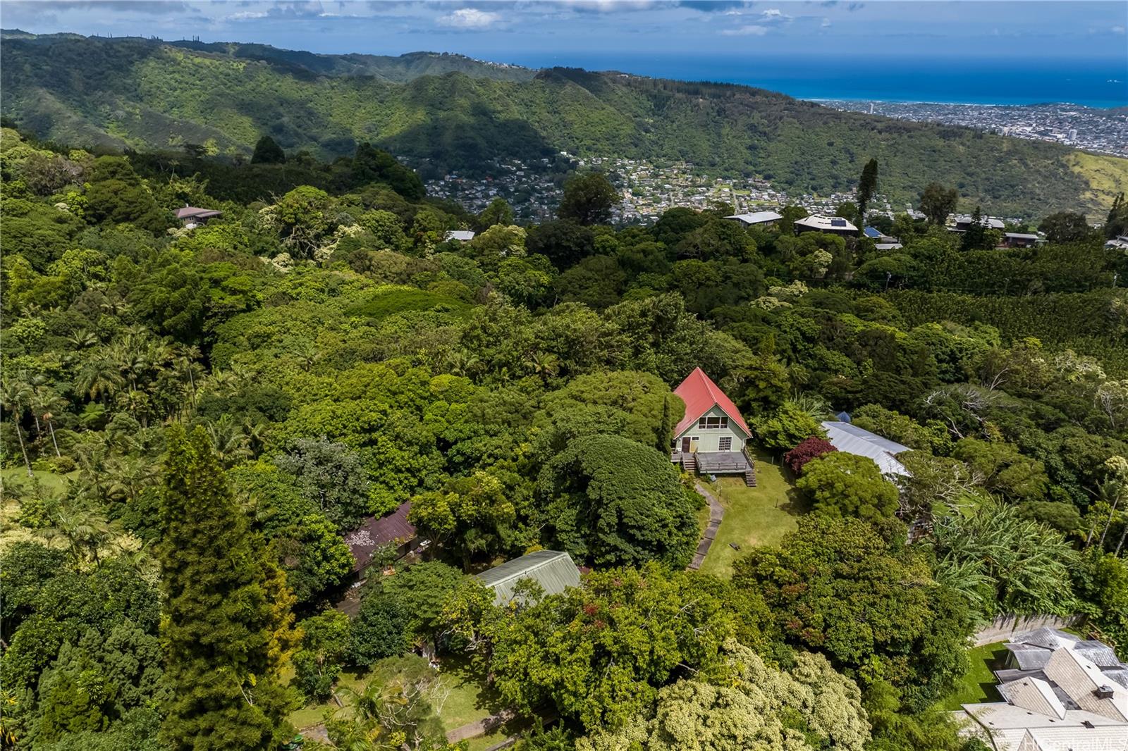 Discover unparalleled beauty & serenity in this rare Round Top Drive estate — a secluded, nature lover’s haven spanning nearly 3 acres btw 2 parcels: 4137 Round Top Dr (approx 39,899 SF) & 4189 Round Top Drive (approx 1.85 acres). Perched above the city in one of Honolulu’s most enchanting & historic neighborhoods, this lush tropical retreat offers breathtaking privacy & peek-a-boo panoramic views through old growth trees of the ocean, city skyline & Diamond Head. A winding drive through forested slopes leads to 2 charming cottages & a four-car garage. The front cottage exudes timeless character, while the whimsical A-frame cottage will stir your imagination. Step back in time & create your dream compound, artist’s hideaway, or a tranquil gardener’s sanctuary above the bustle of Honolulu — just 15 minutes away. This estate offers more than a home — it offers an experience that is a world apart from the ordinary and will transport you to another time a place. This is a rare opportunity to own a secluded compound in one of O‘ahu’s most storied mountain neighborhoods. $1,795,000 is total price for both properties. Pls do not go to the property w/out an appt. Contact listor for info.