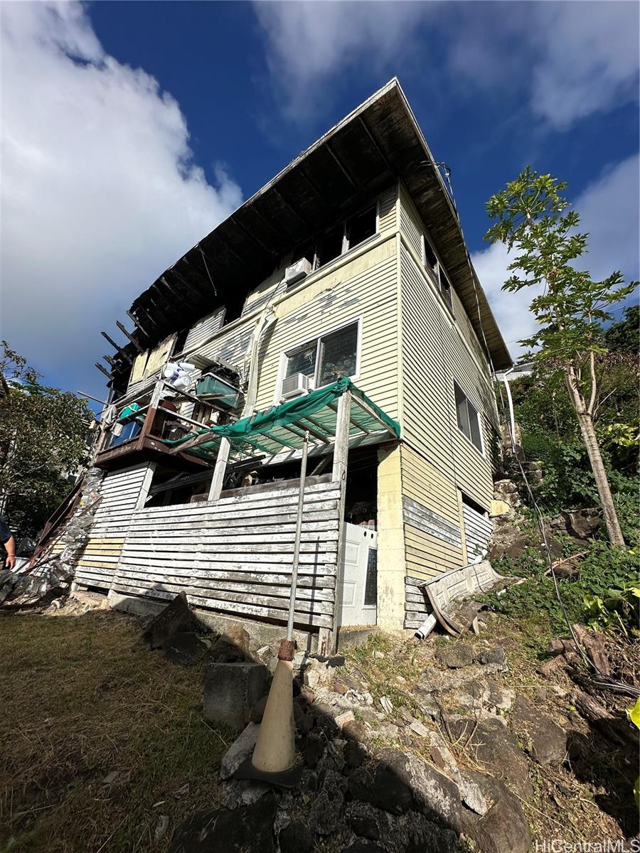MAJOR PRICE REDUCTION. $274K UNDER TAX ASSESSED LAND VALUE. FIXER UPPER OR TEAR DOWN OPPORTUNITY. HAZARDOUS MATERIAL TESTING PERFORMED ON 1/22/24 BY ENVIRONMENTAL RISK ANALYSIS INC. TESTS SHOW NO SIGNS OF ASBESTOS AND ACCEPTABLE LIMITS FOR OTHER HAZARDOUS MATERIALS. DEBRIS CAN BE DISPOSED OF ON ISLAND. SEE REPORTS IN SUPPLEMENTS. RARELY AVAILABLE PACIFIC HEIGHTS LOT WITH BEAUTIFUL VALLEY AND MOUNTAIN VIEWS ON PRIVATE ROAD. BUYER MUST PERFORM THEIR OWN DUE DILIGENCE. HOME IS PARTIALLY BURNT DOWN. WE HAVE A FORMAL QUOTE FROM AMAZON CONSTRUCTION TO REMOVE THE ENTIRE HOME FOR $80,000 (ALSO IN SUPPLEMENTS).