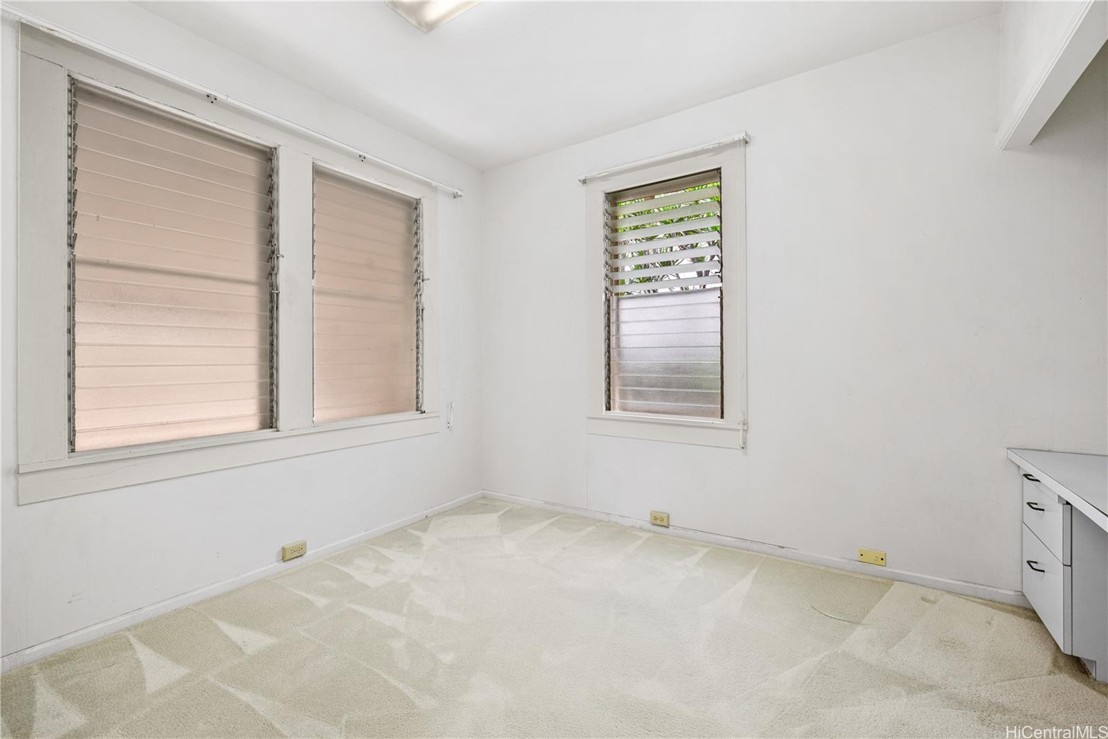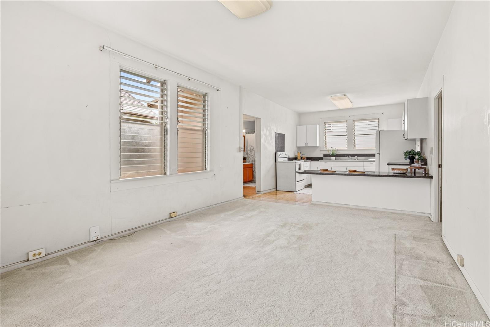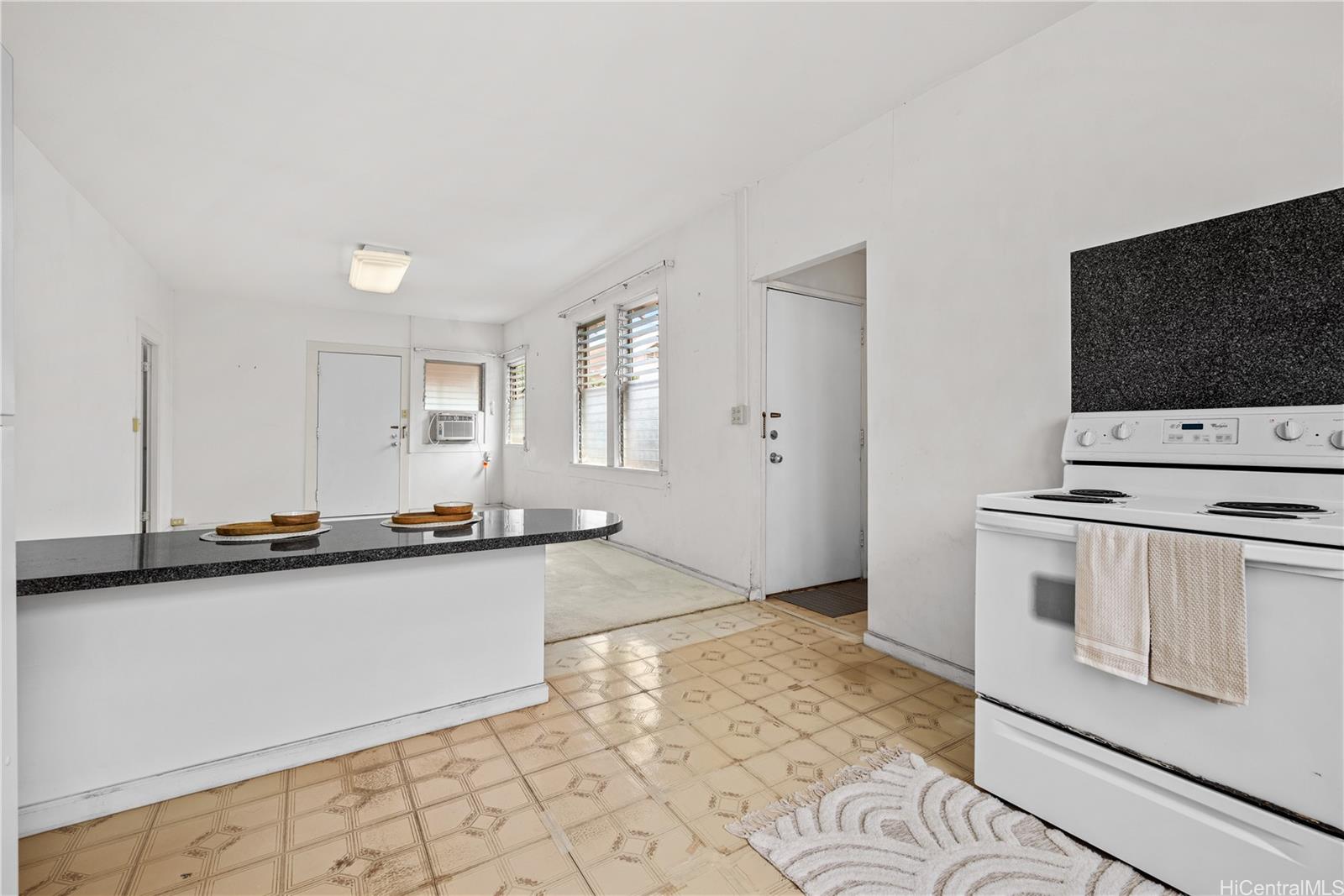 Don’t miss this charming 2-bedroom, 2-bath single-family home in the heart of Kaimuki, just behind Diamond Head Theatre. You’ll love the high ceilings and open floor plan that includes an extra large kitchen with eat-on peninsula that opens seamlessly to the living area. There are lots of windows in every room, offering cool cross breezes and lots of natural light. This home has been loved by generations of the same family and is now ready for your personal touch. Enjoy the privacy of being at the end of a little lane with a covered parking space under a shared carport, and a gated yard with room to play and grow. Located close to shops, dining, and neighborhood favorites. Property is being sold in its As-Is condition.