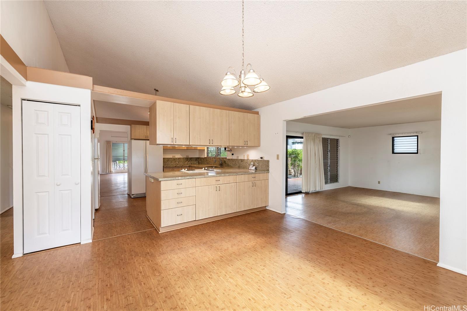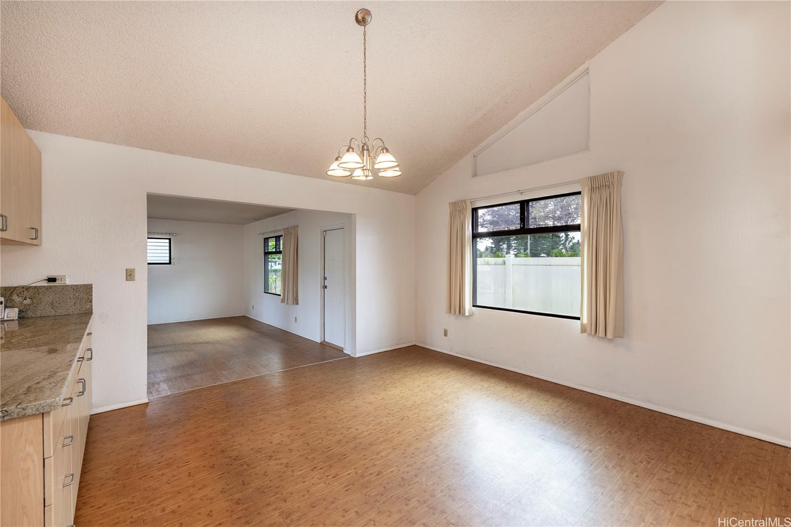 Located in desirable Mililani Town, this ideal and highly preferred single-level home with open concept offers comfort, space, and opportunity. Featuring a convenient 2-car carport, the home boasts a spacious layout with both a generous living room and separate family room — providing flexible space for relaxing, entertaining, or everyday living.Step outside to a large covered patio, perfect for gatherings, weekend barbecues, or simply enjoying the island breeze. Situated directly across from a park, the location offers added privacy, greenery, and easy access to outdoor recreation.This home is ready for your personal touch. Bring your paint brush and choose your own flooring to transform this well-built property into the home of your dreams. A fantastic opportunity to customize and build equity in one of Central Oahu’s most sought-after communities.