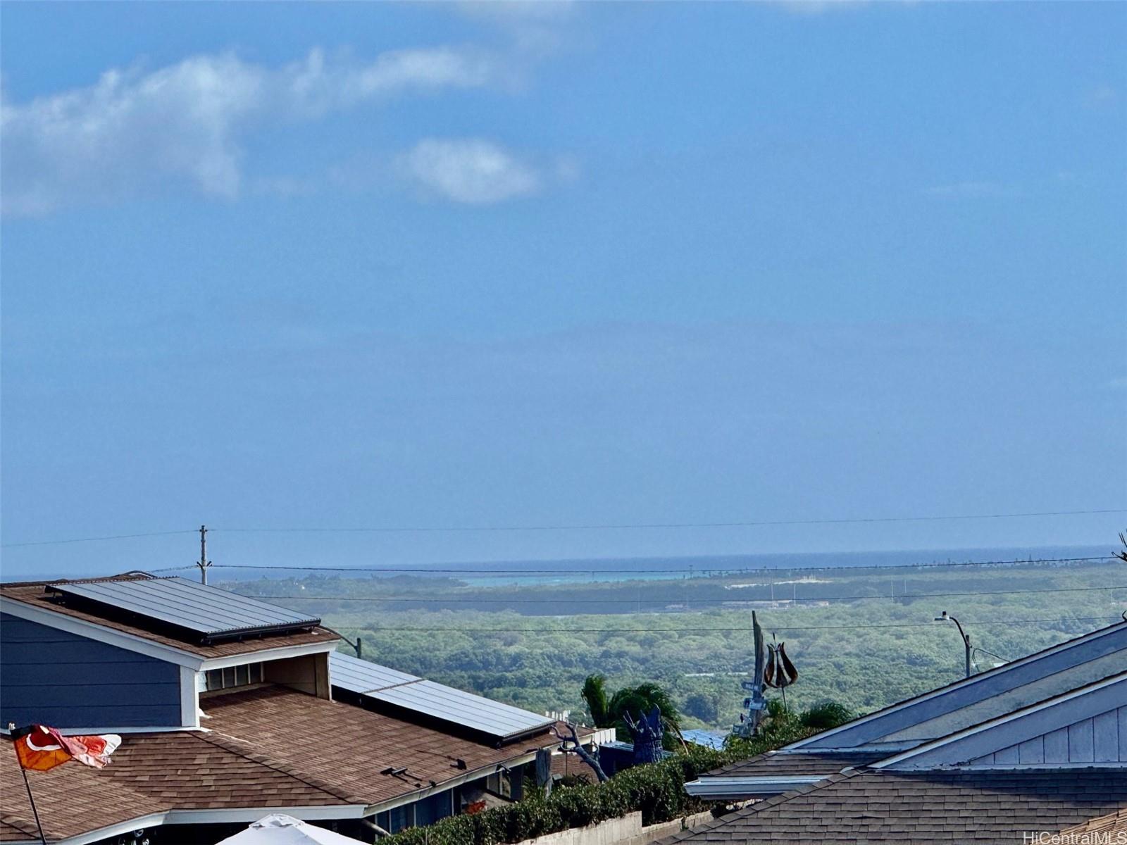 Welcome to this thoughtfully and beautifully upgraded corner home in a well sought neighborhood in Village Park. An open and efficient floor plan flows seamlessly from kitchen to dining and living room. Contemporary bathroom renovations featuring ADA compliant functionality design and safety features. Kitchen has in-cabinet pull out drawers and organizer, instant hot water and softener dispenser installed in the sink. Stay cool and comfortable with split AC powered by prepaid PV panels that will help lower electricity bill. It also includes a Tesla battery car charger in the garage. Experience elevated island living while you relax at the back lanai with an ocean view, historic Pearl Harbor and iconic Diamond Head. Must see to appreciate!
