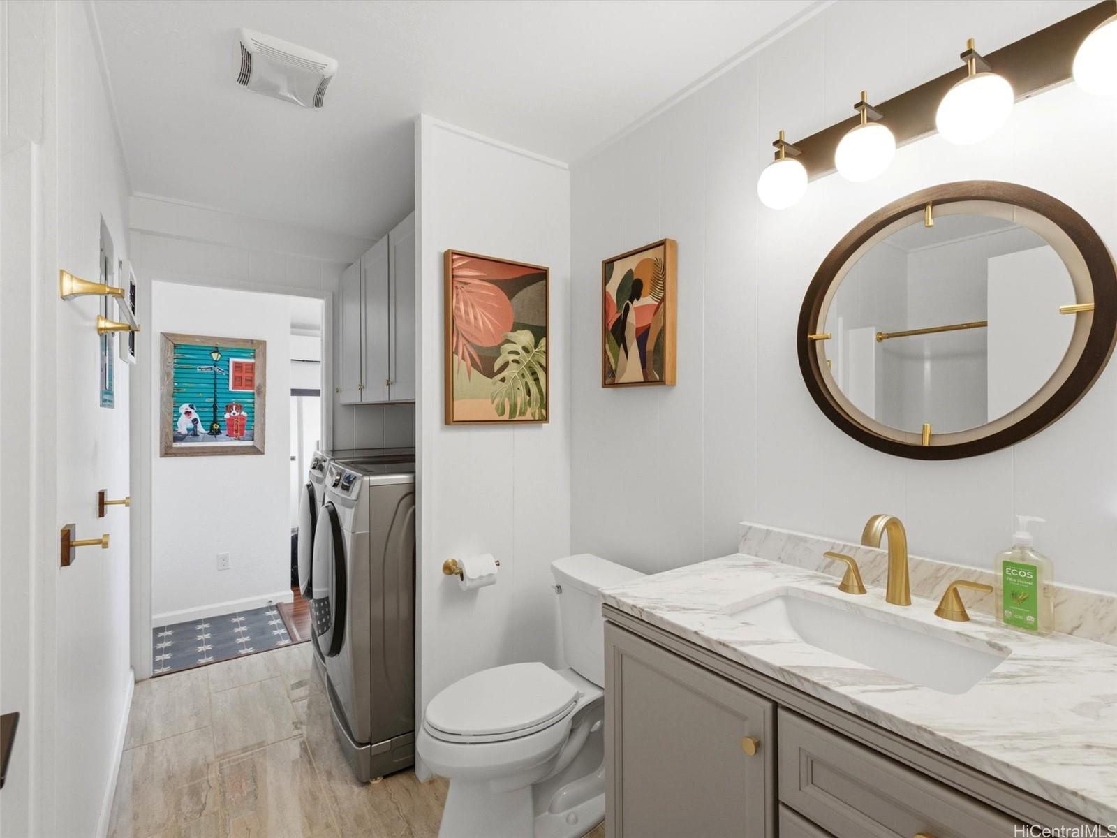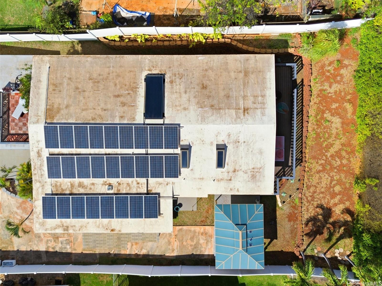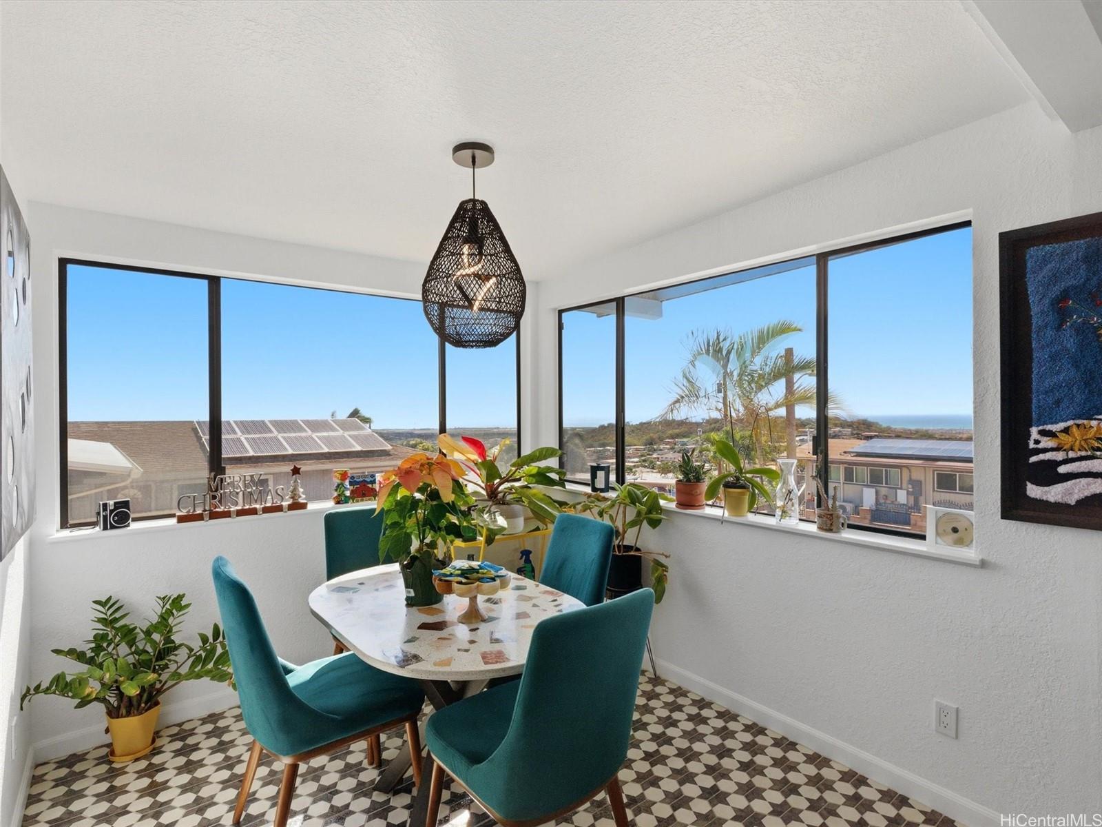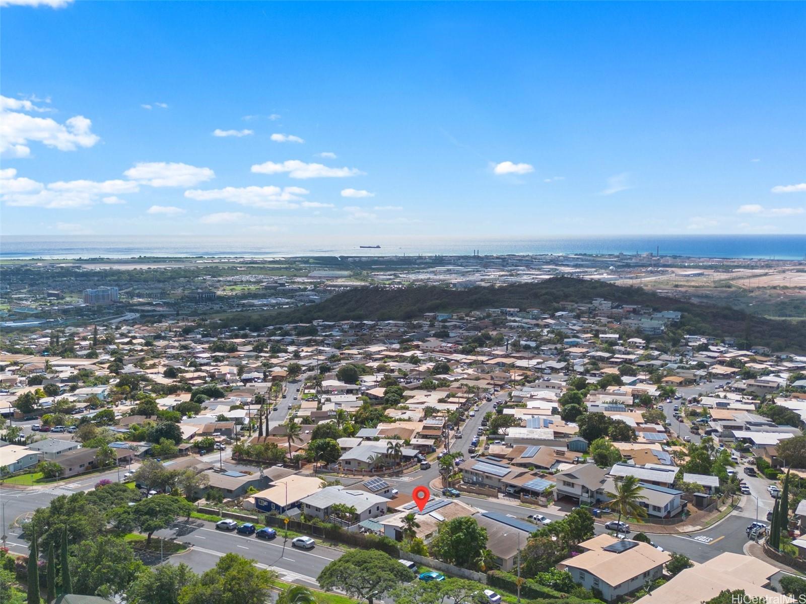 Experience elevated Makakilo living in this beautifully renovated, pet-friendly 3-bed, 2-bath single-family home. Positioned in LowerMakakilo, this refined residence features an open, airy layout with an expansive living room that easily accommodates a full sectional. The adjoining kitchen offers stylish counter seating—perfect for casual dining or entertaining. Enjoy cool Makakilo breezes as you unwind in the backyard gazebo or take in colorful sunset views from the lanai. Modern upgrades include owned PV panels, a dedicated solar water heater, and split A/C throughout for year-round comfort. The primary suite offers a true retreat with a luxe jacuzzi tub and serene ambiance. A rare blend of comfort, style, and island living—this Makakilo gem is move-in ready and beautifully appointed.