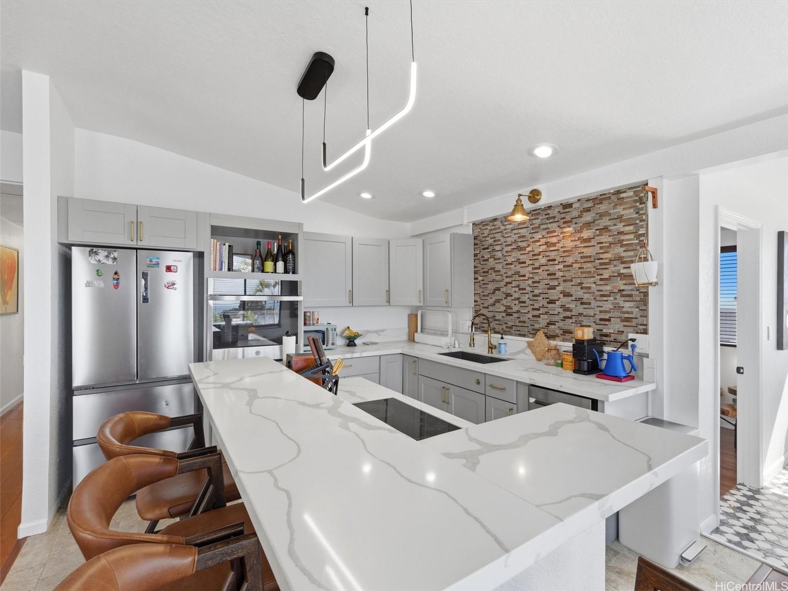 美しく改装された、ペット可の3ベッド、2バスルームの一戸建てで、マカキロでのワンランク上の暮らしをご体験ください。 ロウアー・マカキロに位置するこの洗練されたレジデンスは、開放的で風通しの良いレイアウトが特徴で、フルセクショナルを楽に置ける広々としたリビングルームがある。 隣接するキッチンにはスタイリッシュなカウンター席があり、カジュアルなダイニングやおもてなしに最適です。 裏庭のガゼボでくつろぎながらマカキロの涼しい風を楽しんだり、ラナイから色とりどりのサンセットを眺めたり。 現代的なアップグレードとしては、太陽光発電パネル、太陽熱温水器、一年中快適なスプリット・エアコンなどがある。 プライマリースイートは、贅沢なジャグジーバスと落ち着いた雰囲気の真の隠れ家。 快適さ、スタイル、アイランド・ライフが融合したマカキロの宝石は、即入居可能で、美しく整えられている。 .