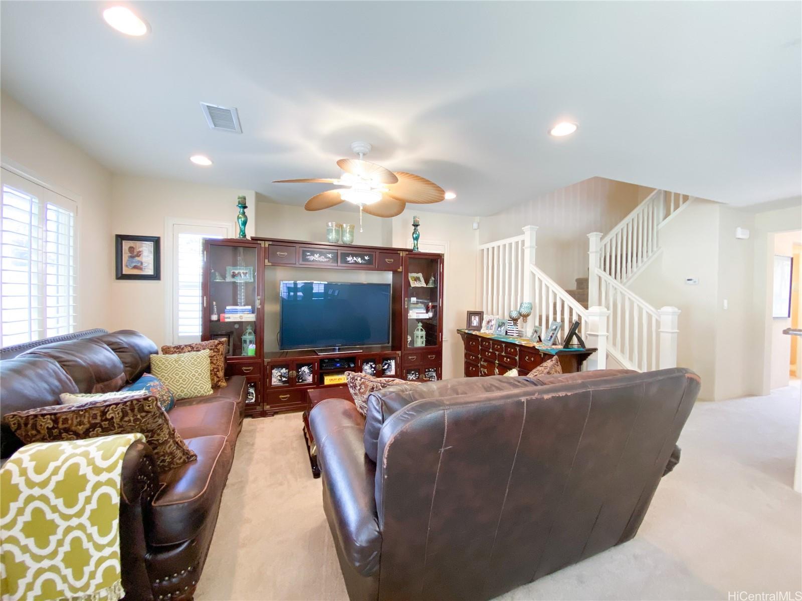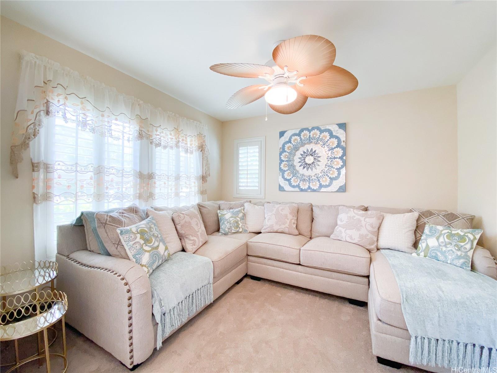 Beautiful 3-BR, 2.5-BA single-family home located in the award-winning Ka Makana at Hoakalei community. This well-maintained property features PV solar panels to help reduce electric bills, central A/C, & solar water heater. The open layout includes tile flooring in the kitchen, stainless steel appliances, & den/office on the ground floor-perfect for a home office or entertainment. Upstairs offers convenient tech area & private balcony off the primary bedroom. Plantation shutters are installed throughout. Enjoy the convenience of a 2-car garage with rafter storage & large, professionally landscaped, fenced backyard with a sprinkler system-ideal for relaxing or entertaining. HOA includes phone/cable/internet package & access to the community’s amazing amenities – swimming pool with jacuzzi, tennis/pickleball court, & fitness center. The neighborhood offers walking & jogging paths, parks, playgrounds, & dog park. Conveniently located just minutes from shopping, schools, parks, restaurants, Ka Makana Ali‘i, UH West O‘ahu, golf courses, & beaches. Close to the Wai Kai waterfront recreation & lifestyle destination featuring The LineUp surf wave, lagoon water activities, dining, & more.