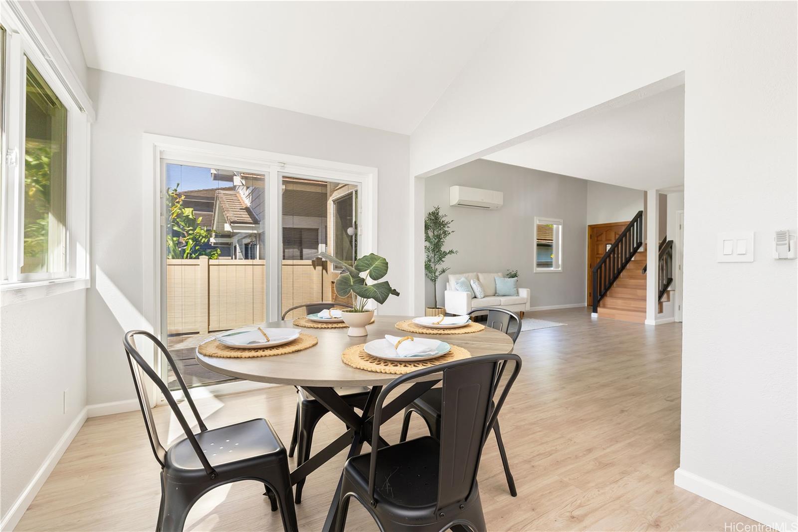 Thoughtfully updated 3-bedroom, 2-bath CPR single-family home that is truly worth seeing. This solid well-maintained Ke Kumulani home features updated kitchen and bathrooms, double-paned Pella windows and patio door, newer roof, natural gas, and electrical and plumbing updates. Finished vaulted ceiling helps keep the home cool along with split AC and ceiling fan. The functional floor plan includes a bedroom with walk-in cedar lined closet and bathroom on the main level offering flexibility for guest, extended household needs or a home office with additional bedrooms upstairs. A 198 sq ft addition provides extra living space. Full 2-car enclosed garage and wide driveway can fit 3 additional cars. Enjoy the Newtown Recreation Center and Pool. Contact your agent to schedule a showing or come to our Open House Sunday, March 8, 2026, 2-5pm. Note: one or more photos may have been enhanced.