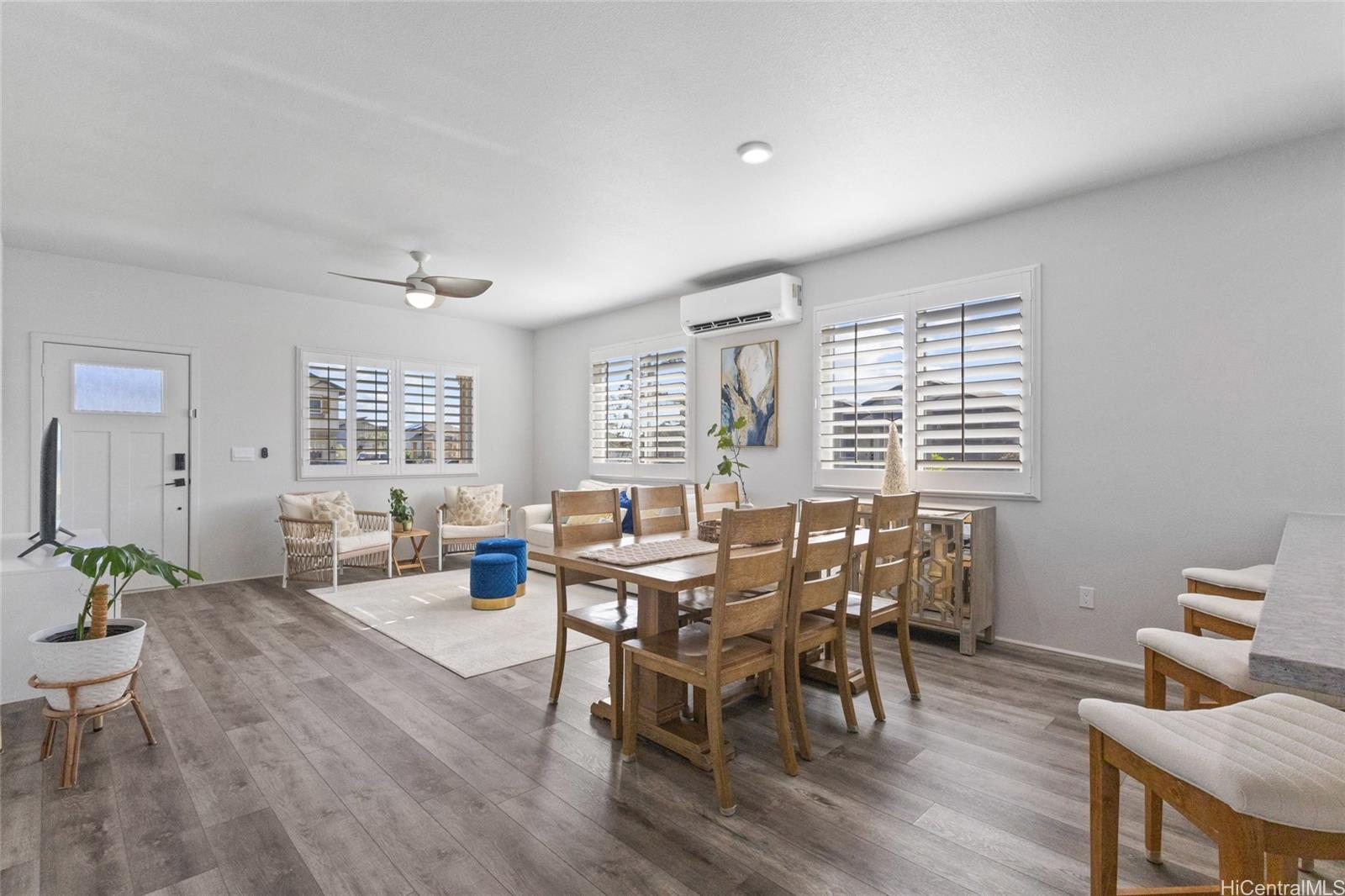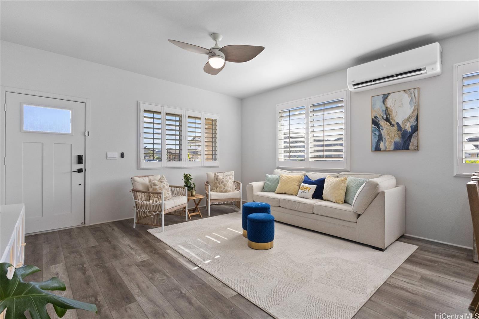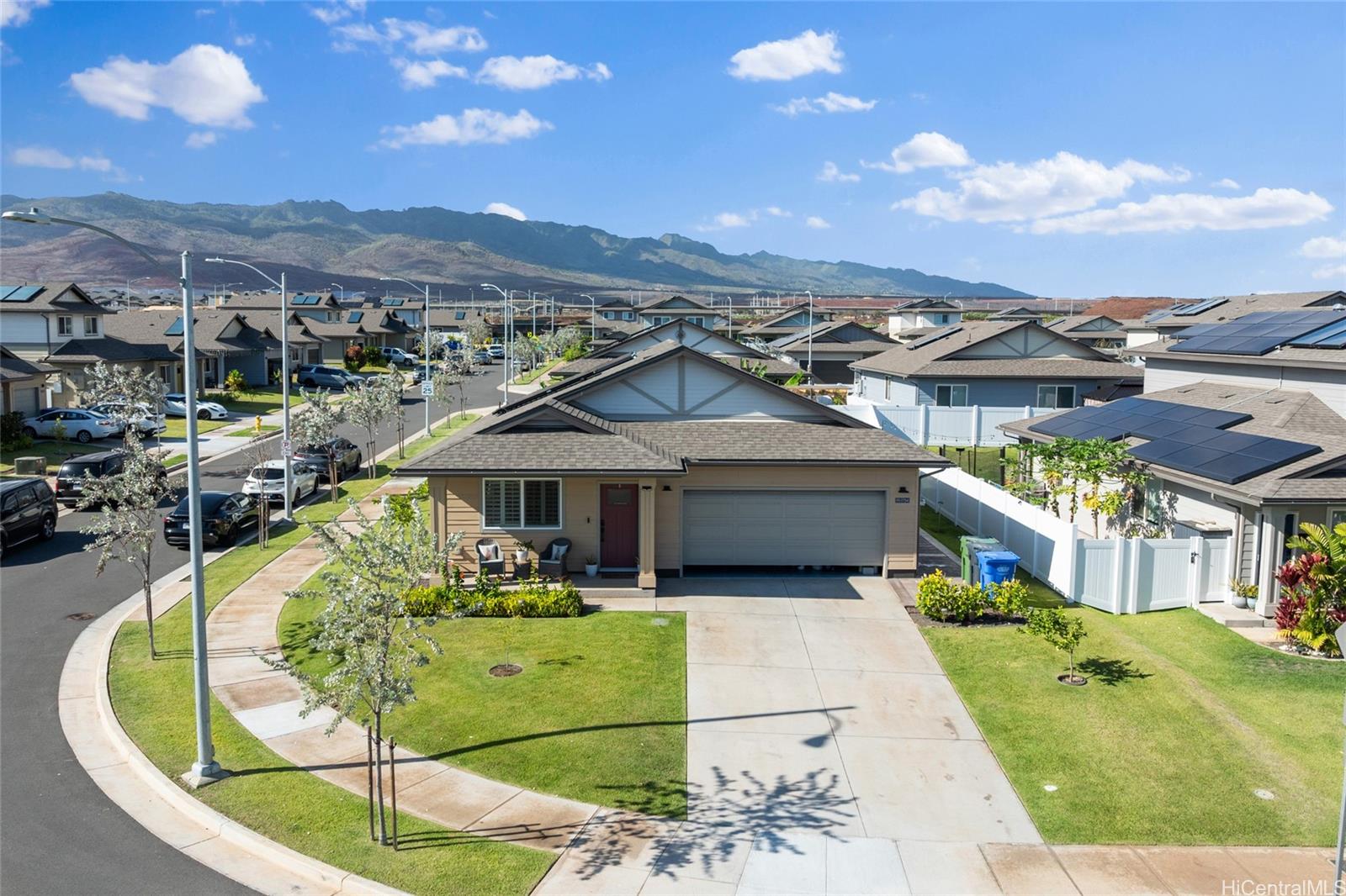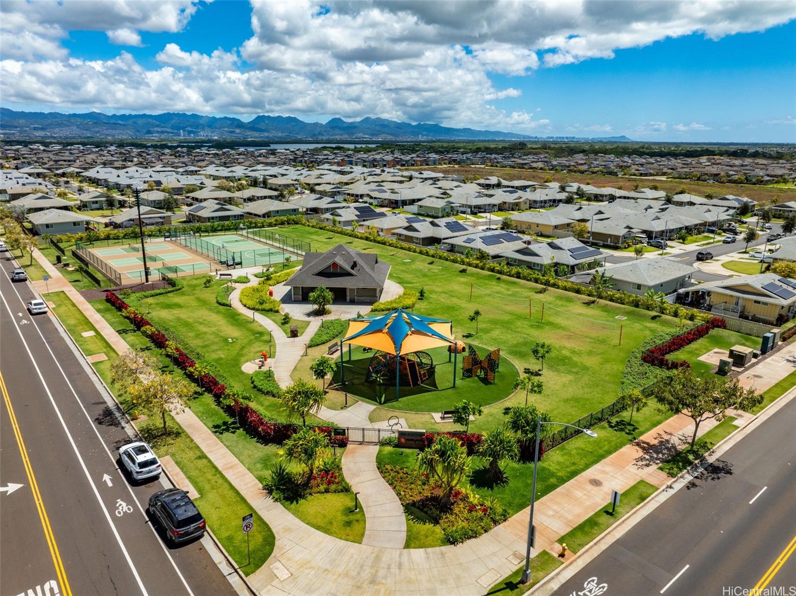 The epitome of luxury is found at this highly upgraded single family home residence that showcases true pride of ownership. Meticulously maintained and situated on a coveted spacious corner lot, the impeccably landscaped grounds and concrete slab additions create stunning curb appeal. Step inside to an open floor plan that features vinyl plank flooring in the main living area, plantation shutters throughout, split A/C units in every room, owned photovoltaic panels, and a modern kitchen with quartz counter tops, stainless steel appliances, and subway tile backsplash. You’ll love entertaining on your outdoor patio deck complete with a gazebo, perfect for the ultimate cookout or family gathering. You can also enjoy your morning coffee or relaxing in the evening on your welcoming front porch and don’t forget about your extended driveway that can accommodate multiple vehicles and two car garage. Plus, enjoy all of that Hoopili has to offer including multiple parks and playgrounds, community pool, recreational courts, and more. What more can you want? This home truly has it all!