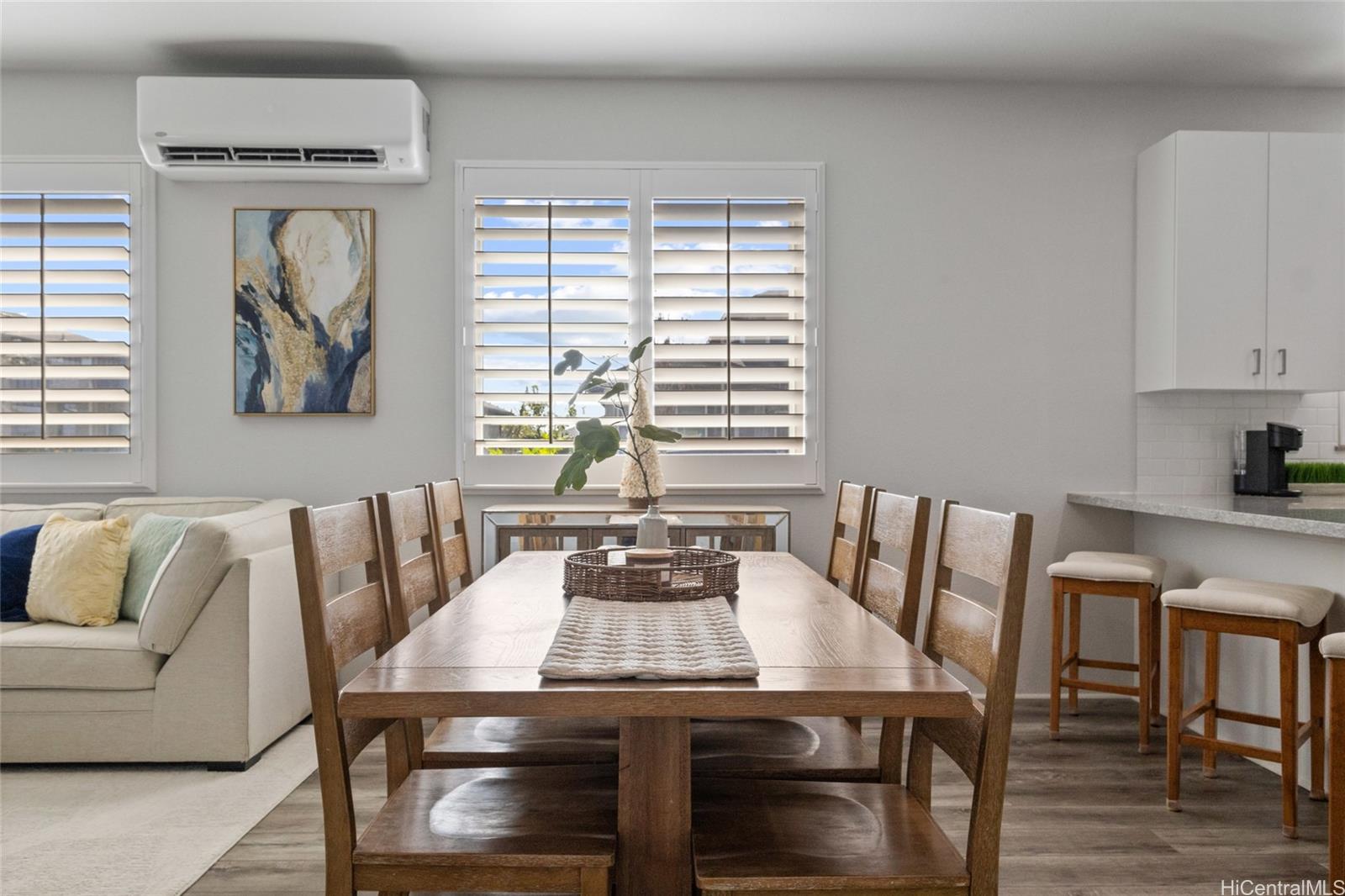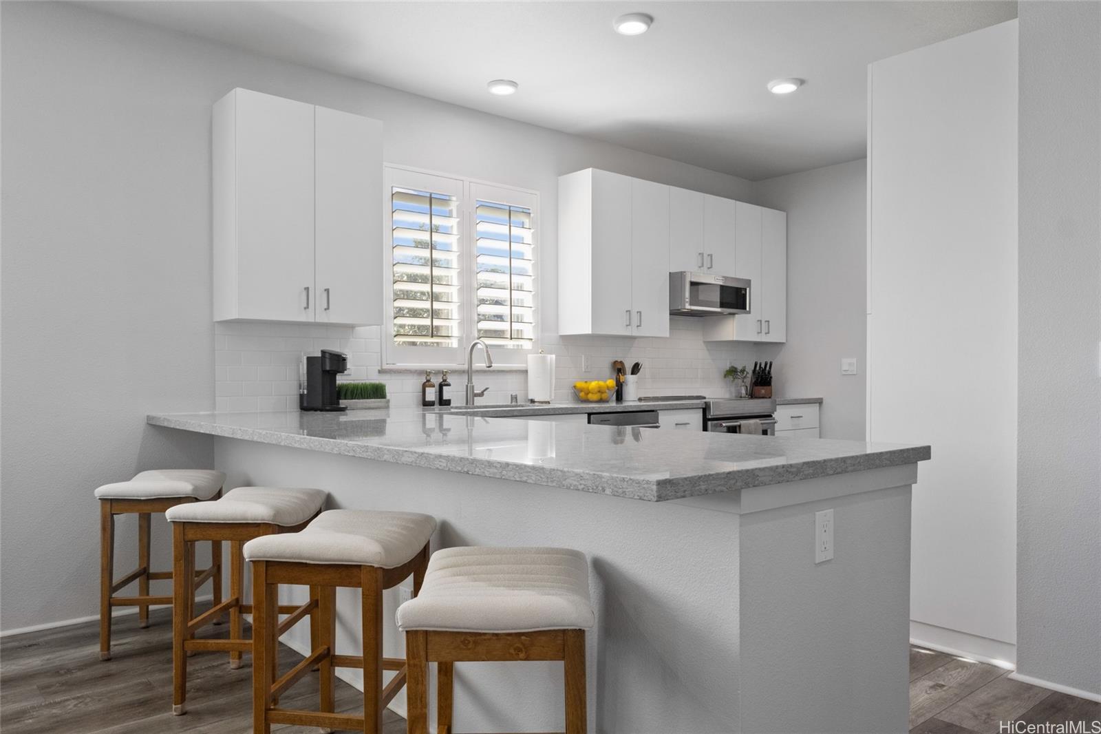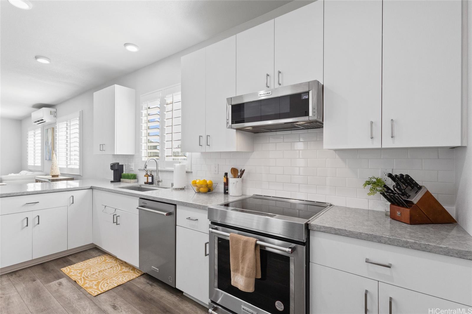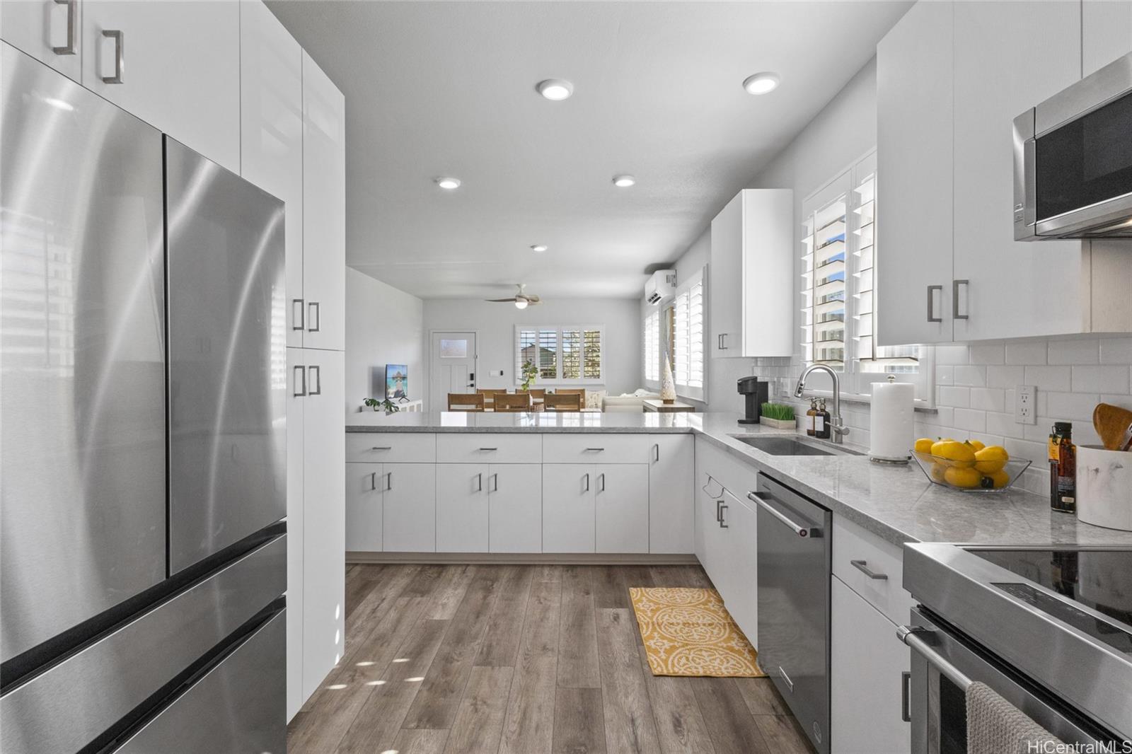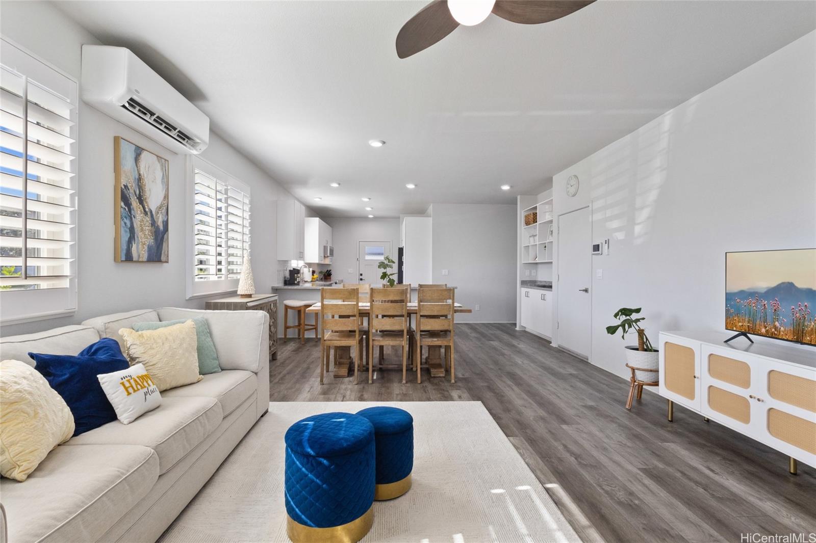 The epitome of luxury is found at this highly upgraded single family home residence that showcases true pride of ownership. Meticulously maintained and situated on a coveted spacious corner lot, the impeccably landscaped grounds and concrete slab additions create stunning curb appeal. Step inside to an open floor plan that features vinyl plank flooring in the main living area, plantation shutters throughout, split A/C units in every room, owned photovoltaic panels, and a modern kitchen with quartz counter tops, stainless steel appliances, and subway tile backsplash. You’ll love entertaining on your outdoor patio deck complete with a gazebo, perfect for the ultimate cookout or family gathering. You can also enjoy your morning coffee or relaxing in the evening on your welcoming front porch and don’t forget about your extended driveway that can accommodate multiple vehicles and two car garage. Plus, enjoy all of that Hoopili has to offer including multiple parks and playgrounds, community pool, recreational courts, and more. What more can you want? This home truly has it all!