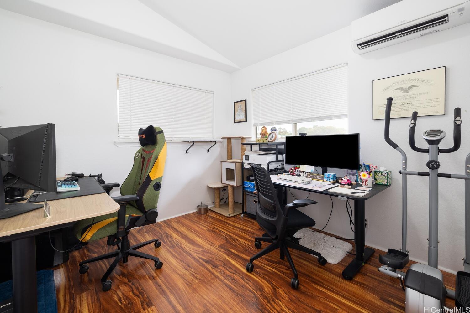 Welcome to Royal Pines at Waikele, where comfort, convenience, and pride of ownership come together in this beautifully maintained single-family home. Featuring 3 bedrooms and 2.5 bathrooms, this residence offers numerous improvements and upgrades. New electrical panel; updated light switches and most outlets; installed split AC units (downstairs, primary bedroom, and office); AC unit in the guest bedroom; resurfaced both bathtubs; renovated staircase; installed ceiling fans and new light fixtures throughout; new blinds installed upstairs. New washer and dryer, refrigerator, oven, microwave, and dishwasher. Exterior and additional improvements include a new garage door opener with keypad, new irrigation system valves, trimmed front yard trees and a backyard mango tree, expanded patio area, and a rebuilt retaining wall. Outside, enjoy lush landscaping and blooming fruit trees that create a tranquil island setting. Complete with a spacious garage and ample street parking for guests, this home is ideally located near freeway access, Waikele Golf Club, Waikele Premium Outlets, dining, and shopping. An exceptional opportunity to own in one of Waikele’s most sought-after neighborhoods.
