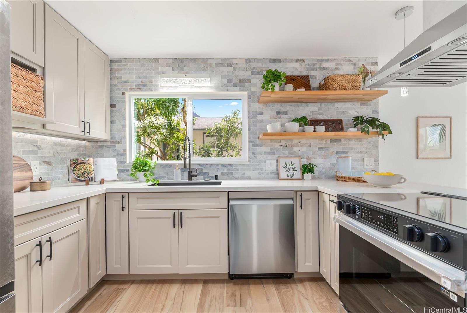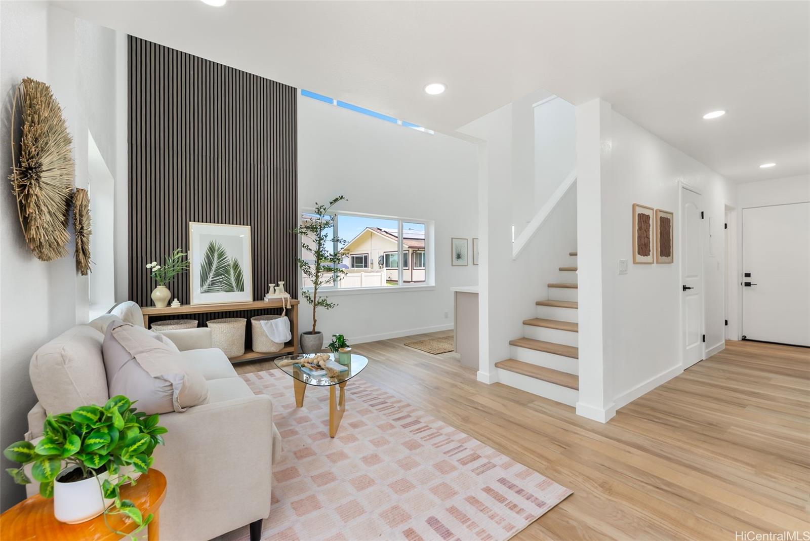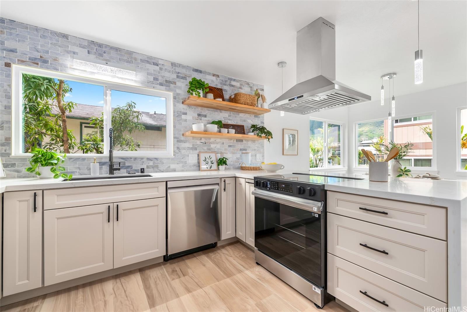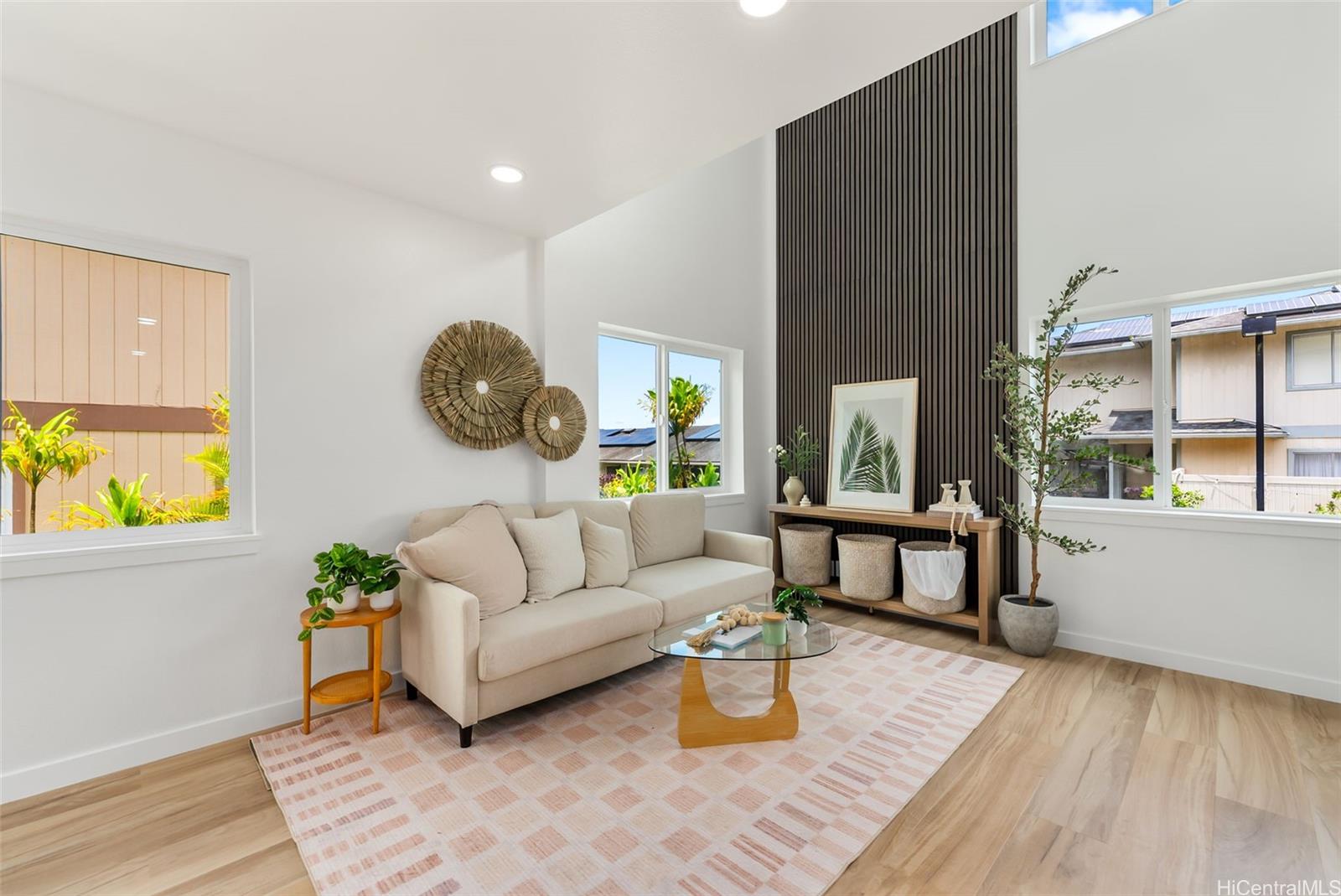 Sweeping views of the Koolau Mountain range create a stunning backdrop for this beautifully renovated 3-bedroom, 2½-bath home in the Keapuka neighborhood. Tucked within Kamooalii III Cluster, a gated community of just 22 homes built in 1990, this residence offers a rare sense of privacy, peace and elevated island living.Extensive upgrades include new vinyl plank flooring, a fully reimagined kitchen and bathrooms with elegant quartz countertops, new appliances, updated windows, ceiling fans, modern lighting and fresh paint throughout.Move-in ready and thoughtfully updated, this home invites you to relax and unwind in comfort while enjoying the tranquility and beauty of Kaneohe.