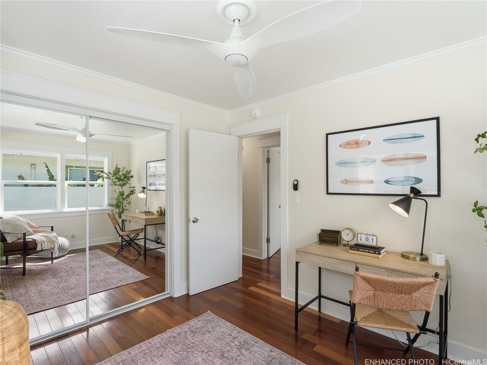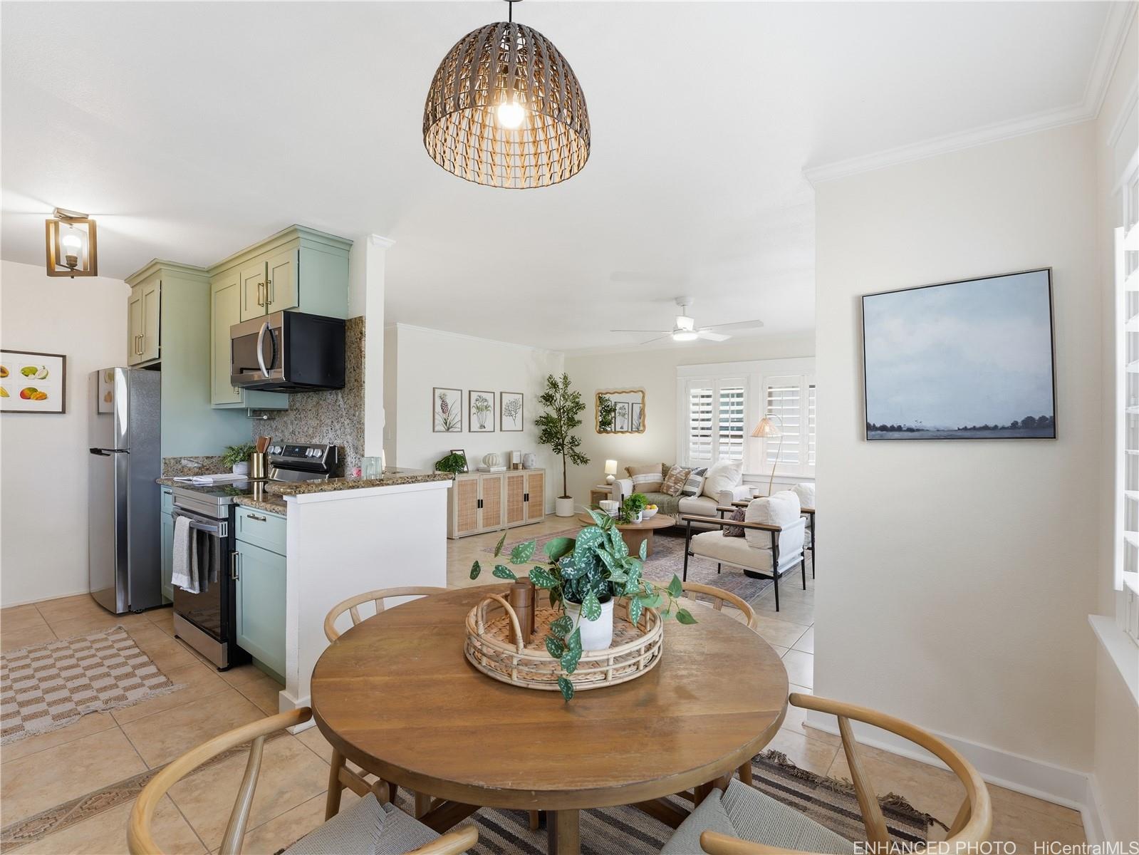 ココナッツ・グローブにある、即入居可能な住宅が、驚きの価格1,175,000ドルで登場!この3ベッドルーム、2バスルームの一戸建て住宅は、ハードウッドフローリングやセラミックタイルの床、花崗岩のキッチンカウンター、モダンな金具を備えたセージ色のシェーカースタイルのキャビネット、ステンレス製の家電製品など、随所にスタイリッシュな改装が施されています。 自然光がたっぷりと差し込み、明るく居心地の良い空間。プランテーションシャッターが窓を彩り、洗面台や照明も新しく生まれ変わっています。 主寝室とバスルームには、裏庭へと続く独立した入り口があり、プライバシーを確保したい場合や、柔軟なライフスタイルを実現したい場合に最適です。 新しい屋根(2024年施工)と塗り替えられた外壁で、安心してお過ごしください。 新しい白いビニールフェンスで完全に囲まれた庭には、手入れの行き届いた芝生が広がり、屋内と屋外を行き来するライフスタイルに最適です。 洗濯室と収納スペースを兼ね備えたカーポートは、利便性を高めます。 ウェストウッド・コミュニティ・アソシエーション内の12戸限定のコミュニティで、専用プールを独占的にご利用いただけます。 月額354ドル。 26には水道・下水道が含まれます。 カイルアの世界的に有名なビーチやレストラン、ショッピングエリア、ターゲット、ホールフーズなどにほど近い好立地です。 (写真は加工されています)。 .