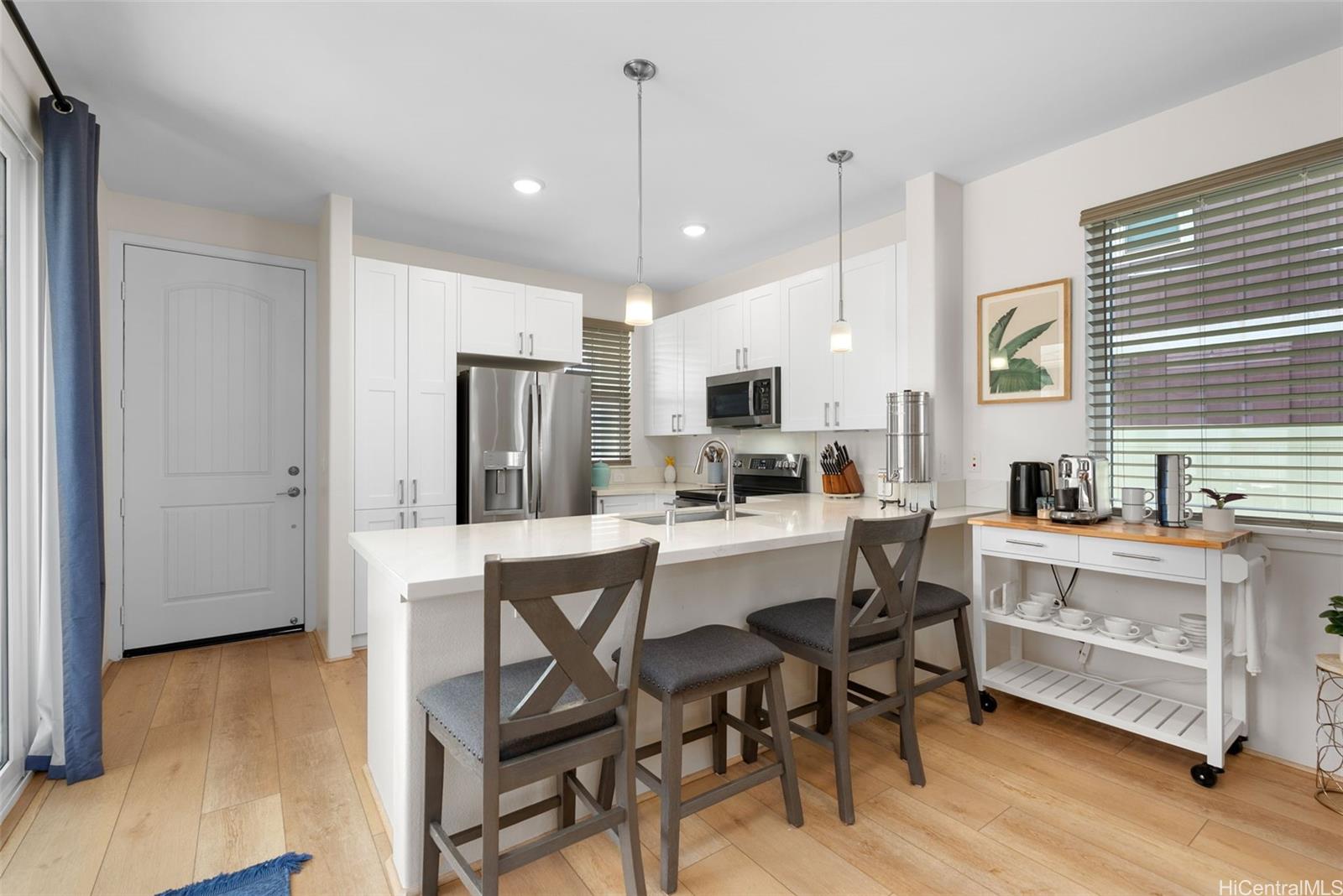 NEW LISTING!! Enjoy the modern comfort and convenience offered by this beautifully maintained 3 bdrm/2.5 bath single-family home located in the desirable Waioha II at Koa Ridge community. Built in 2024, the home features an open floor plan, stainless steel appliances, HI-MACS solid surface countertops, luxury vinyl plank flooring, and carpet for a blend of style and comfort. Enjoy energy efficiency with an owned PV system paired with a Tesla Powerwall, along with split ACs throughout for year-round comfort. Conveniently situated near Costco, parks, and freeway access, this well-appointed home offers an excellent opportunity to enjoy contemporary island living in a prime location.