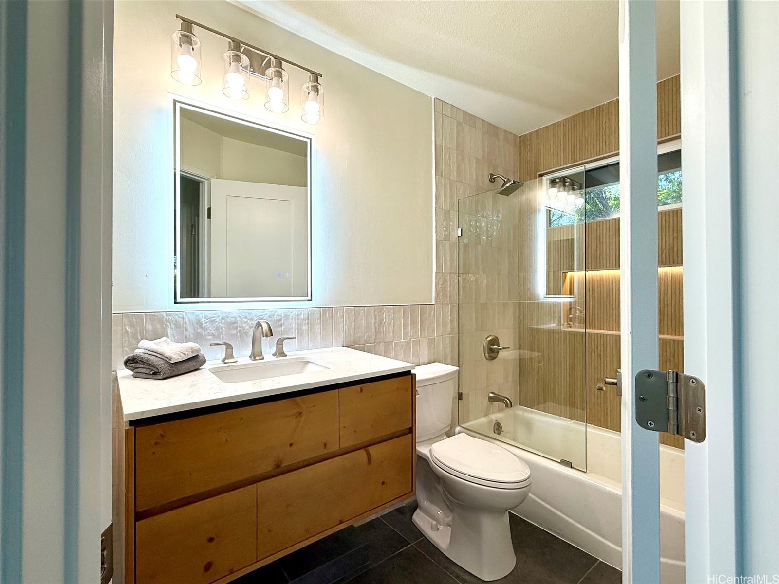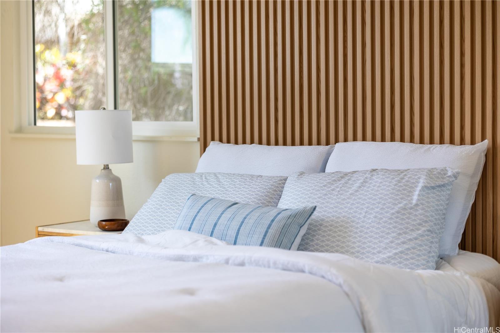 This fully renovated Makakilo home combines modern luxury with island comfort. Thoughtfully updated from top to bottom, it features all-new windows built for Hawaii’s climate, luxury vinyl flooring, fresh exterior paint, and a new roof. The high-end kitchen offers custom cabinetry, new appliances, a waterfall island with pop-up outlet, and elegant lighting. Spa-inspired bathrooms include lighted mirrors and illuminated shampoo niches. Enjoy a touch of ocean and Diamond Head views from the front, plus cooling tradewinds year-round from this hillside location. Each room has its own new split AC system for comfort. The private backyard and covered patio are perfect for barbecues and outdoor gatherings. Conveniently close to Ka Makana Ali‘i, Costco, UH West O‘ahu, and Queen’s West.