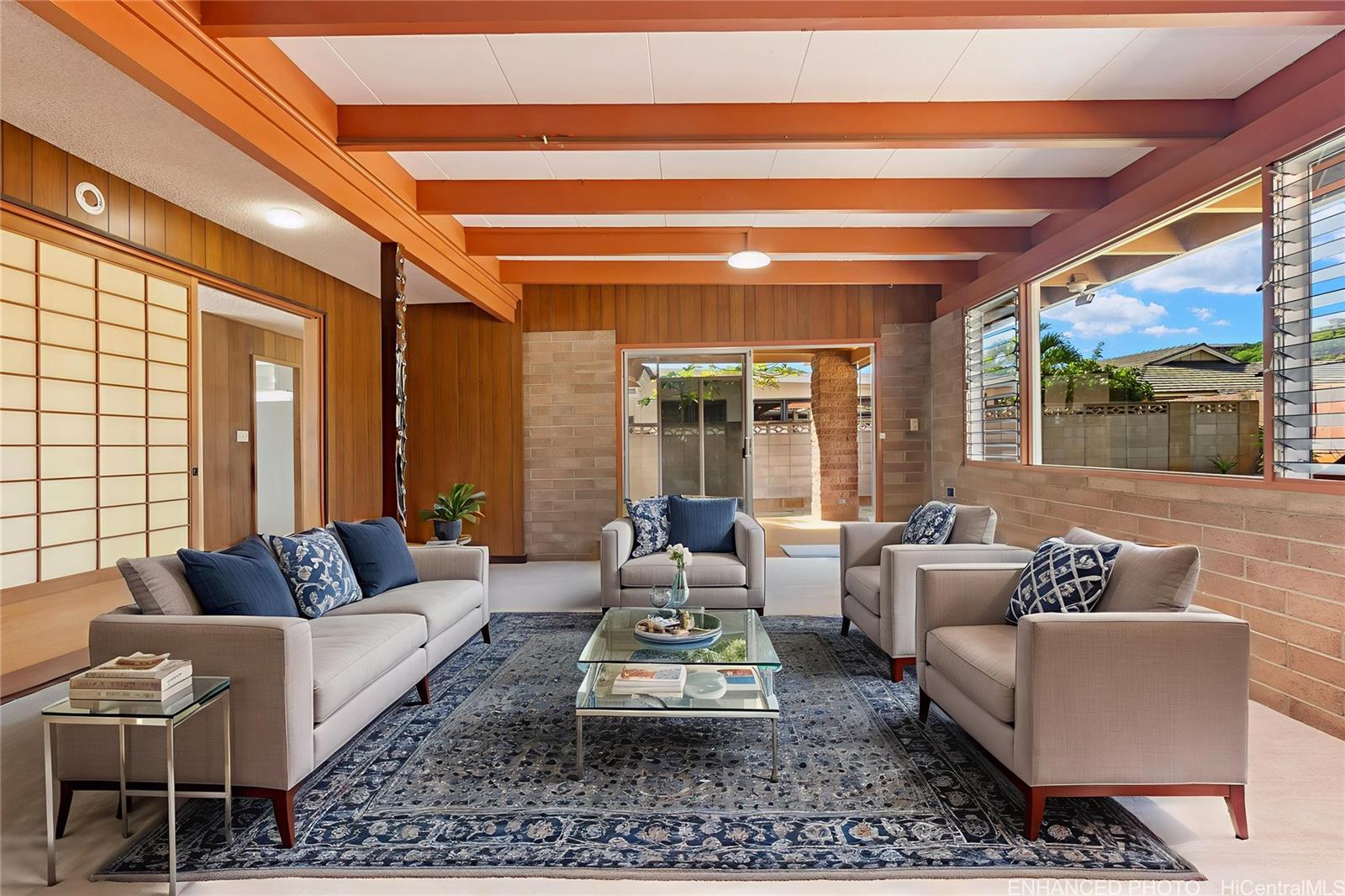 Rarely available and highly sought after single level home on a level lot in Salt Lake. Move-in ready, well maintained, and recently renovated, this 3 bedroom, 2 bathroom home features an attached two car carport with multiple storage closets. The renovated kitchen offers new appliances, updated cabinets, and quartz countertops. Both bathrooms have been refreshed with new vanities, lighting, and hardware. Additional improvements include new carpet and vinyl flooring throughout, fresh exterior and interior paint, and a tile roof that has recently been coated for a clean, updated look. Enjoy the private patio that opens to a fully fenced yard, ideal for entertaining, playtime, or pets. There is also a new in house washer and dryer. Salt Lake is conveniently located near Honolulu International Airport, freeway on and off ramps, and a wide variety of shopping and dining options including Pearlridge Center and the NEX. A true gem in a desirable location, ready for its next owners to call home. One or more photos have been enhanced.