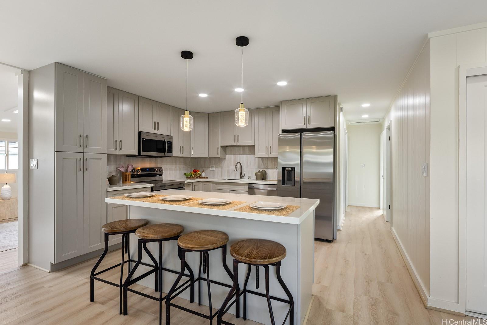 静かなポハクプ地区、カイルア地区にある新装済みの平屋住宅。 この魅力的な3ベッドルーム・1バスルームの住宅は、モダンな要素を取り入れたオープンコンセプトが特徴です:美しいキッチンには新しいキャビネット、クォーツカウンター、アイランド、そして新しいステンレス製キッチン家電が備わっています。全室に高級ビニールプランク床材を敷き詰め、新しいバスルーム、新しい二重ガラス窓、新しい二重ガラス引き戸、新しい洗濯機と乾燥機、内外の新塗装などが施されています。 広々とした7,520平方フィートの敷地に位置する フィート 平坦な土地に位置するこの即入居可能な住宅は、将来の拡張に際して並外れた可能性を秘めています。 カイルア・タウンまで数分という便利な立地で、数多くのショップやレストラン、有名なカイルア・ビーチやラニカイ・ビーチ、ハイキングコースなどが揃っています。まさにハワイアンなライフスタイルを楽しむ理想的な場所です!