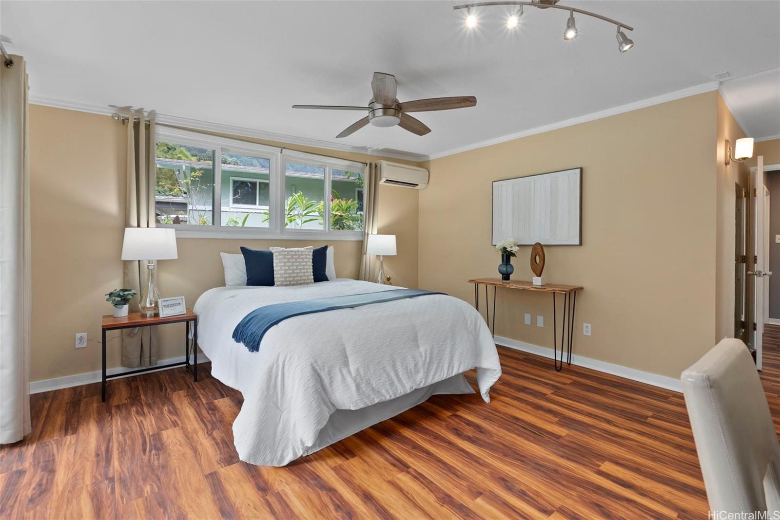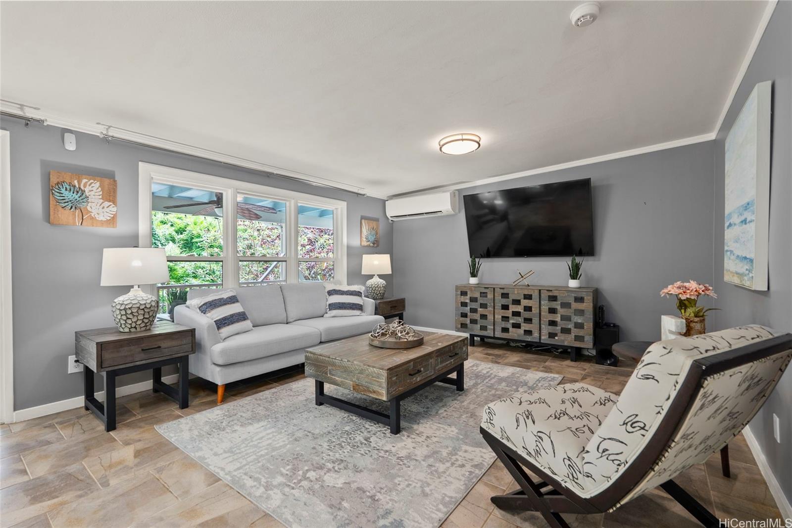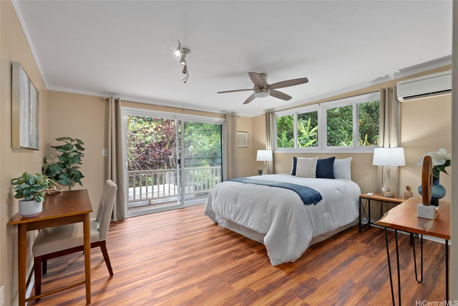 静かな袋小路の奥にひっそりと佇み、豊かな自然に囲まれたこの一戸建ての平屋は、3ベッドルーム、2バスルームを備え、アヒマヌのクーラウ山脈の麓に位置する、まさに島ならではのオアシスです。 敷地のすぐそばを流れる穏やかな小川が、この場所の静かな雰囲気をさらに引き立て、帰ってくるのが楽しみになるような、静かで人目につかない隠れ家のような空間を作り出しています。 中へお入りください。快適な暮らしと気楽なおもてなしを叶える、広々としたオープンな間取りが待っています。 全面改装されたキッチンには、花崗岩のカウンタートップ、新しいキャビネット、ステンレス製の家電が備わっています。また、2つのバスルームはいずれもモダンな内装と広々としたウォークインシャワーを備え、上品に改装されています。 リビングルームと主寝室はどちらも、緑豊かな木立に囲まれた裏庭を見渡せる広々とした屋根付きラナイへとつながっています。ここは、くつろいだり、友人や家族と集まったりするのに最適な、あなただけのプライベートな安らぎの空間です。 プール、ジャグジー、そしてオープンエアの屋外シャワーを備えた、この静かな裏庭の隠れ家で、屋内と屋外を融合させた島ならではの暮らしを存分にお楽しみください。 さらに魅力を添えるのは、地上式プールやジャグジー、10種類以上の果樹が植えられており、まるで自分だけのトロピカルリゾートにいるような気分を味わえる点です。 .