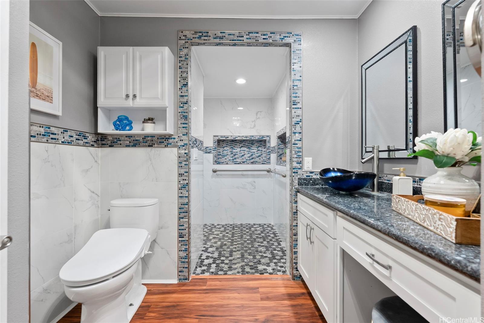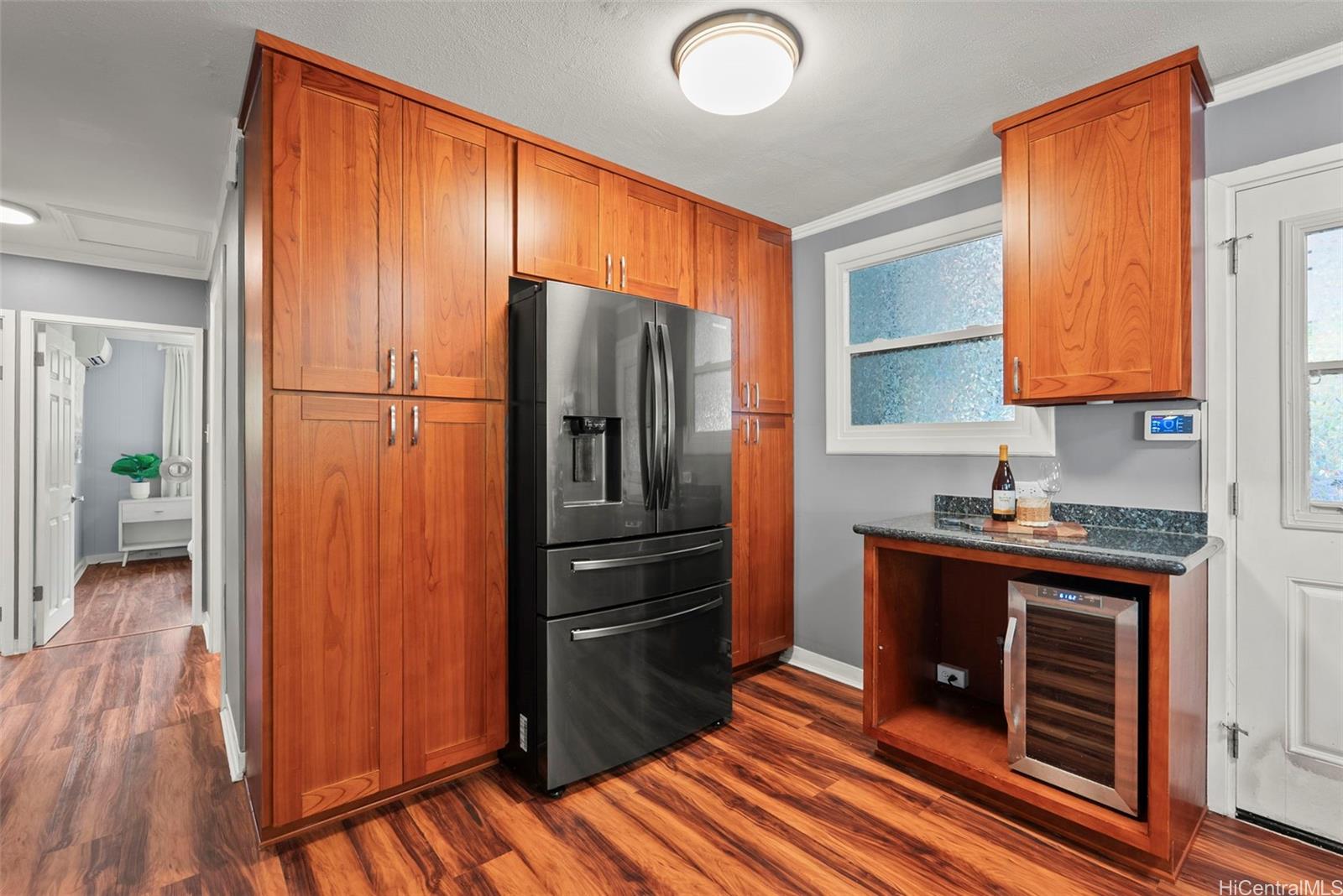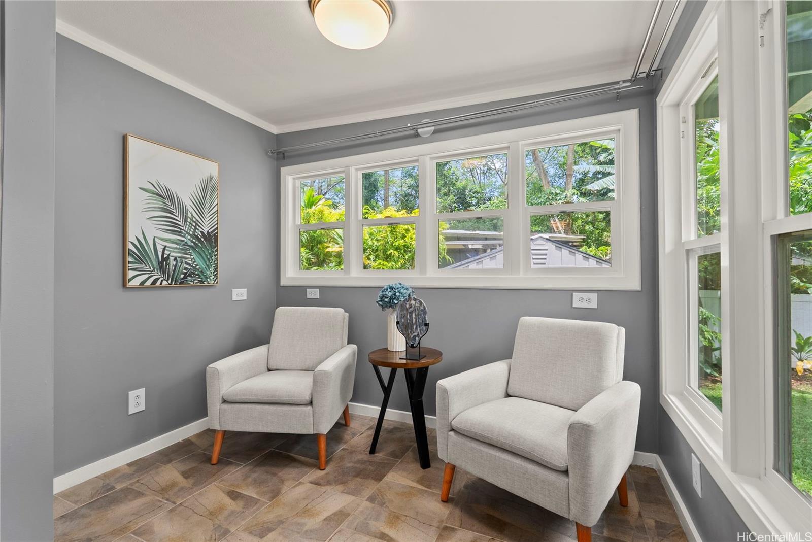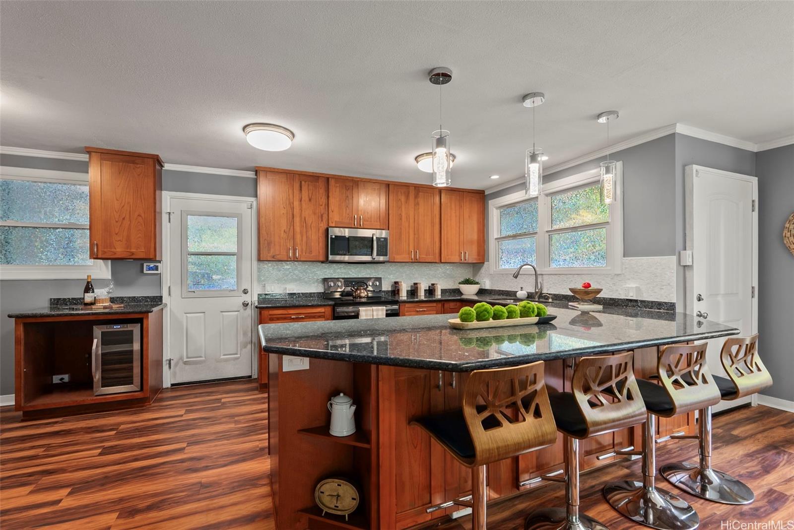 静かな袋小路の奥にひっそりと佇み、豊かな自然に囲まれたこの一戸建ての平屋は、3ベッドルーム、2バスルームを備え、アヒマヌのクーラウ山脈の麓に位置する、まさに島ならではのオアシスです。 敷地のすぐそばを流れる穏やかな小川が、この場所の静かな雰囲気をさらに引き立て、帰ってくるのが楽しみになるような、静かで人目につかない隠れ家のような空間を作り出しています。 中へお入りください。快適な暮らしと気楽なおもてなしを叶える、広々としたオープンな間取りが待っています。 全面改装されたキッチンには、花崗岩のカウンタートップ、新しいキャビネット、ステンレス製の家電が備わっています。また、2つのバスルームはいずれもモダンな内装と広々としたウォークインシャワーを備え、上品に改装されています。 リビングルームと主寝室はどちらも、緑豊かな木立に囲まれた裏庭を見渡せる広々とした屋根付きラナイへとつながっています。ここは、くつろいだり、友人や家族と集まったりするのに最適な、あなただけのプライベートな安らぎの空間です。 プール、ジャグジー、そしてオープンエアの屋外シャワーを備えた、この静かな裏庭の隠れ家で、屋内と屋外を融合させた島ならではの暮らしを存分にお楽しみください。 さらに魅力を添えるのは、地上式プールやジャグジー、10種類以上の果樹が植えられており、まるで自分だけのトロピカルリゾートにいるような気分を味わえる点です。 .