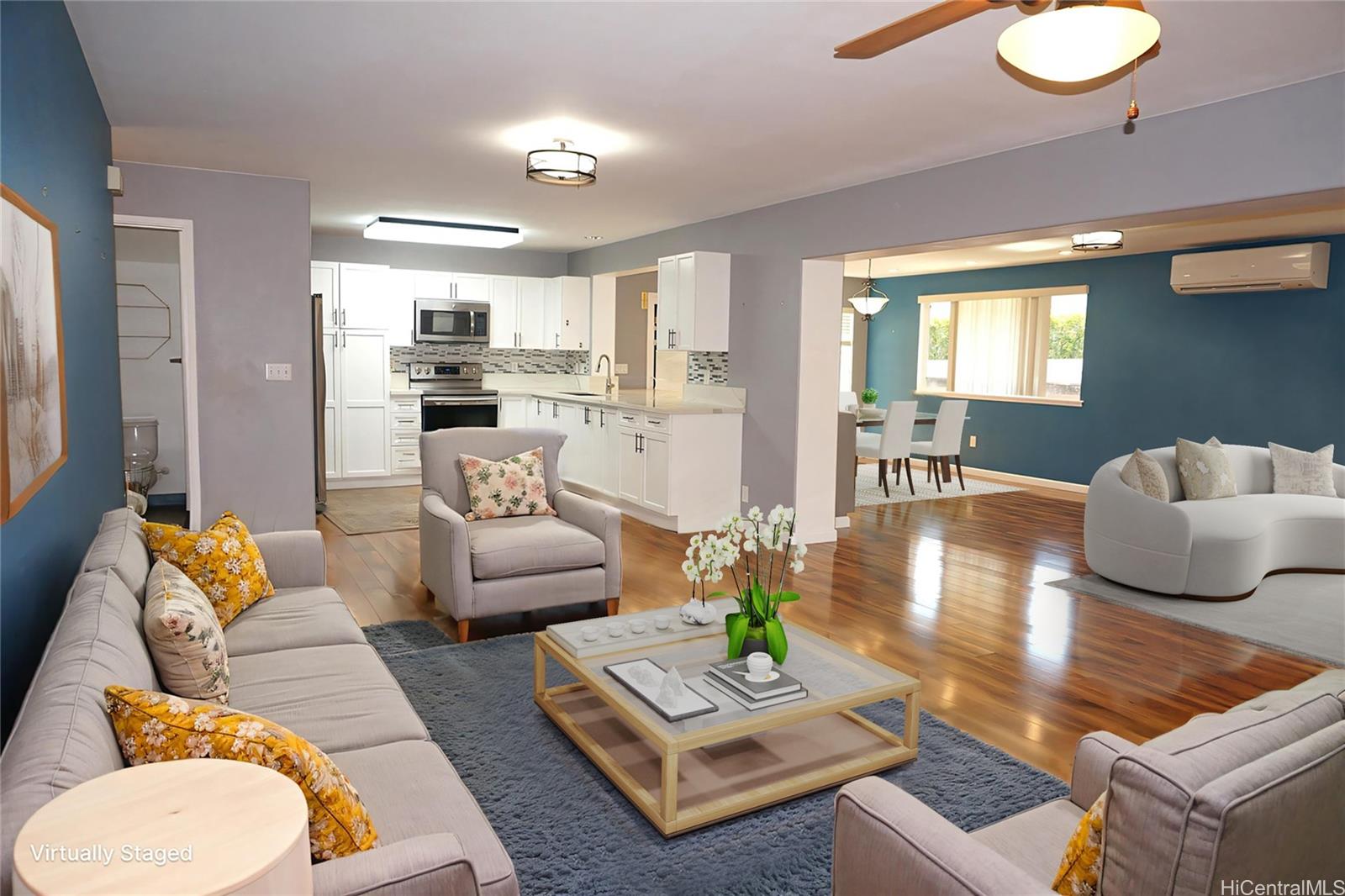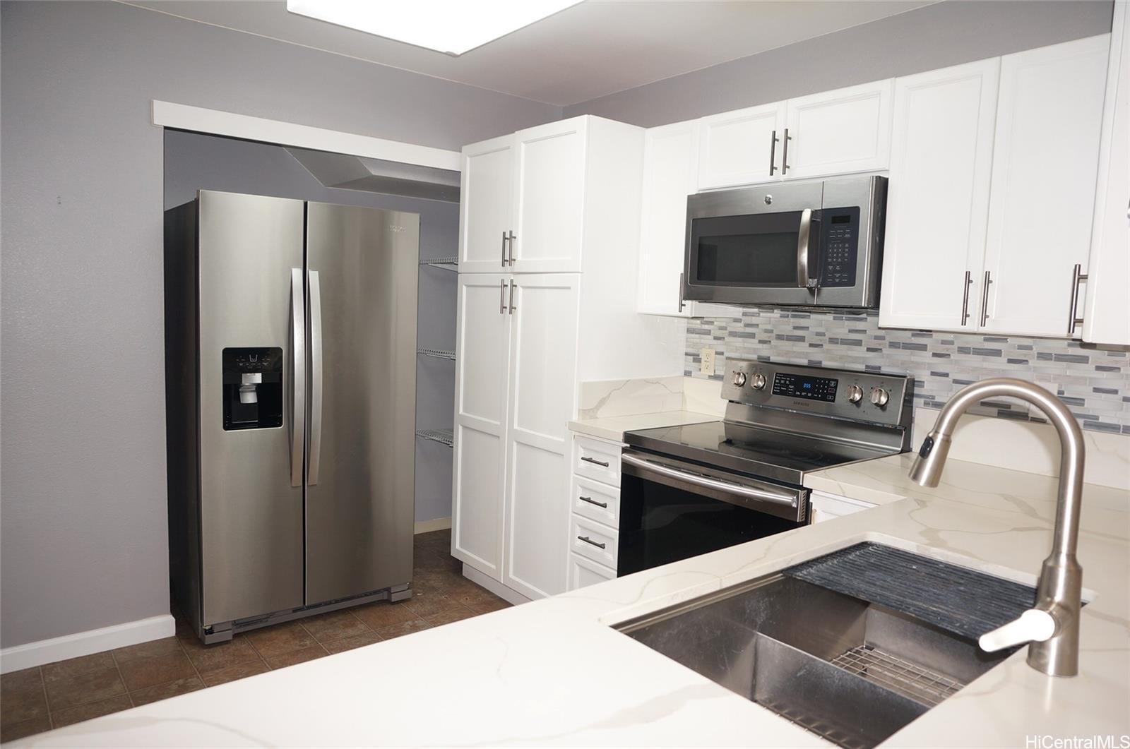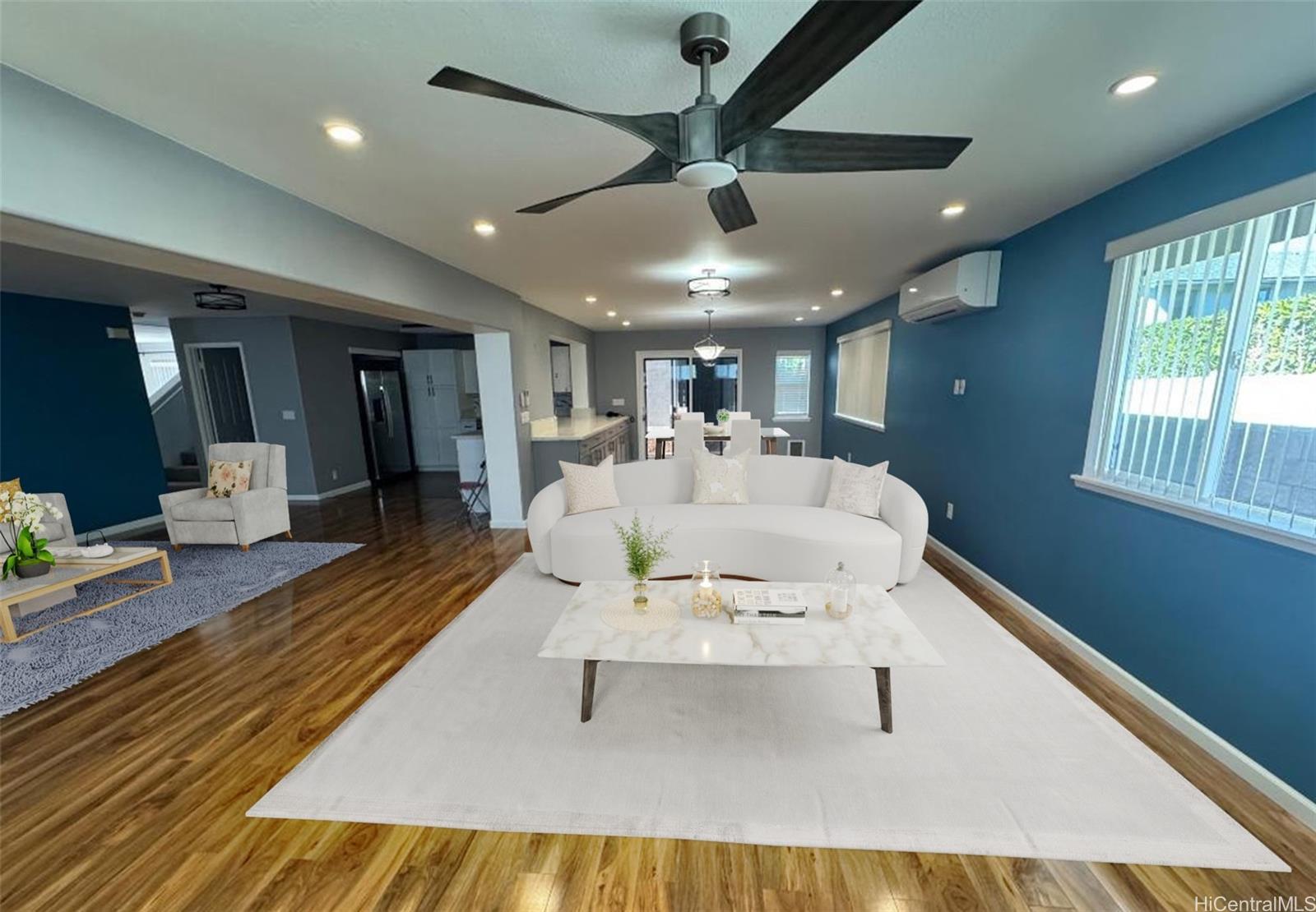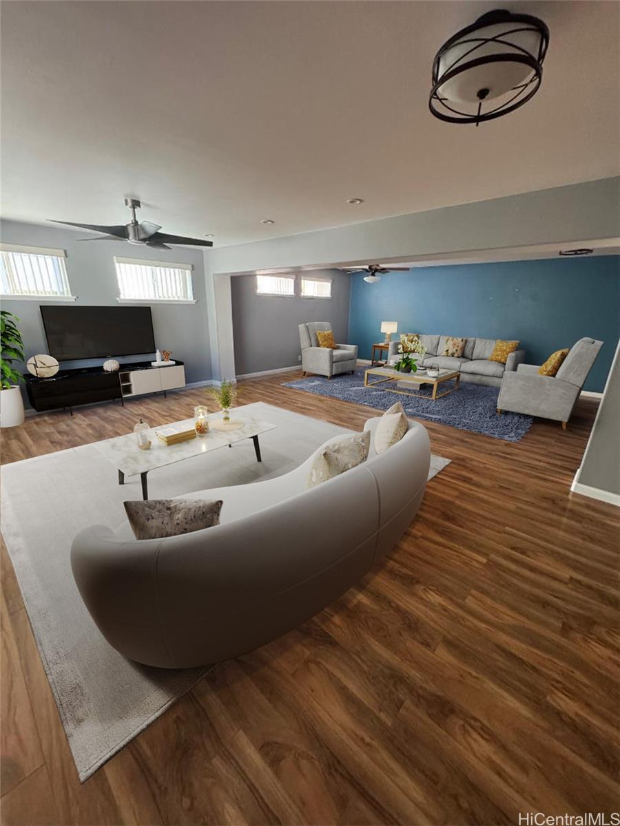 Price improvement, amazing opportunity in Mililani Mauka! Enjoy this prime, well-kept home in a cul-de-sac Large 3 bedroom, 2.5 bath single family home with a finished 2-car garage. Over 2,200 sq ft of interior, this home has two living rooms (extra large), dining area, and a loft area upstairs. New roof, home extension, and all new air conditioning installed in 2019. Large primary bedroom with a walk-in closet and double sinks in the en-suite bathroom. Recessed lighting adds to the comfort and style, and no popcorn ceilings. Original owner. The thoughtfully renovated kitchen offers tons of storage space, stainless steel appliances, and an impressively large quartz countertop, which overlooks and connects the kitchen to a possible dining room (which has even more storage cabinets). Perfect for entertaining and parties. 20 owned PV solar panels and a Tesla backup battery installed in 2019. Functional landscaping and a fully fenced backyard. There are 7 recreation centers in Mililani (Mililani residents only), shopping mall, Costco, and restaurants. Mililani is a central point to all of Oahu. Must-see home, you will not be disappointed. EZ TO SEE
