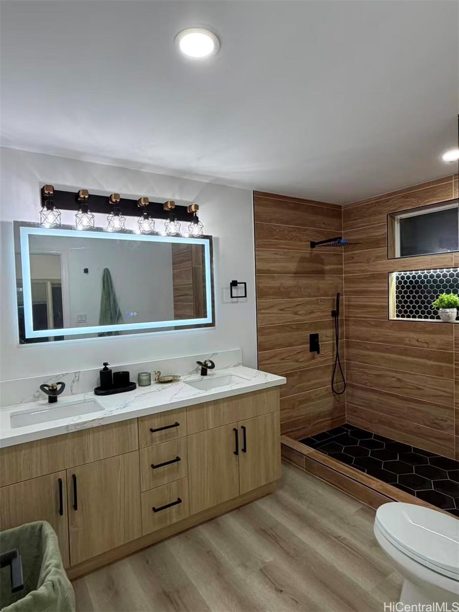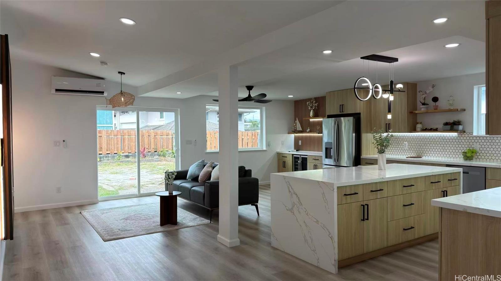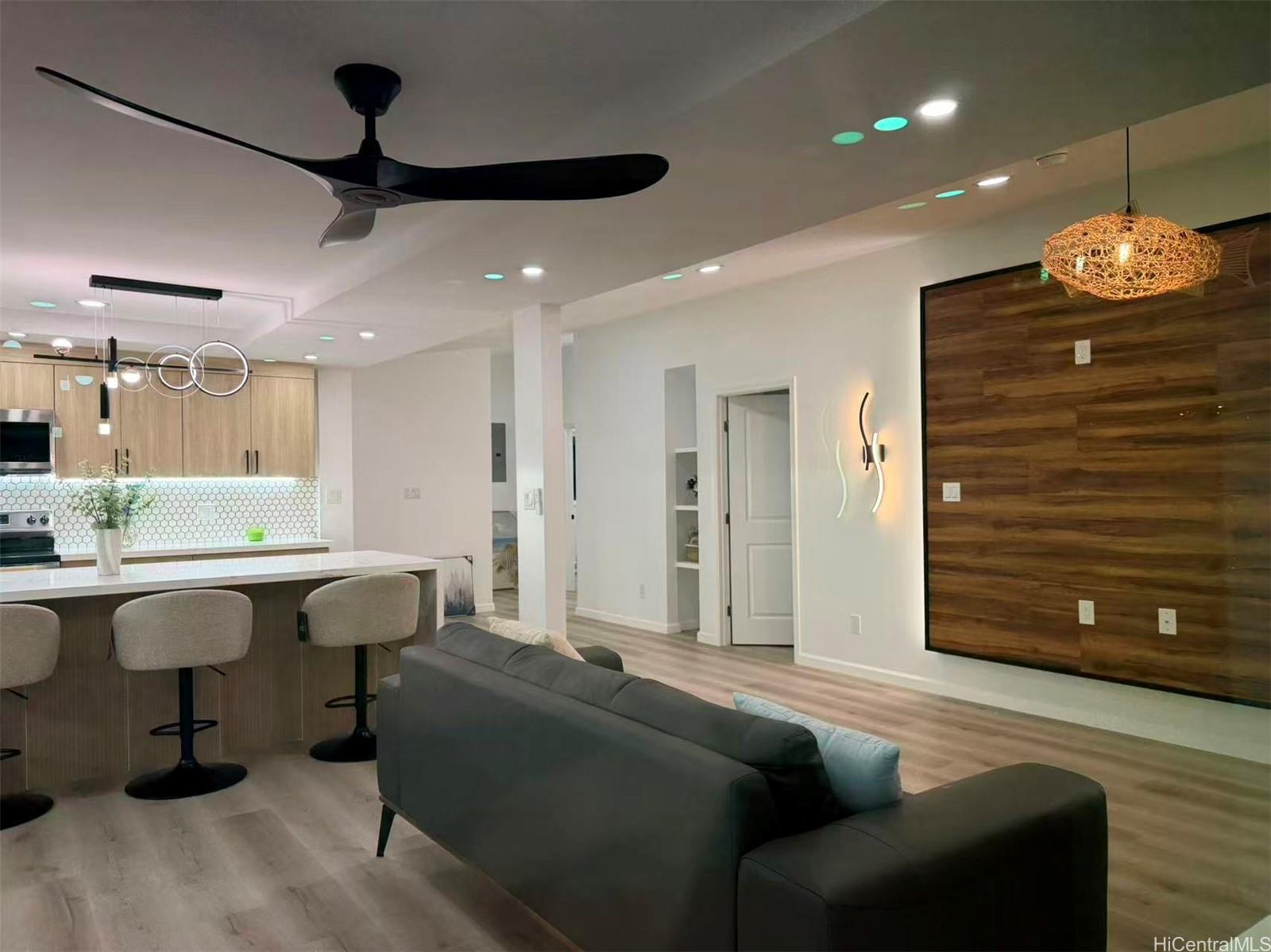 この最近改装された一戸建て住宅は、静かな住宅街に位置し、モダンで入居準備万端の生活環境を提供しています。 随所に施された配慮が行き届いた改修により、スタイルと機能性の両方が向上し、実用的な間取りと豊かな自然光がそれを引き立てています。 広々とした庭は、アウトドアライフや接待に最適な空間を提供します。 ウィンドワード・シティ・ショッピングセンター、飲食店、学校、主要道路に便利な立地です。 税務記録によれば、居住面積は948平方フィートである。 囲い付きのラナイにより約360平方フィートが追加され、総使用可能面積は約1,308平方フィートとなります。 この家は現在の所有者によって最近改装されました。 買い手および買い手側代理人は、すべての情報を確認すること。 .