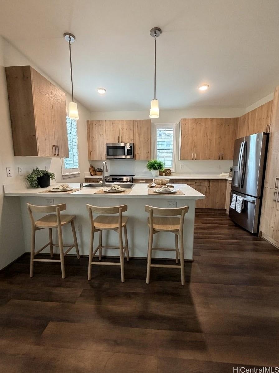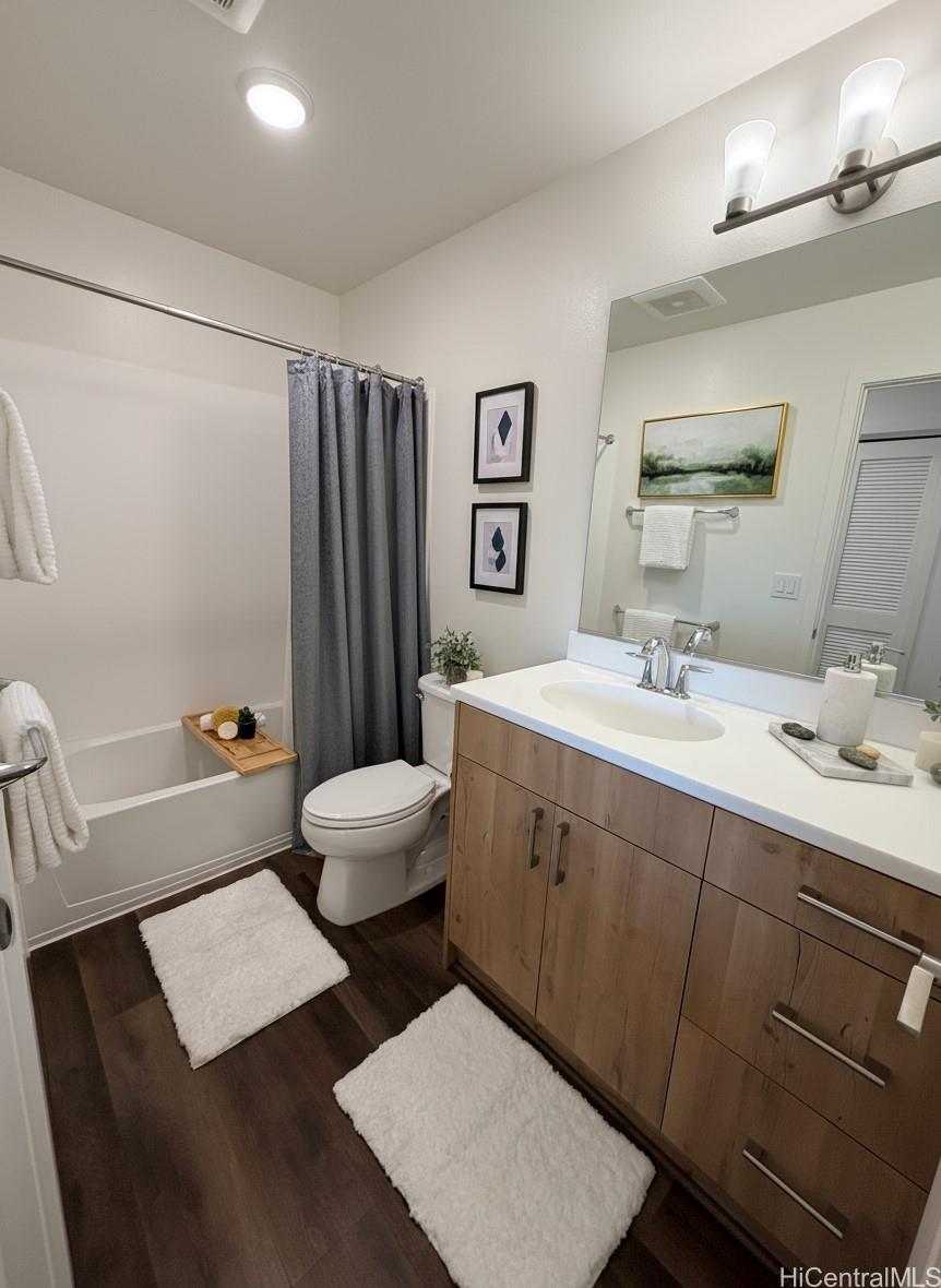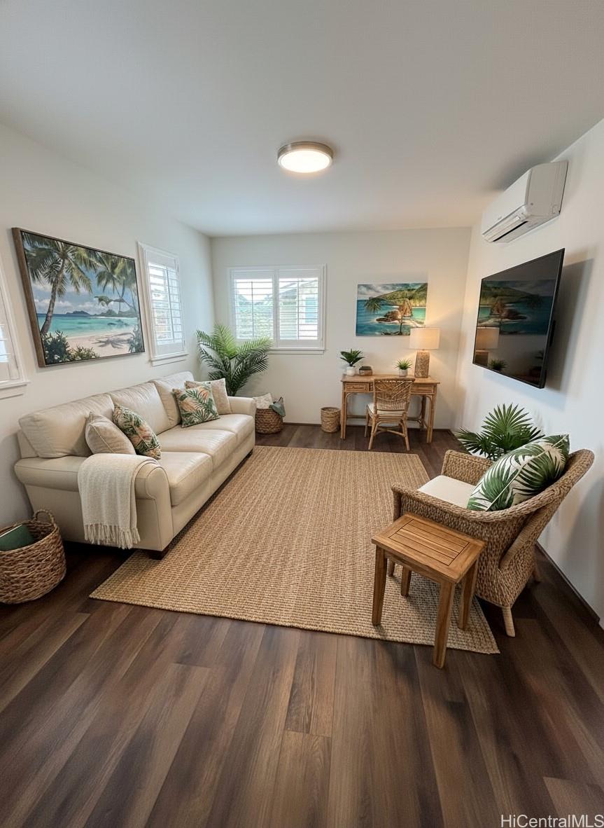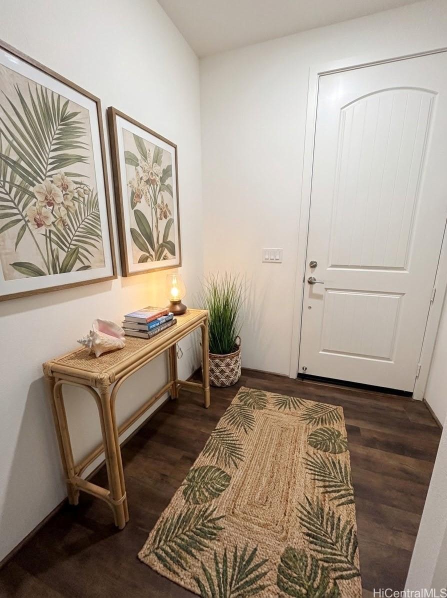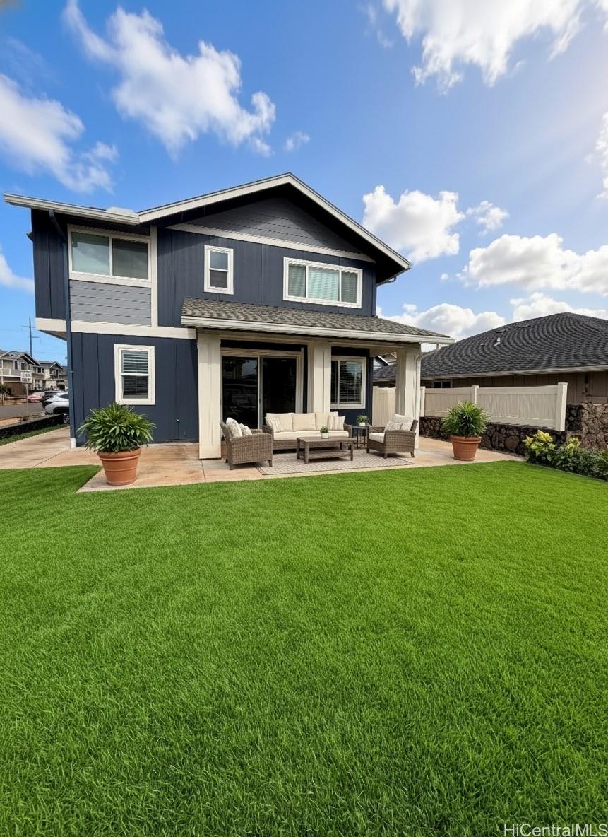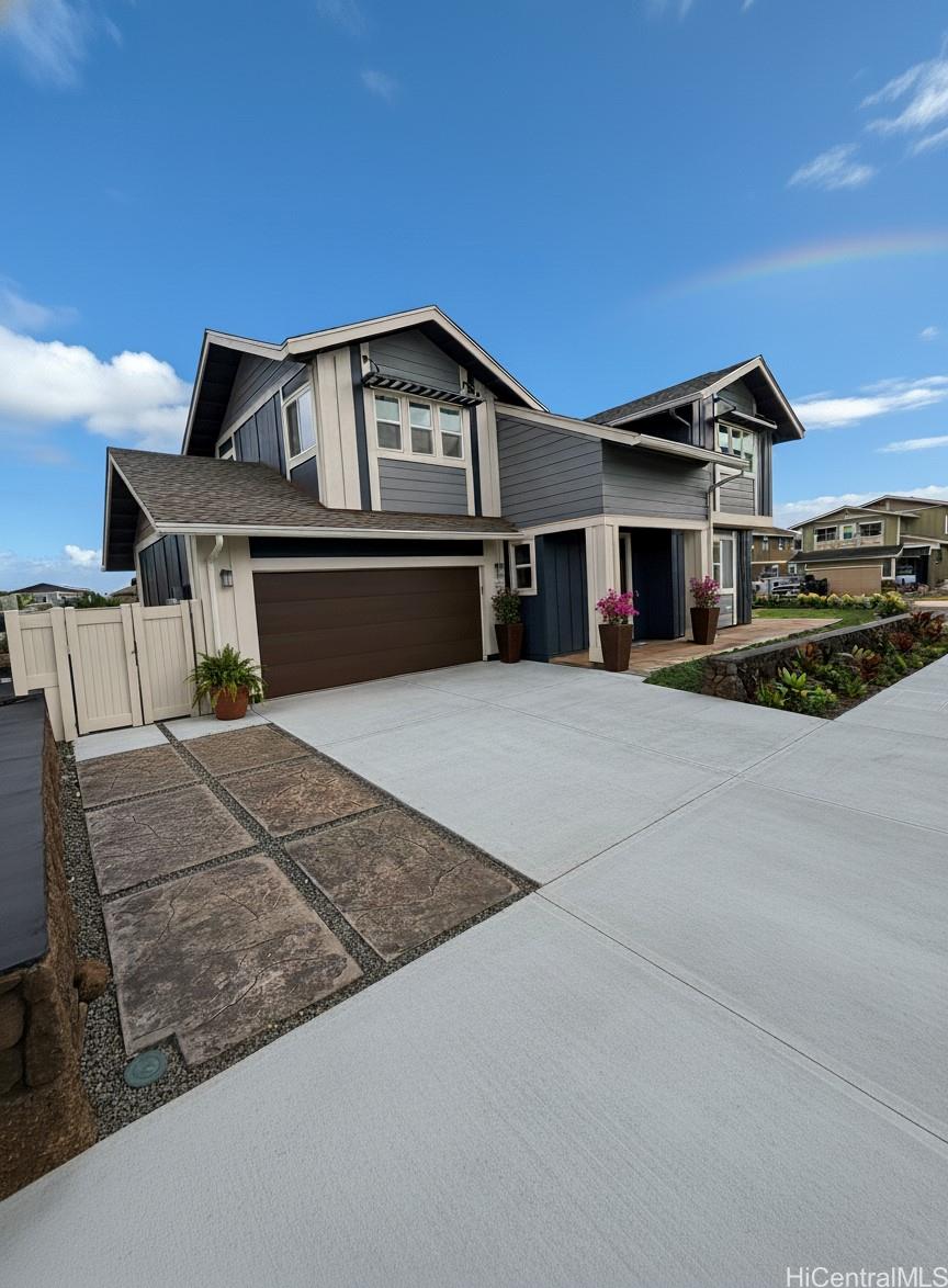 This barely lived-in home, with ALL the upgrades & landscaping, is located in one of Central Oahu’s most sought-after communities, Nanea II. It offers 3 bedrooms, 2.5 baths, plus a spacious den/loft that can be converted into a 4th bedroom. Positioned on a desirable corner lot, the home enjoys added privacy, light, and curb appeal. With nearly $100,000 in upgrades, this home is priced competitively with new construction offerings that include no upgrades or landscaping, making it a rare opportunity for the discerning buyer seeking immediate value. Luxury vinyl plank flooring flows seamlessly throughout the home, complemented by quartz countertops, plantation shutters throughout, added custom cabinetry in the entryway, and a new split A/C in the garage. An extra-large upstairs storage room adds even more flexibility for organization, hobbies, or seasonal items.The open layout transitions effortlessly to the outdoors, where a covered extended lanai, custom tropical landscaping, and lava rock retaining wall create a low-maintenance yet lush setting perfect for entertaining or unwinding. Full rain gutters and professionally designed landscaping complete the exterior upgrades.