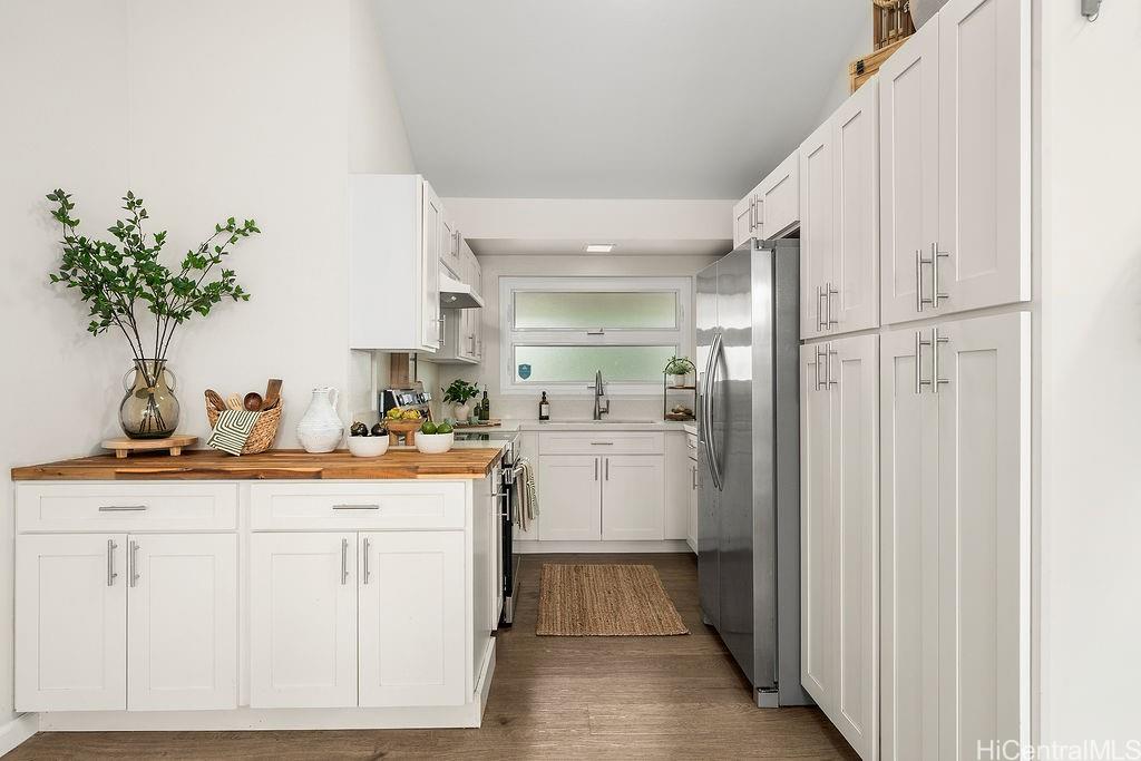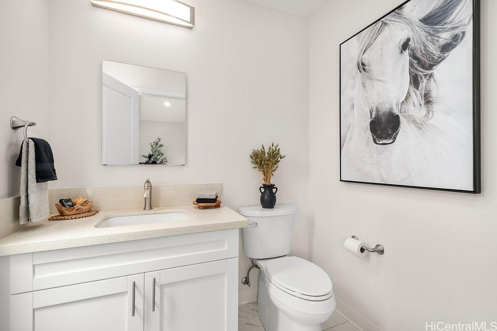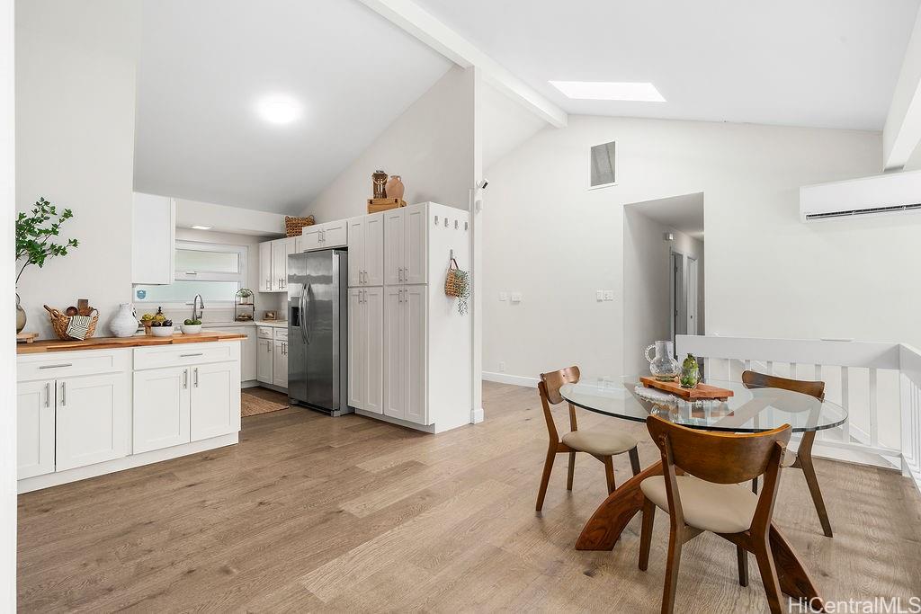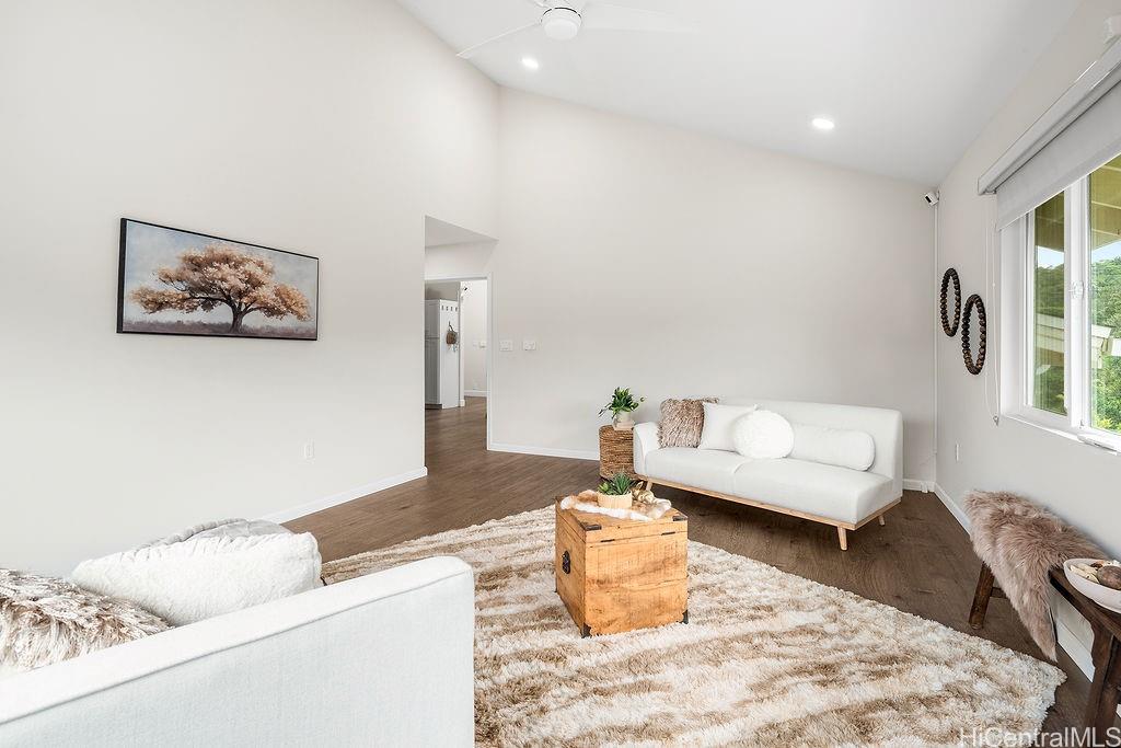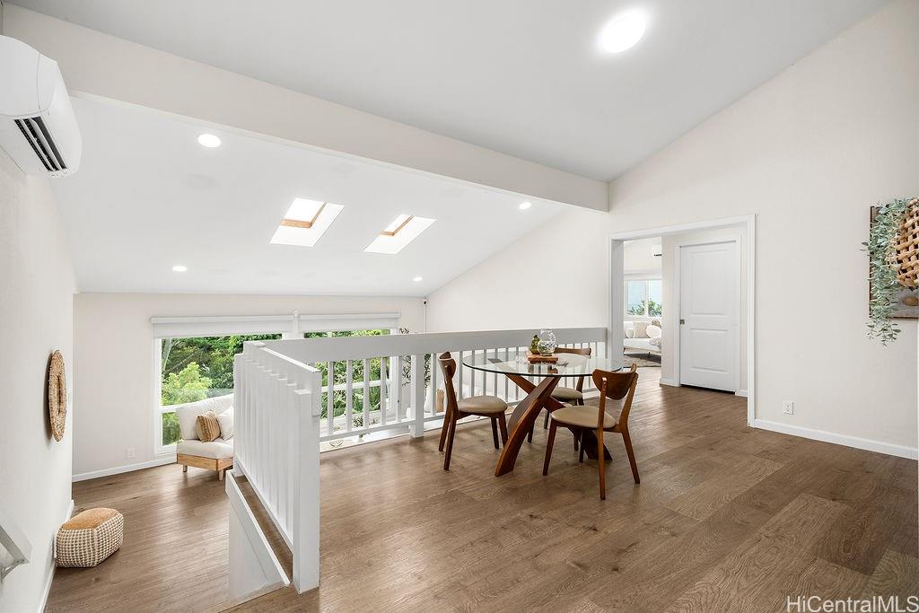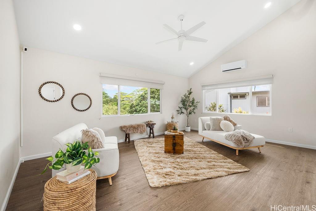 緑豊かな自然に囲まれた、静かでプライベートな隠れ家、ニュータウン・エステーツへようこそ!改装済みの3ベッドルーム、2. 広々とした高台に建つ5つのバスルームを備えたこの住宅は、2つの広々としたリビングエリアを備え、吹き抜けの天井、天窓、そして自然光をたっぷりと取り込む大きなピクチャーウィンドウが特徴です。 また、各部屋に個別空調が完備されており、テスラのバッテリーを備えた自家用太陽光発電システムも設置されています。さらに、屋根裏スペースや家の地下にも収納スペースが設けられており、専用の収納室も備わっています。 2つの寝室、フルバスルーム、キッチン、リビングルーム、ランドリーを備えたメインの居住スペースは、アクセスしやすいように通り側/カーポートと同じ階に位置しています。 パールリッジ・センター、病院、レストラン、軍事基地の近くにあり、アクセスが便利です。 島の丘陵地帯での穏やかな暮らしを体験できるこの機会をお見逃しなく!