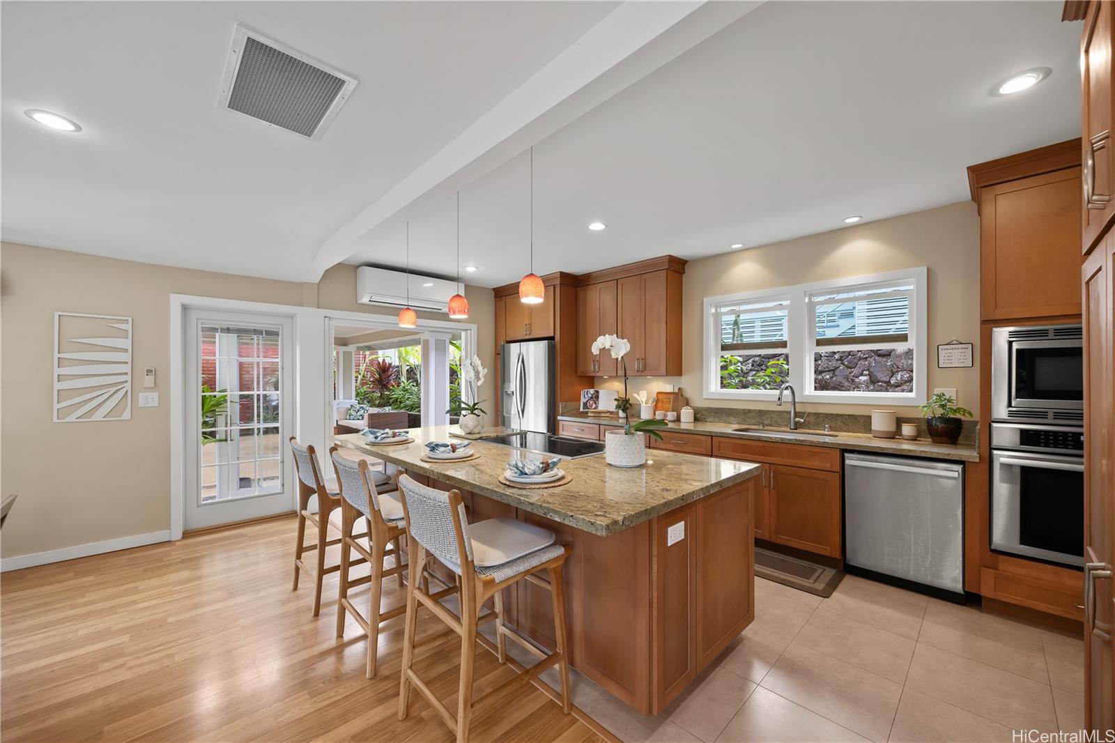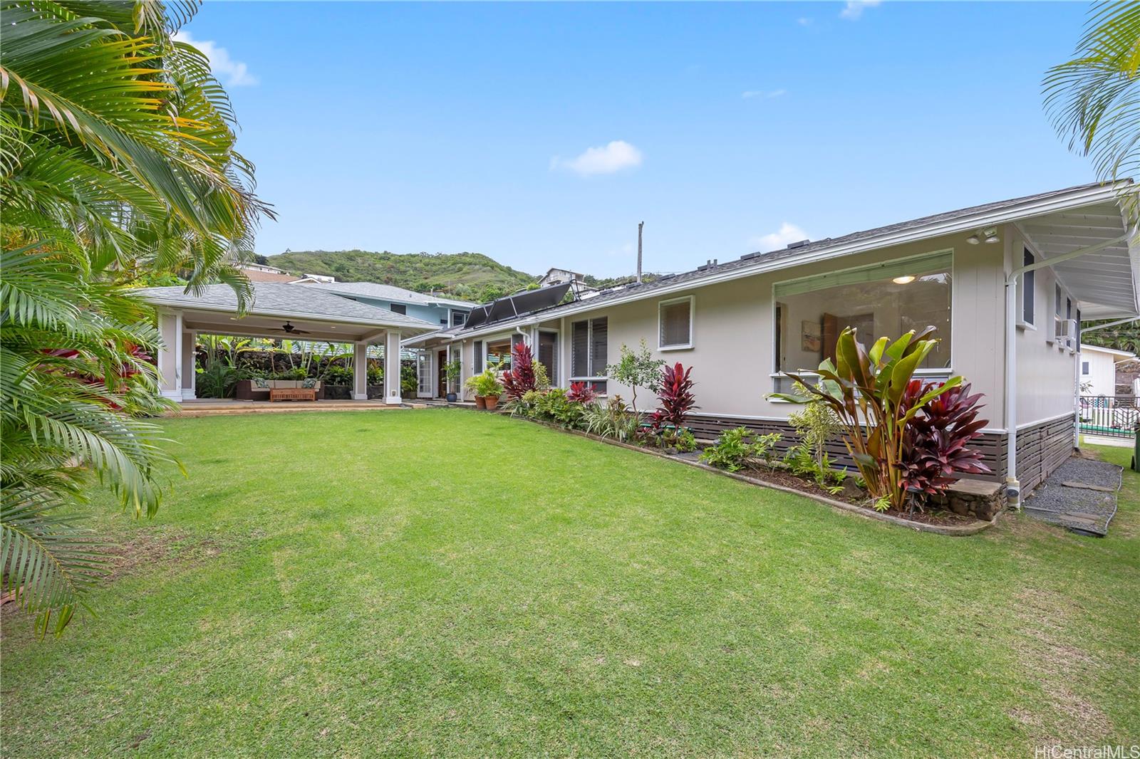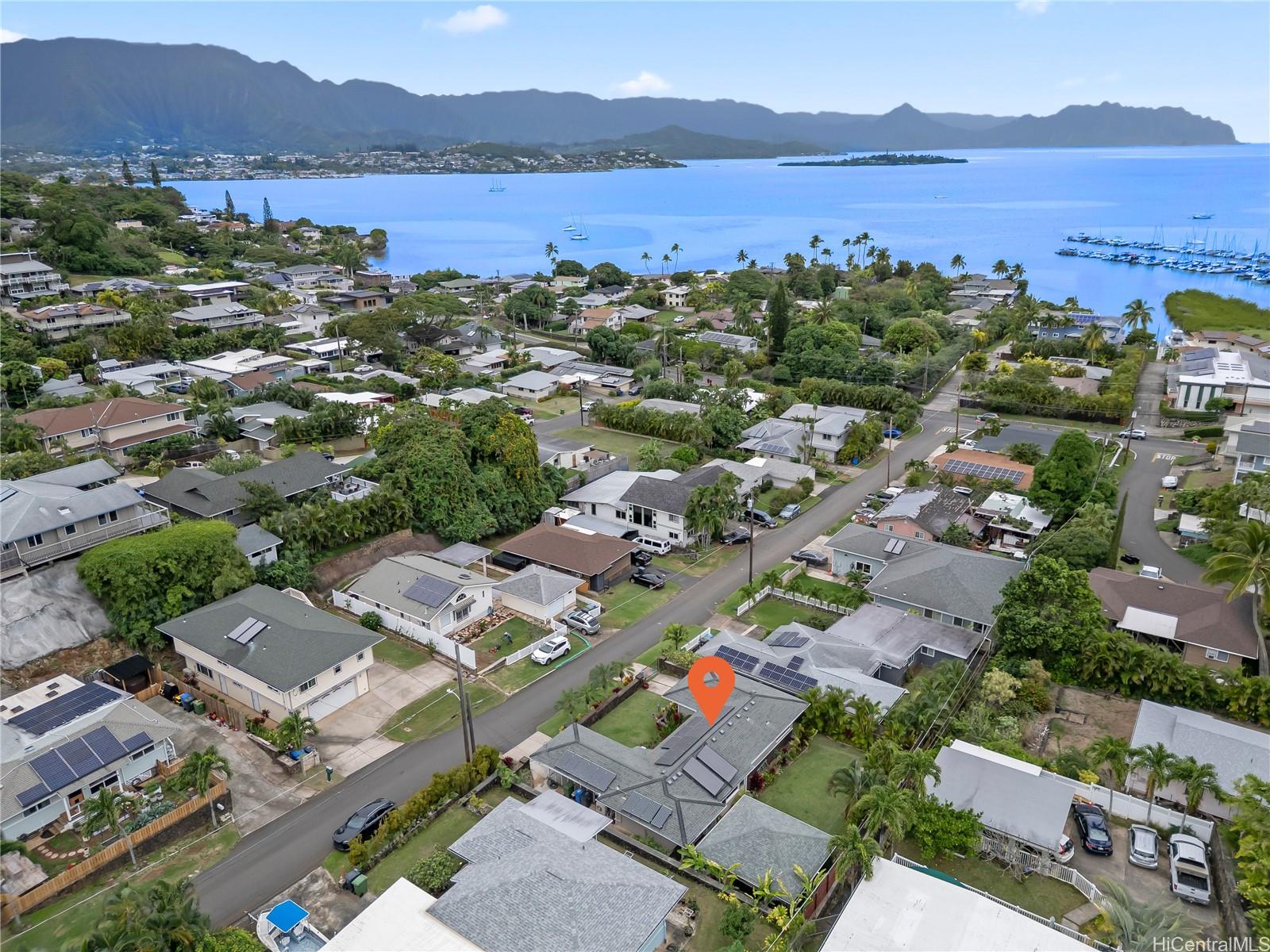 Situated near the peaceful waters of Kaneohe Bay, this beautifully upgraded home offers a blend of island living and modern efficiency. Ideally located near Aikahi Shopping Center and the Kaneohe Yacht Club, it provides convenient access to shopping, dining, and recreation. Thoughtfully enhanced with a 21-panel owned PV system connected to HECO’s net metering program and a solar water heating system, the home offers energy-efficient features. Lush landscaping surrounds a spacious covered lanai, creating an inviting space for outdoor enjoyment. Enjoy nearby Castles Beach or explore the dining and shopping options in Kailua Town. This property presents a wonderful opportunity to experience the Kaneohe Bay lifestyle.
