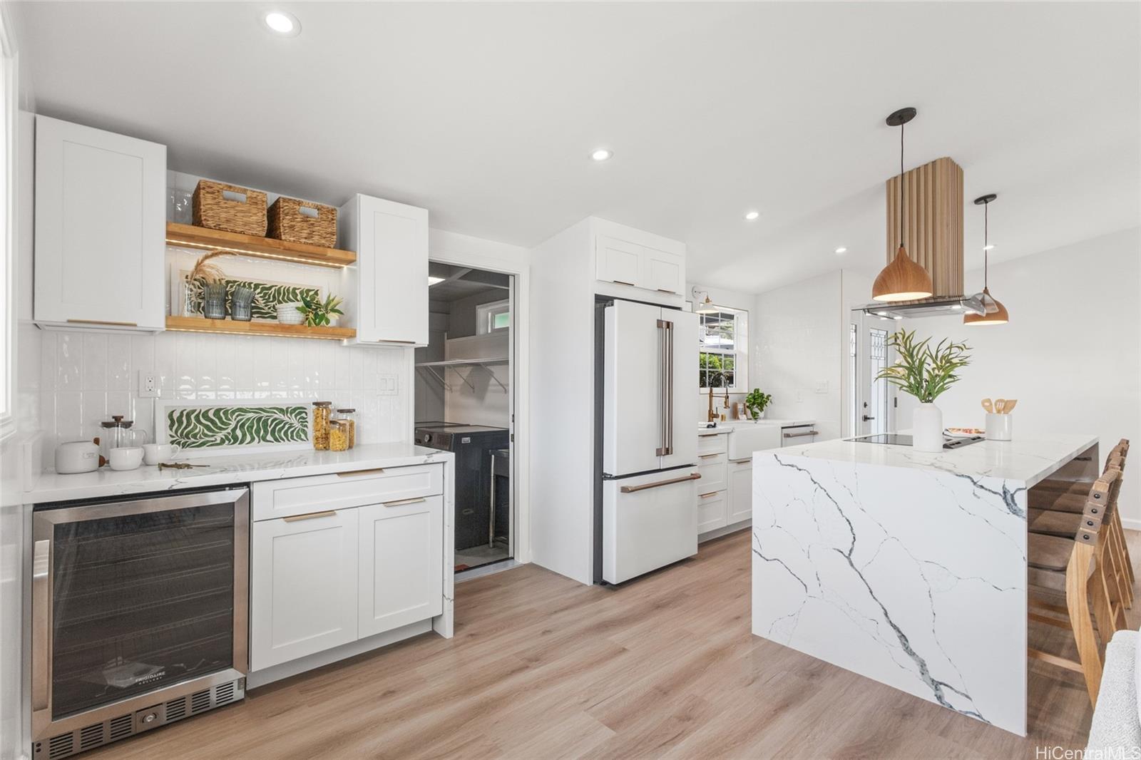 Beautifully fully renovated 3-bedroom, 2-bath home in the highly desirable Kokohead Terrace neighborhood.The open-concept layout creates a seamless flow between the living, dining, and kitchen areas. Both bathrooms have been tastefully remodeled with designer touches, creating spa-like spaces for relaxation. Spacious bedrooms offer comfort and flexibility, ideal for family, guests, or a home office. Enjoy indoor-outdoor island living with a private yard space and courtyard perfect for gatherings or quiet evenings. Conveniently located near shopping, dining, beaches, and hiking trails, this sweet home combines modern upgrades with the charm of a well established neighborhood.Don’t miss this opportunity to own a turnkey gem in Kokohead Terrace.